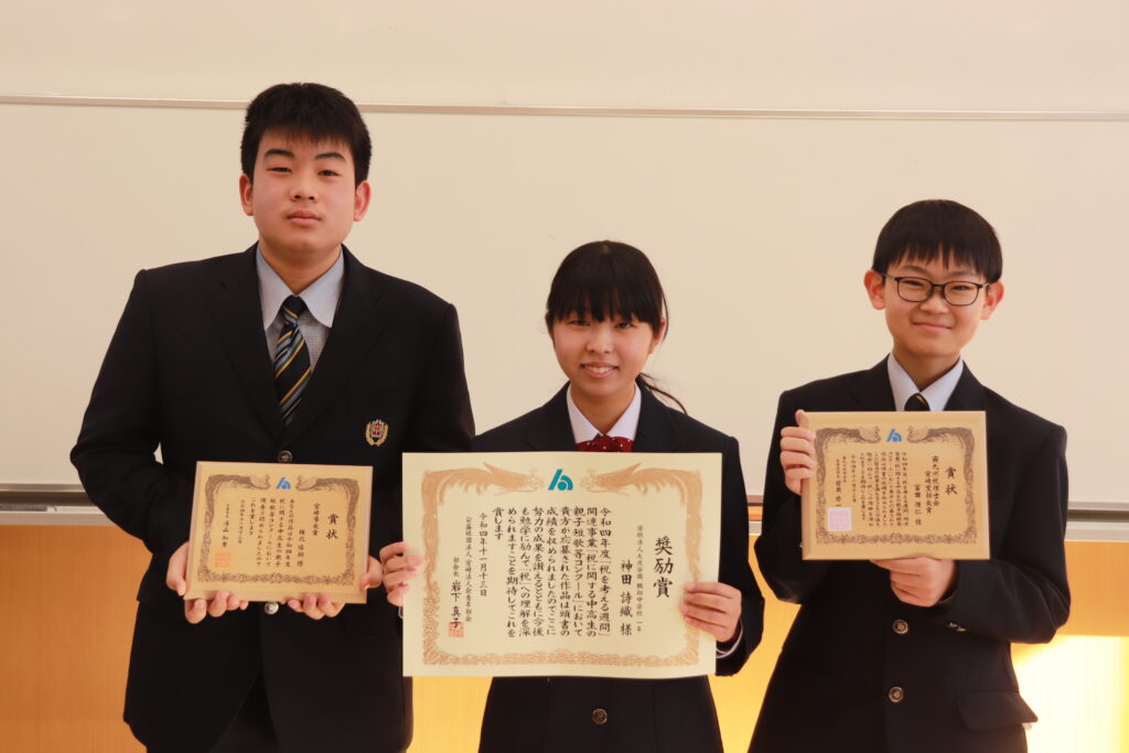 〇J2-A梅北 陽翔さん(大宮小出身) 令和4年度 税に関する中高生の親子短歌等コンクール 宮﨑市長賞