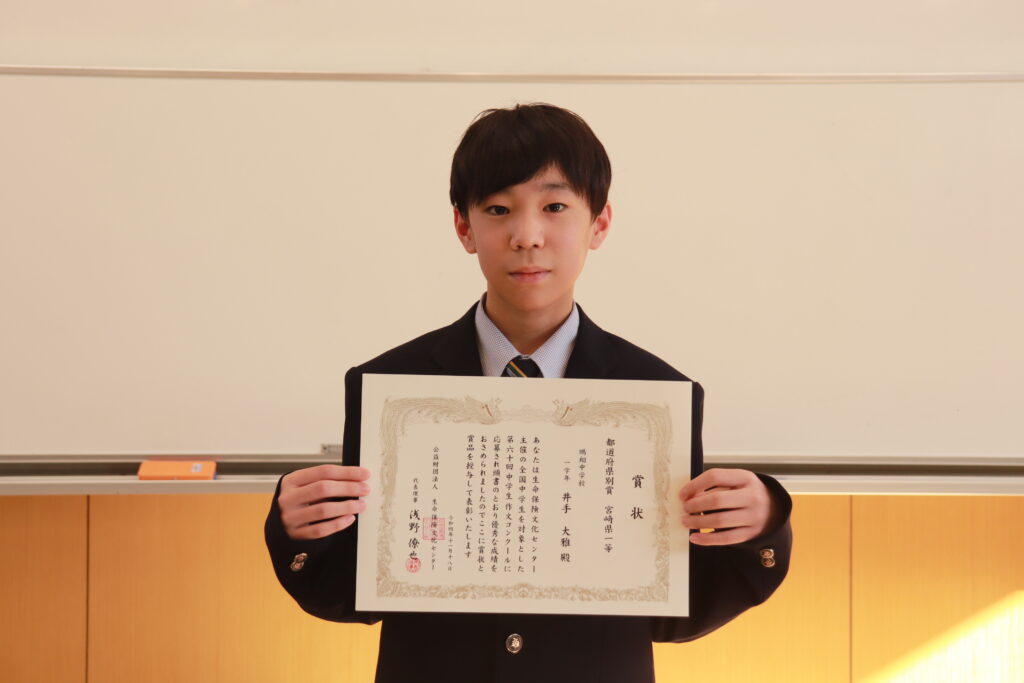 〇J1-B井出 大雅さん(学園木花台小出身) 第64回中学生作文コンクール 都道府県別賞 宮崎県一等