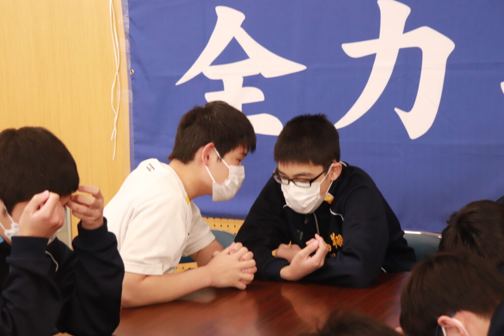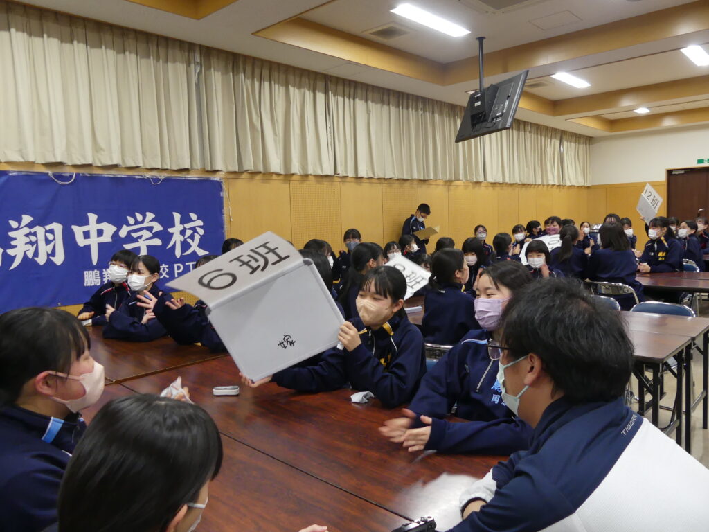 ファミリーマッチでは身体を動かして対戦をしますが、今回は伝言ゲームやクイズ大会を行いました。今回のファミリー交流会の企画・運営も生徒会役員のみなさんが行ってくれました。全校生徒が楽しめるように放課後の時間等を使って話し合いをしてくれていました。ありがとうございます!