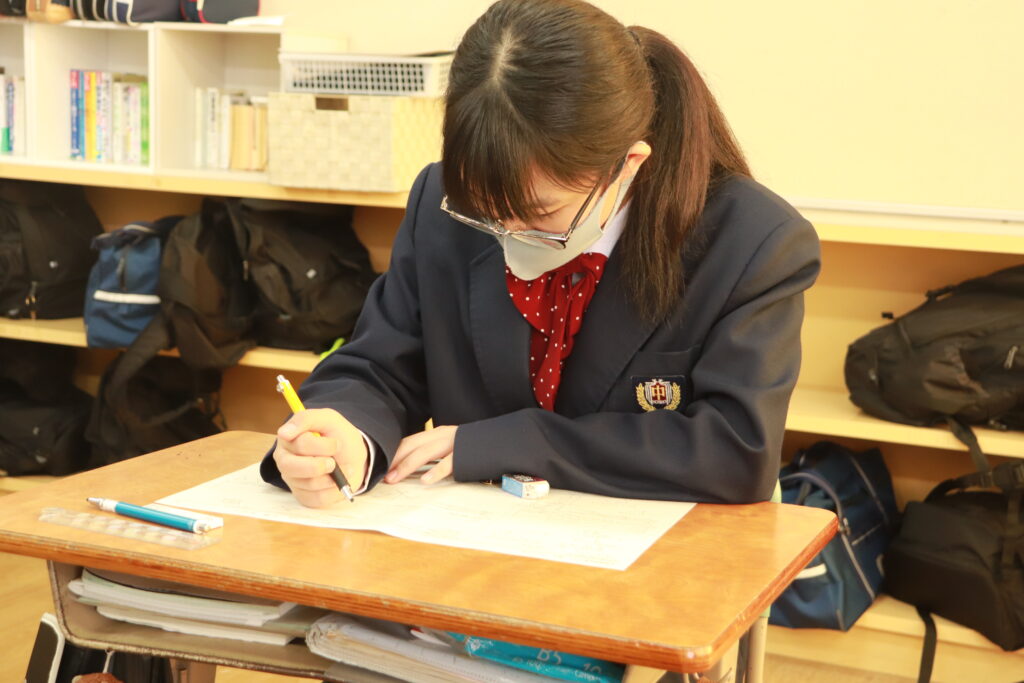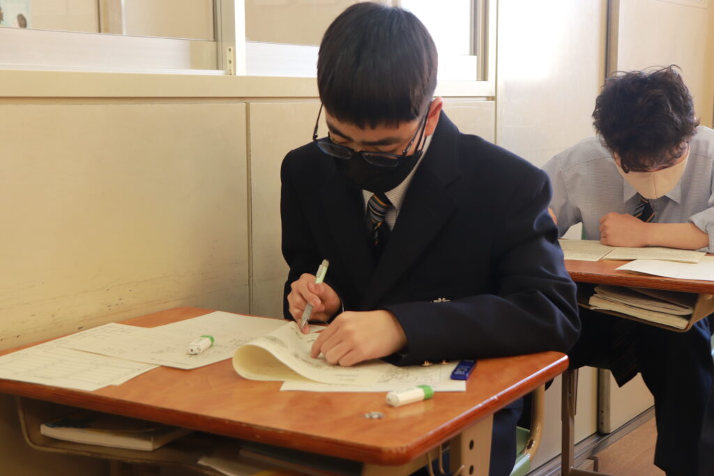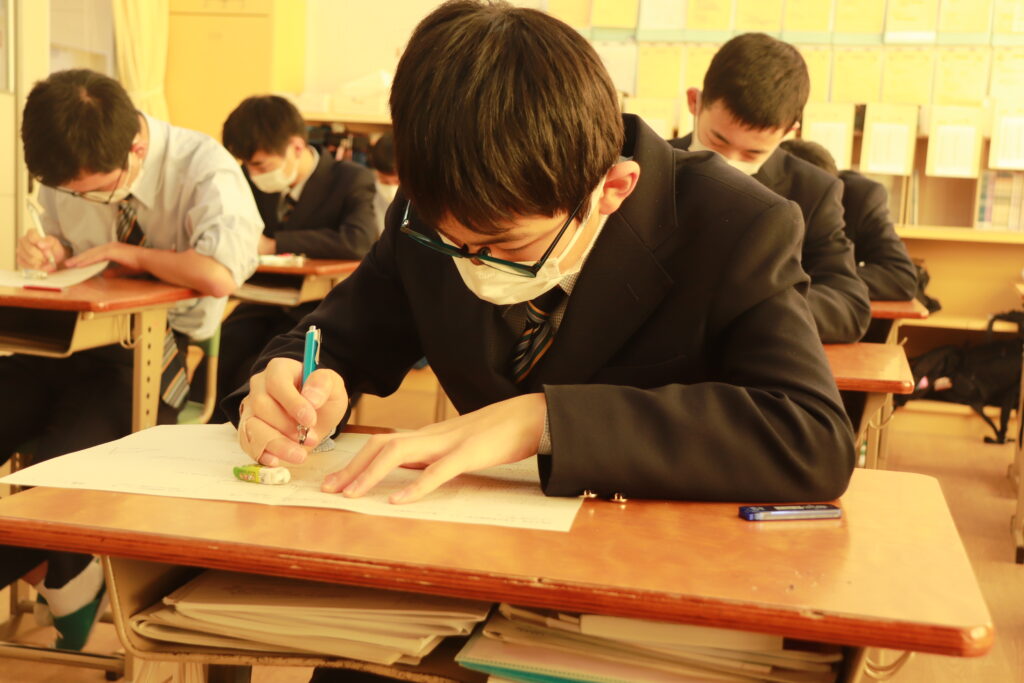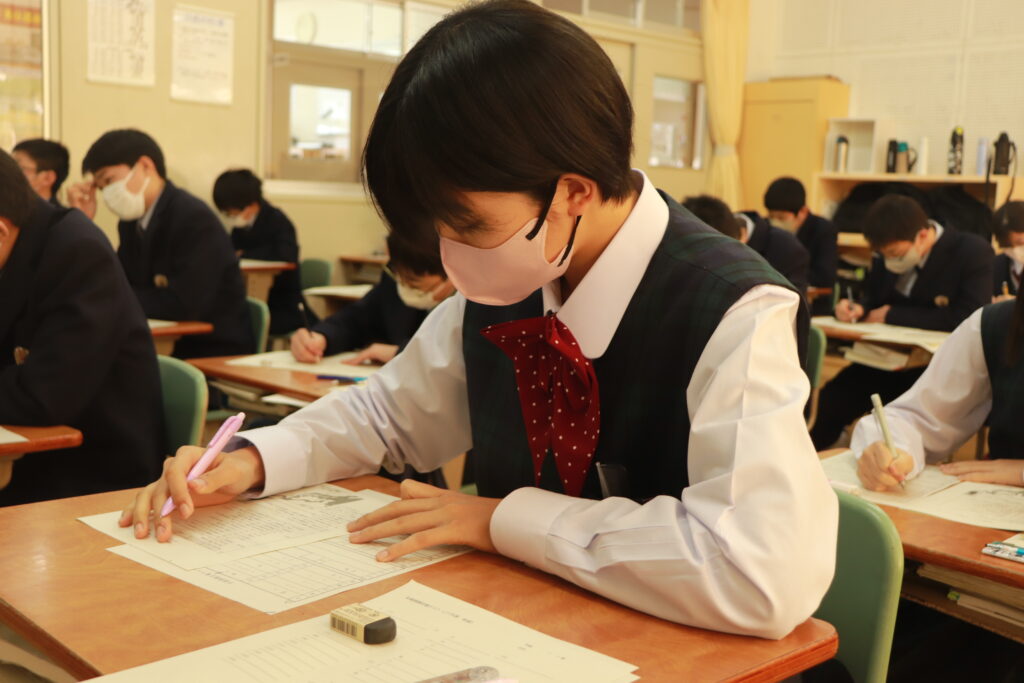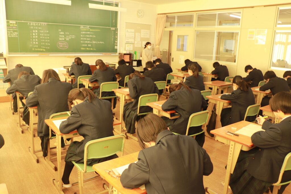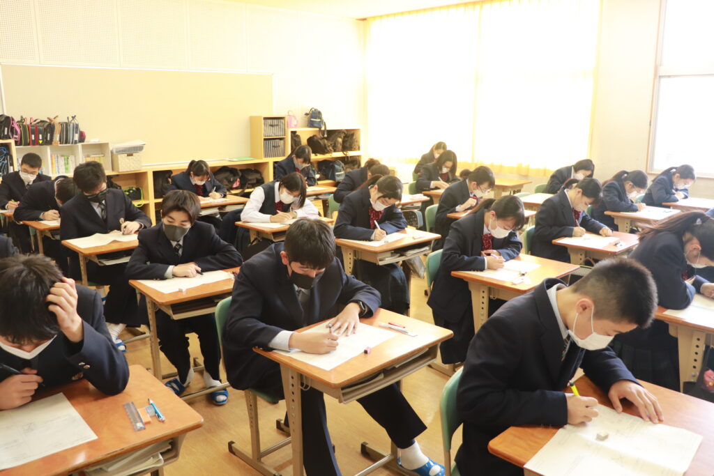 課題定着テストはJ1・J2生が5限目まで、J3生が7限目まで一気にテストを受験するため久しぶりの学校の生徒たちにとってはきつい部分もありますが、最後まで集中してテストに取り組んでいました。先日行われた始業式の中で校長先生から「3学期は次の学年に向けた準備の学期です。」とお話がありました。今回のテストの結果を踏まえて、自分に足りない部分を補い来年度に向けてしっかりと準備を行っていきましょう。