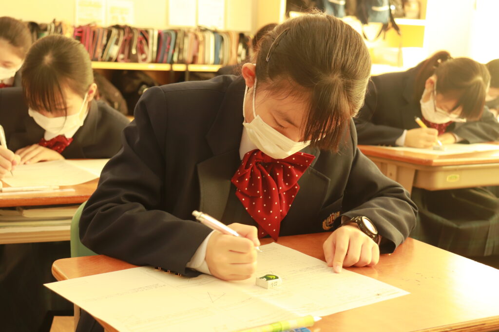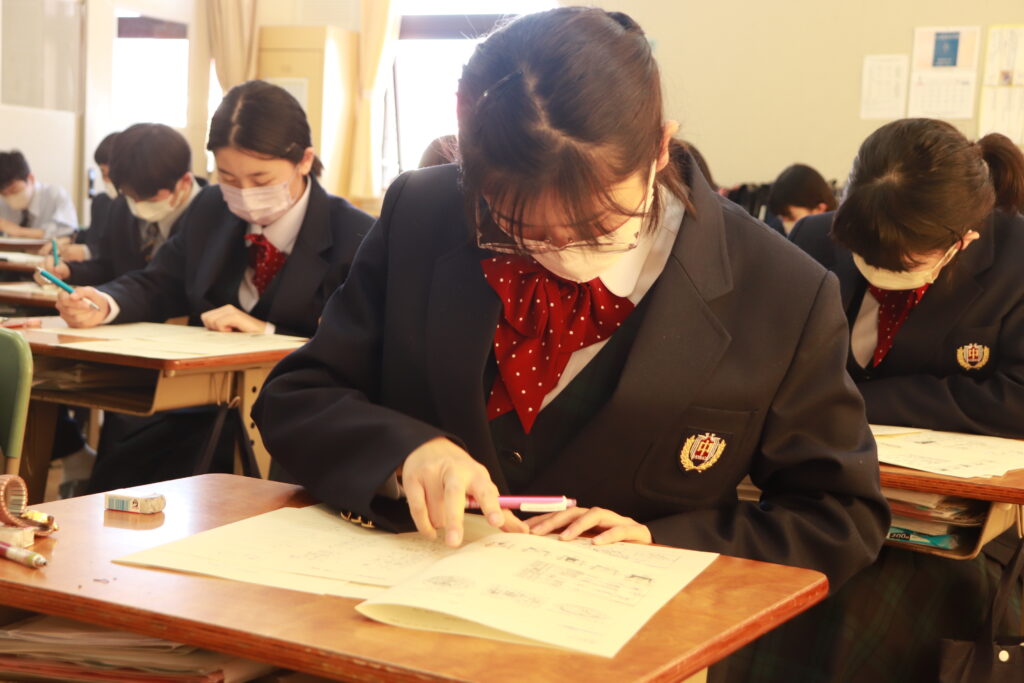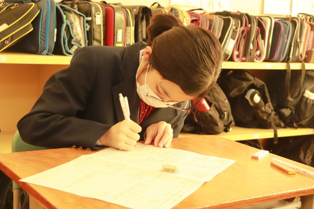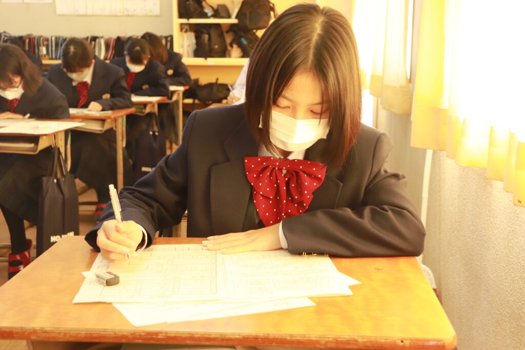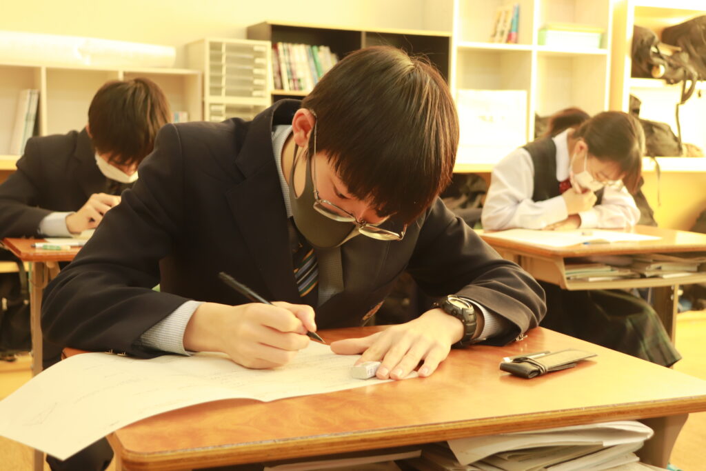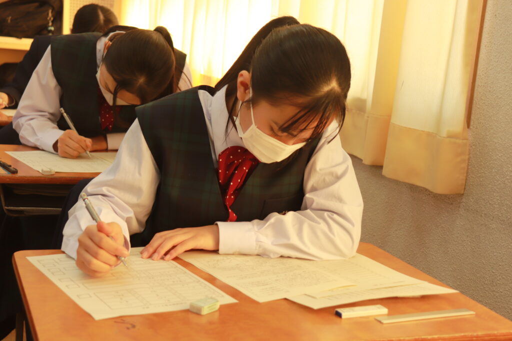 課題定着テストはJ1・J2生が5限目まで、J3生が7限目まで一気にテストを受験するため久しぶりの学校の生徒たちにとってはきつい部分もありますが、最後まで集中してテストに取り組んでいました。先日行われた始業式の中で校長先生から「3学期は次の学年に向けた準備の学期です。」とお話がありました。今回のテストの結果を踏まえて、自分に足りない部分を補い来年度に向けてしっかりと準備を行っていきましょう。