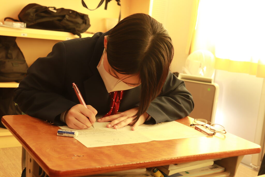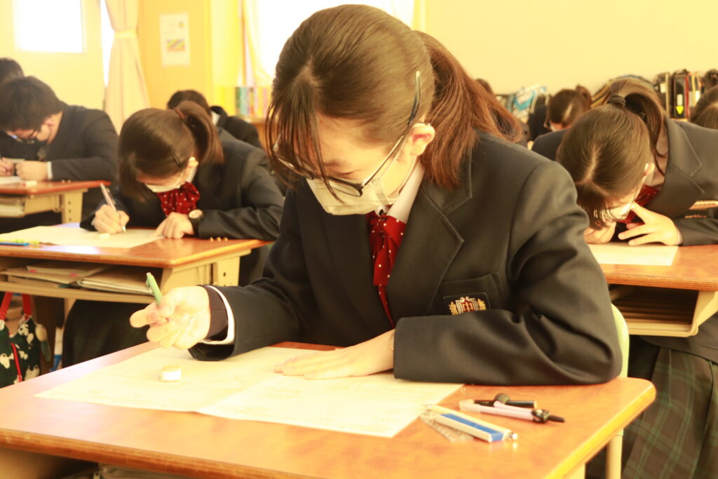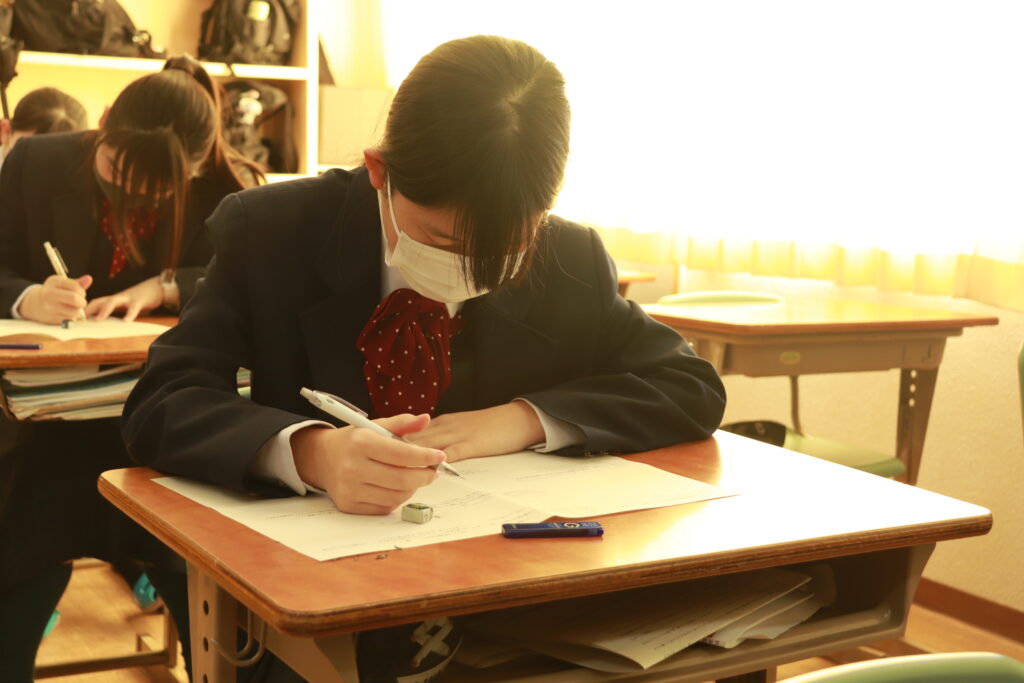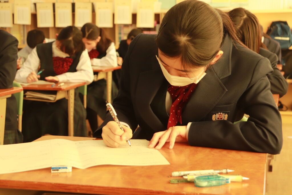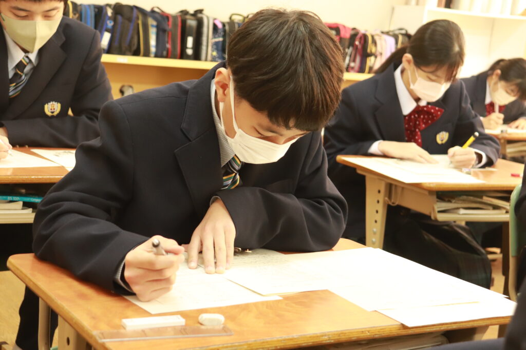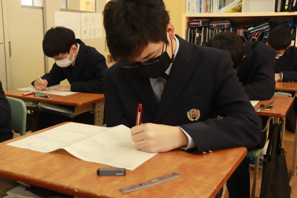 課題定着テストはJ1・J2生が5限目まで、J3生が7限目まで一気にテストを受験するため久しぶりの学校の生徒たちにとってはきつい部分もありますが、最後まで集中してテストに取り組んでいました。先日行われた始業式の中で校長先生から「3学期は次の学年に向けた準備の学期です。」とお話がありました。今回のテストの結果を踏まえて、自分に足りない部分を補い来年度に向けてしっかりと準備を行っていきましょう。