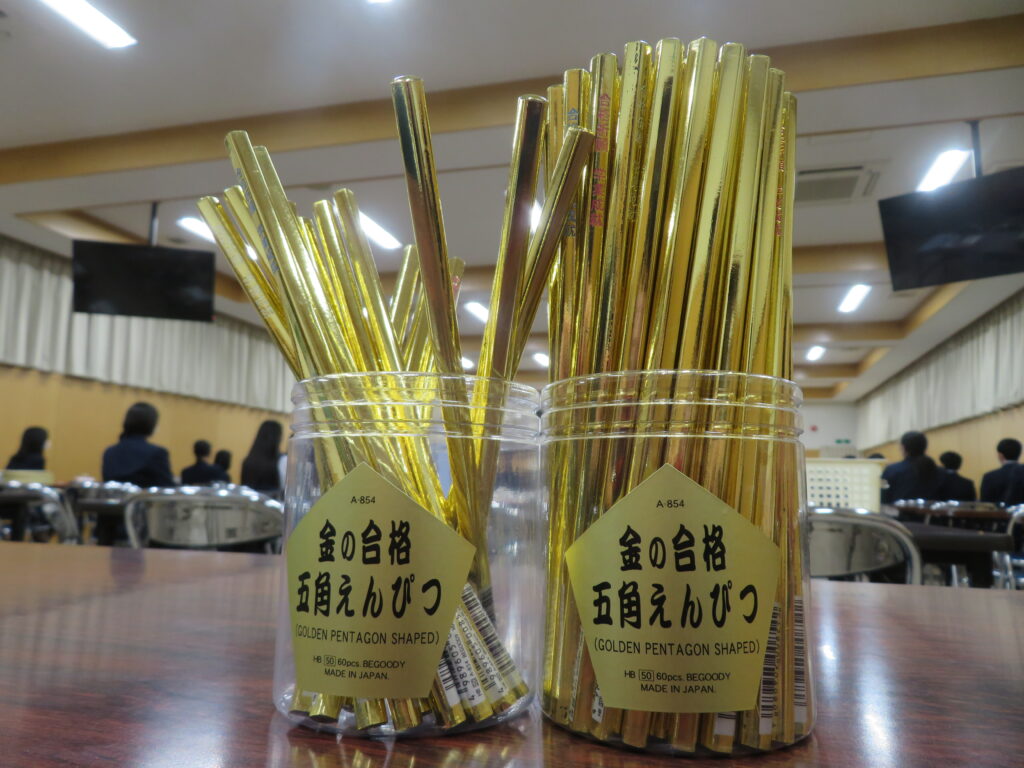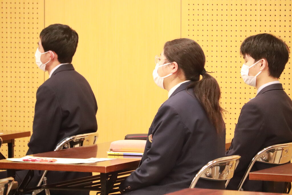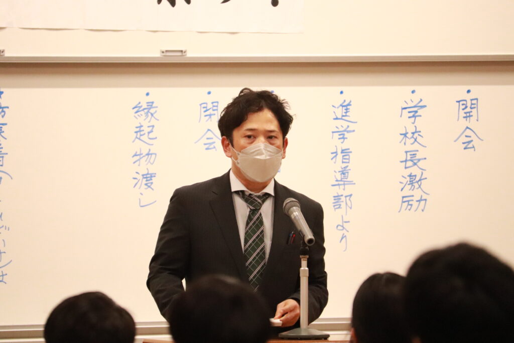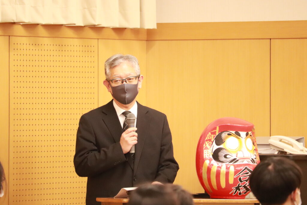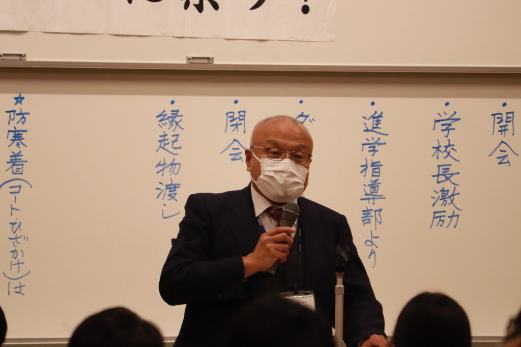 校長先生をはじめ、先生方から激励の言葉や、受験する上での注意点や心構えなどのお話がありました。生徒たちは真剣な眼差しで耳を傾けていました。