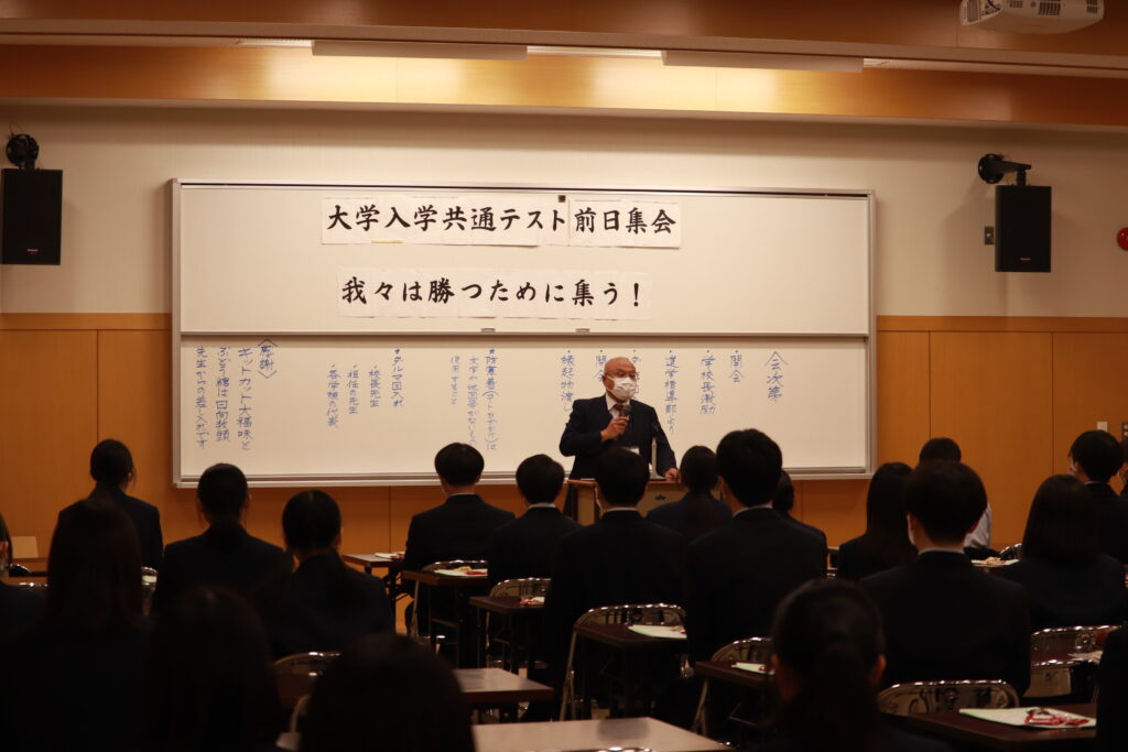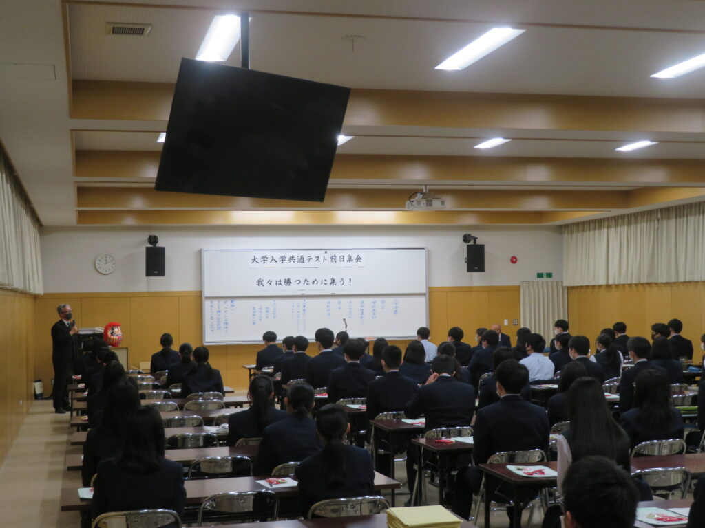 本日、大学入学共通テストを受験する高校3年生を対象に「大学入学共通テスト前日集会」が行われていました。
