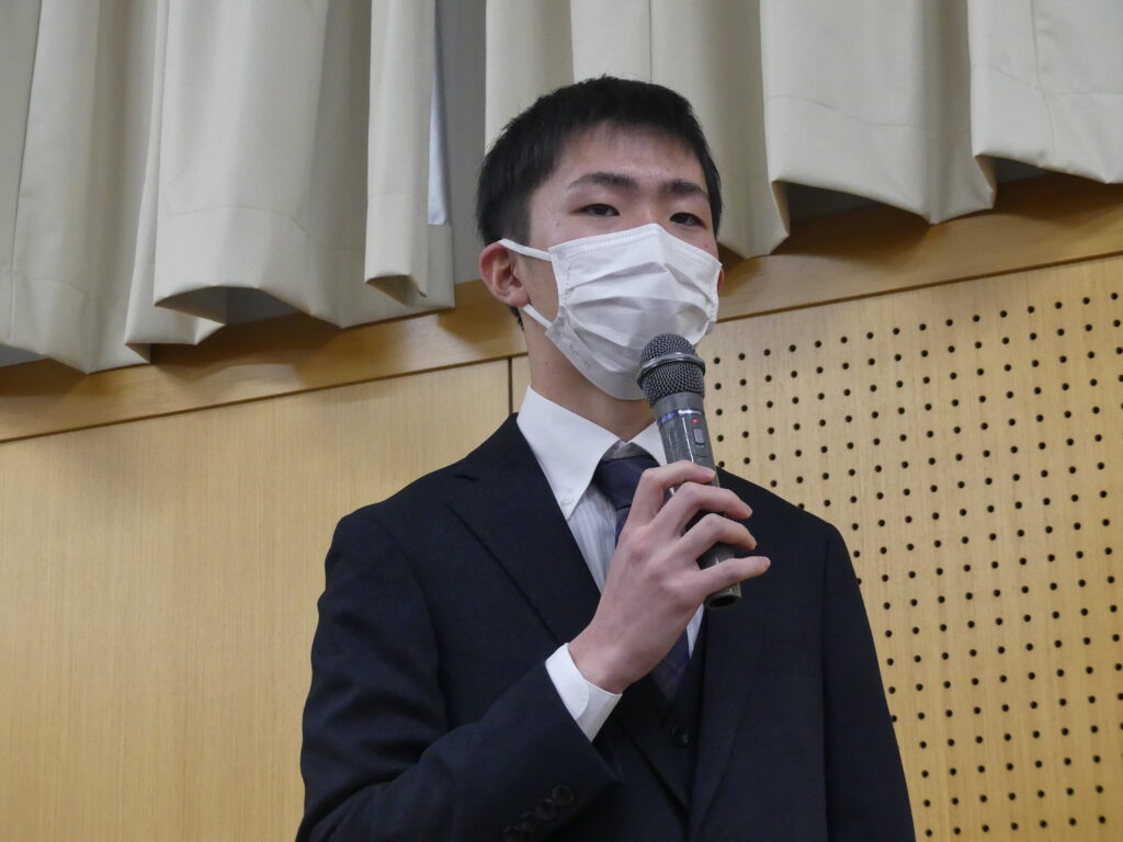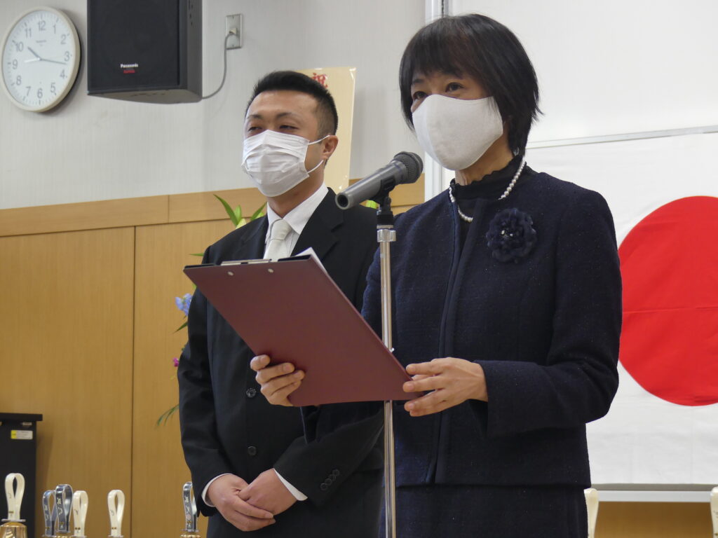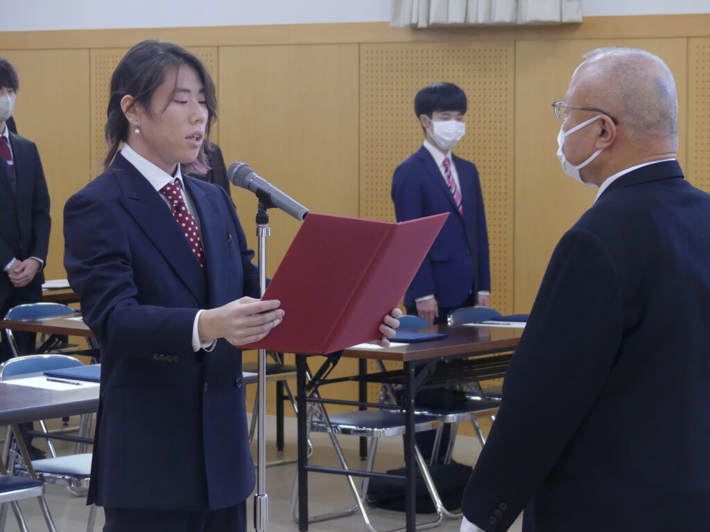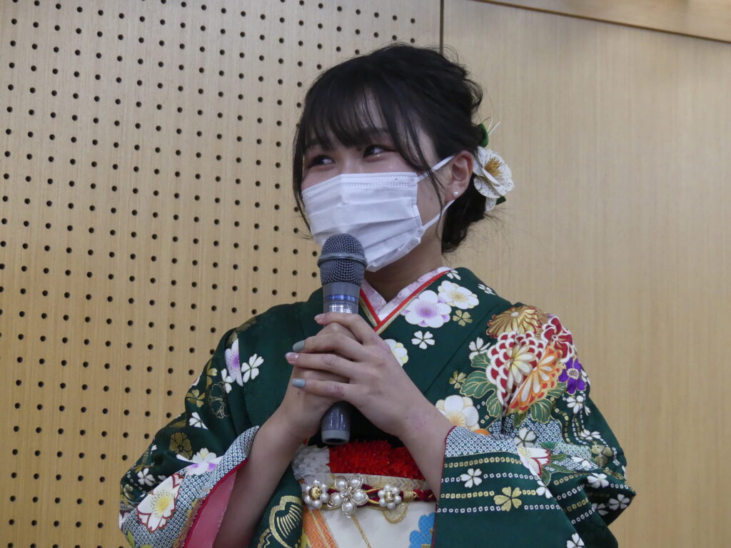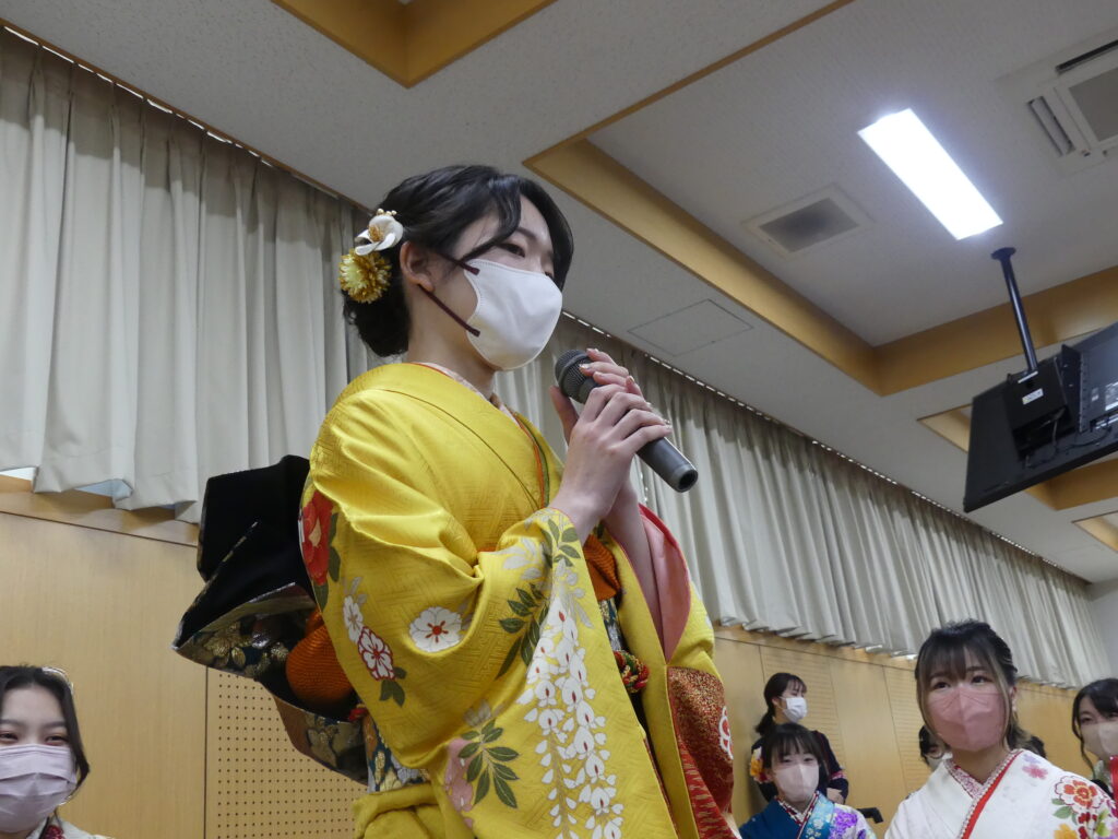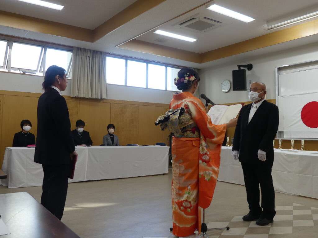 新成人を代表して市来歓多さん(西池小出身)と吉田彩乃さん(大淀小出身)が新成人誓いの言葉を述べました。