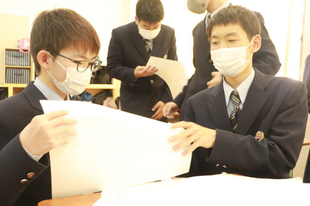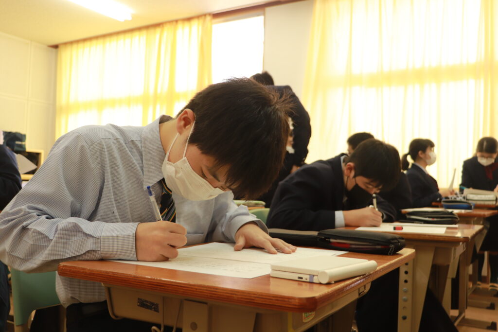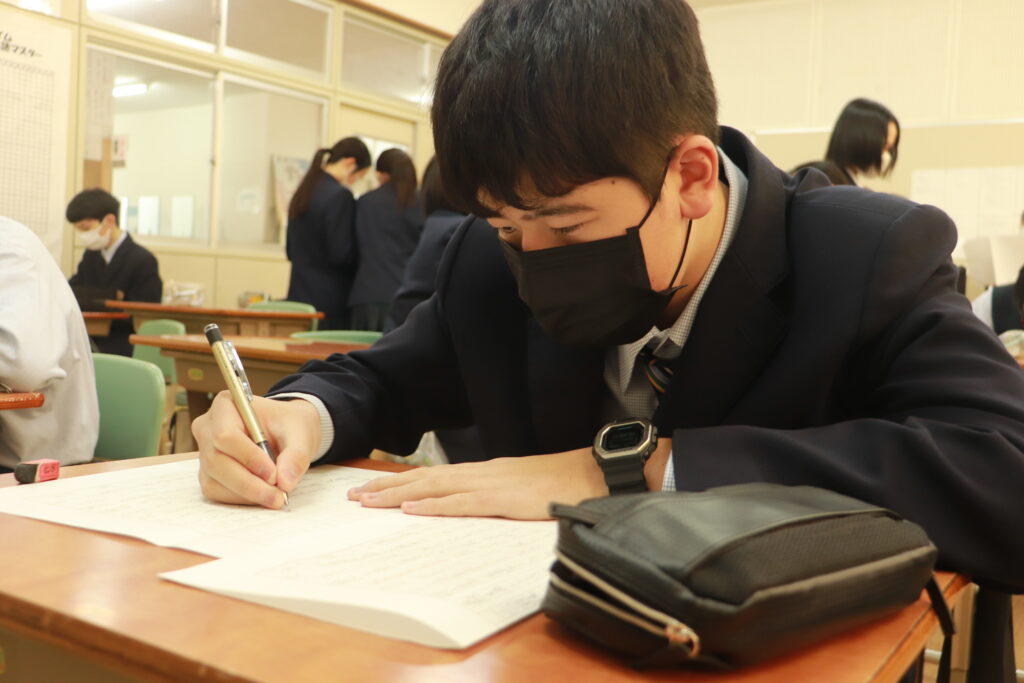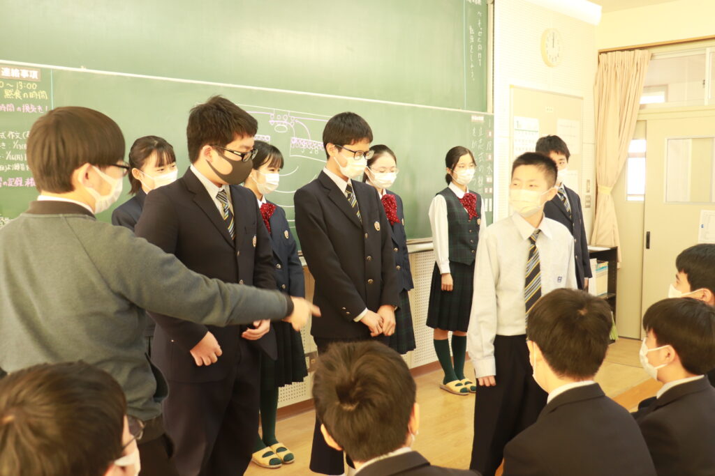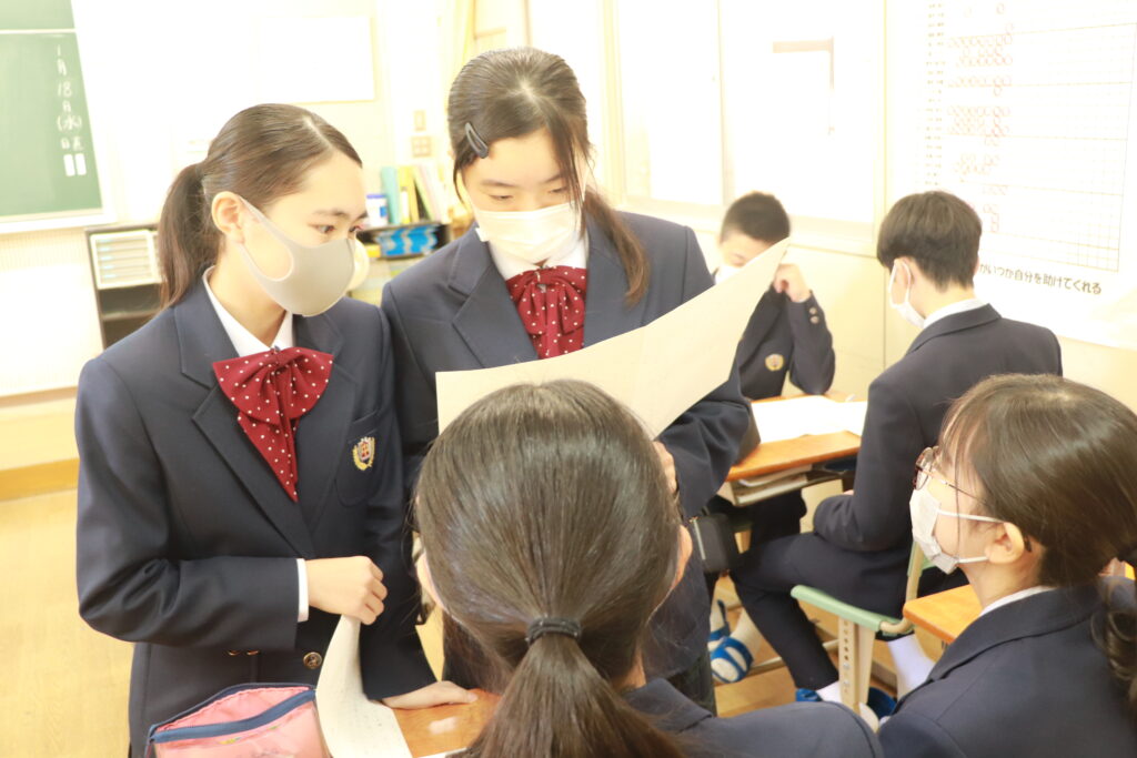 各クラスで当日の流れについて確認を行なったり、友達と意見交換をしながら発表の練習をしたりしていました。来週からは実際に会場で立ち位置の確認を行い、全体の前で読むリハーサル等も行っていきます。良い形で当日発表できるように残された時間の中で精一杯練習していきましょう。