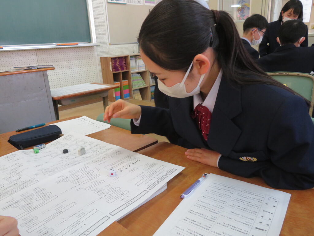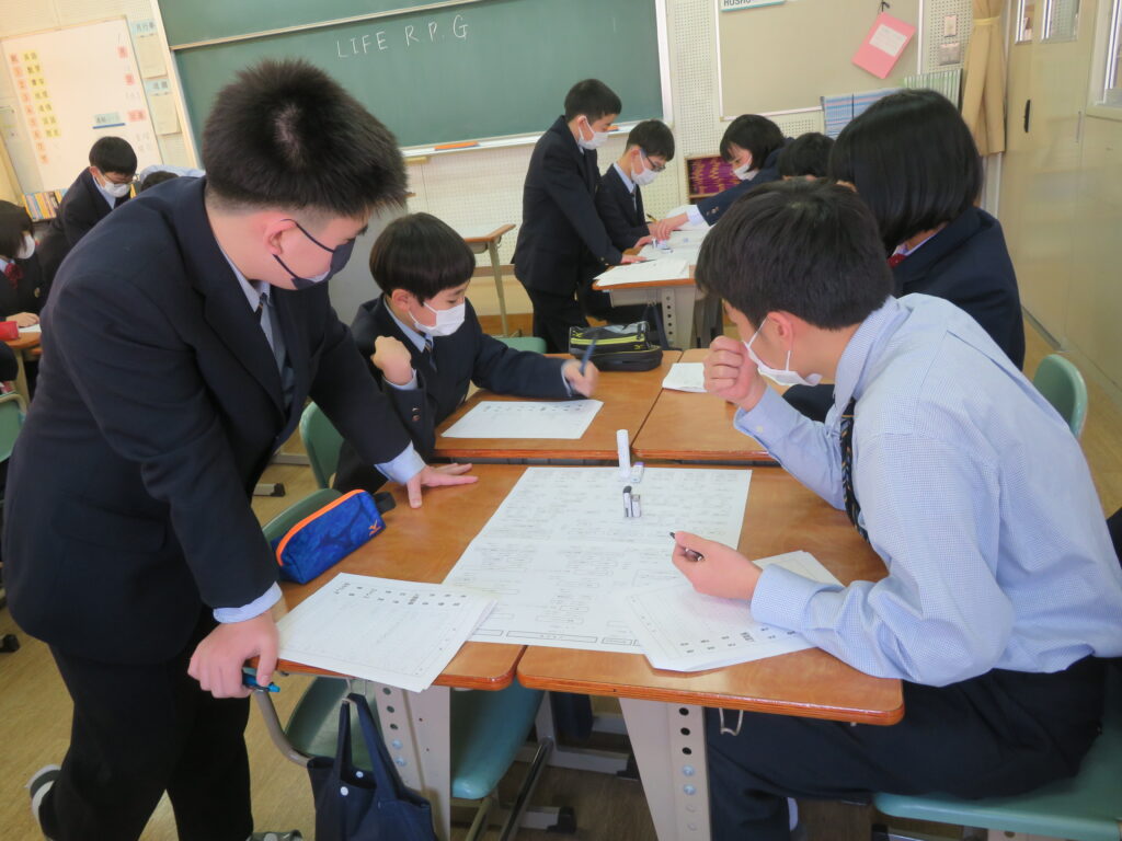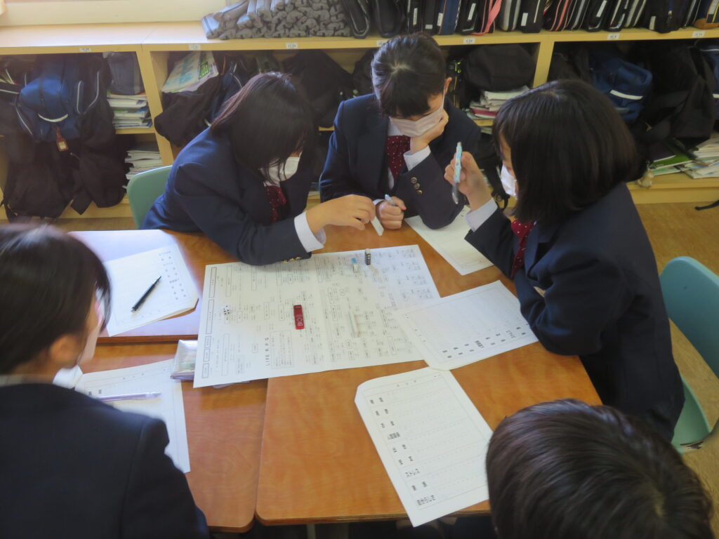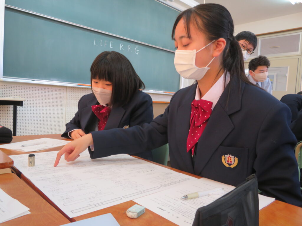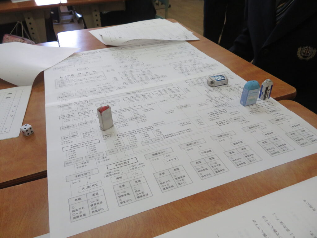 昨日の道徳の時間に、J1-AではLIFE R.P.G(人生ゲーム)を行っていました。このゲームは、人生の様々な出来事を、様々な価値観によって選択をしていくゲームです。