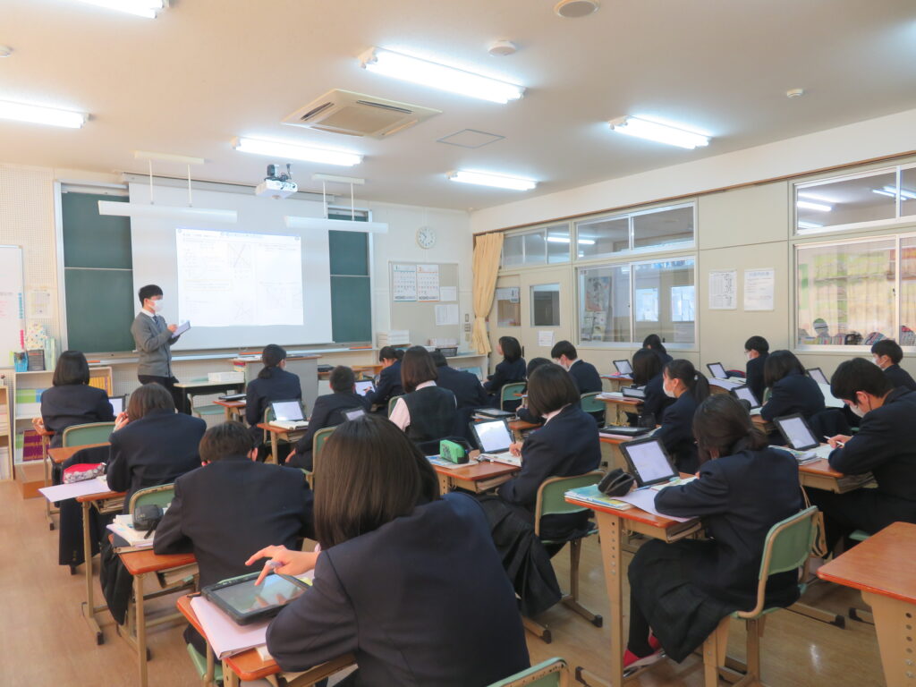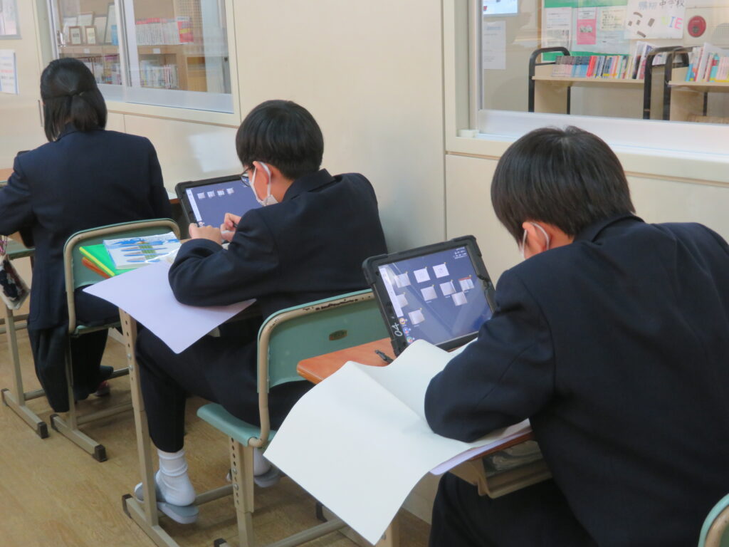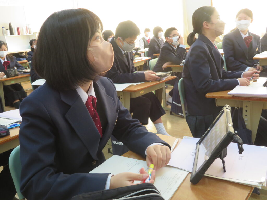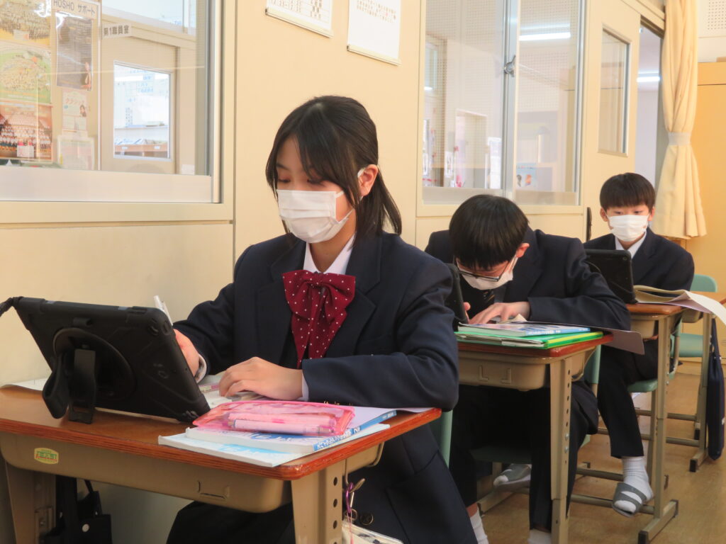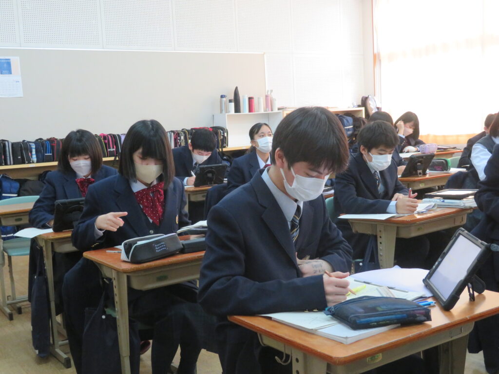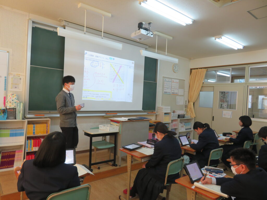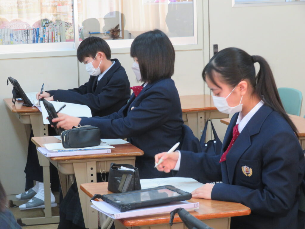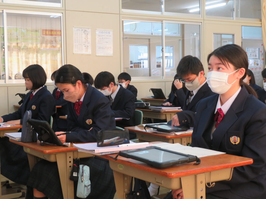 標準クラスでは、タブレットを使用していました。タブレットを使用することで、黒板に書く模範解答だけではなく、生徒たちの回答を共有し、いろんな気づきがあります。