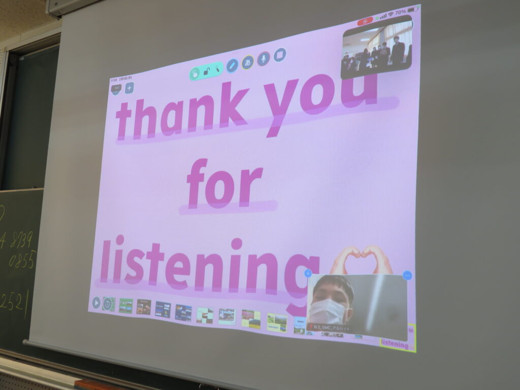 オンライン交流会に参加した2年生は、昨年(令和4年11月)に英語研修(グローバルビレッジプログラム)を行った学年でもあります。九州大学など多国籍の留学生との研修を通して培った経験が活かされたのではないでしょうか。