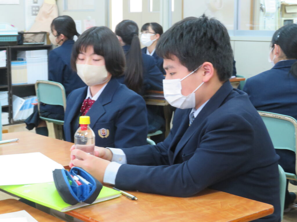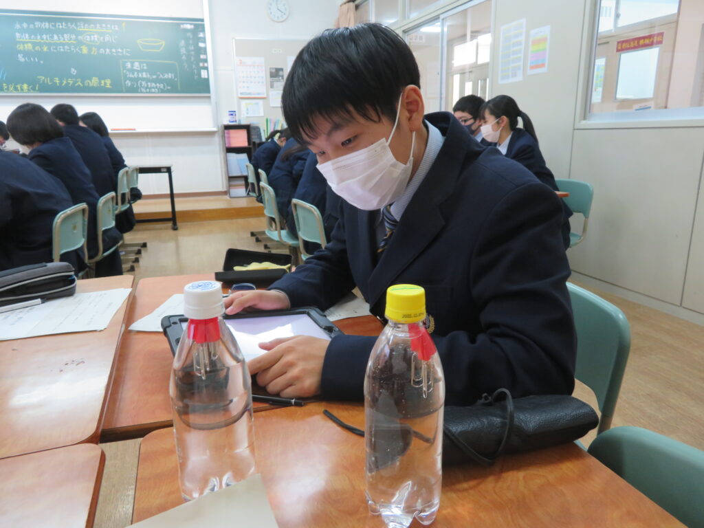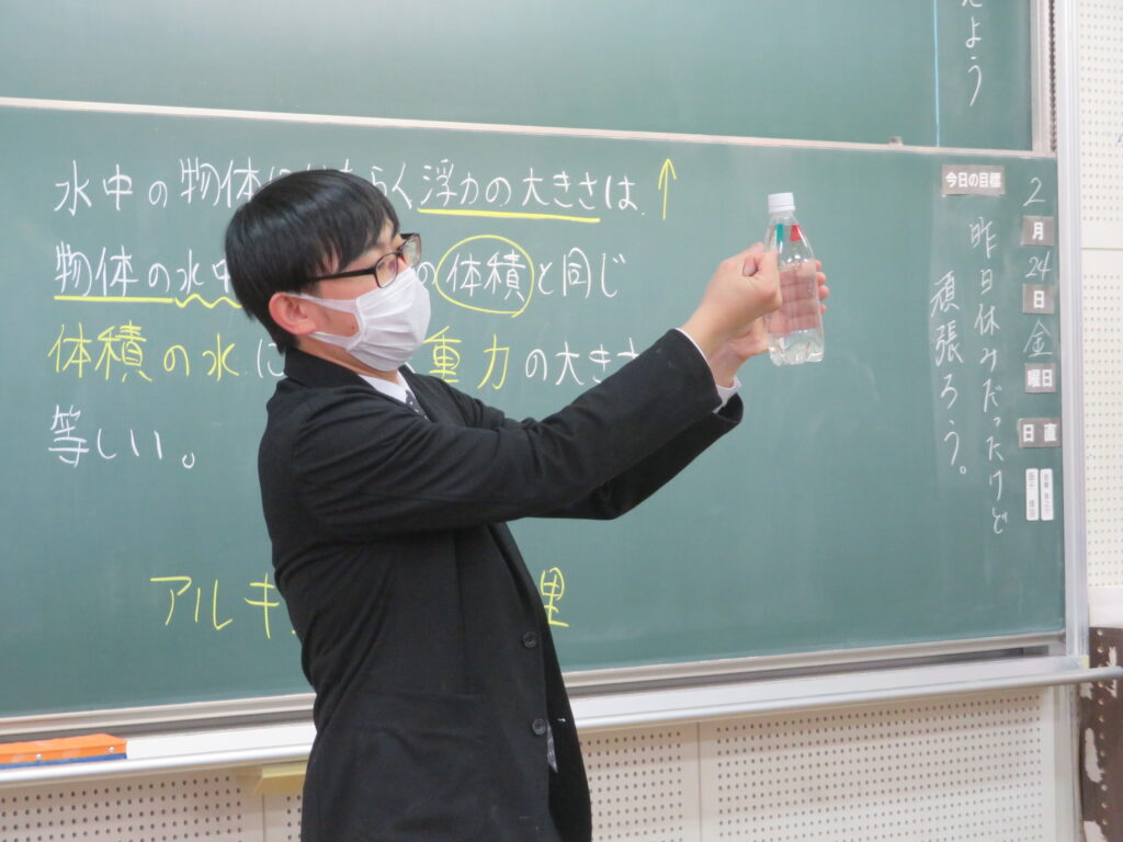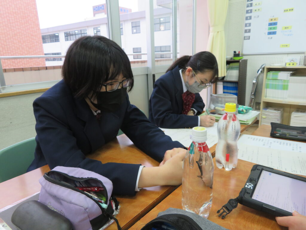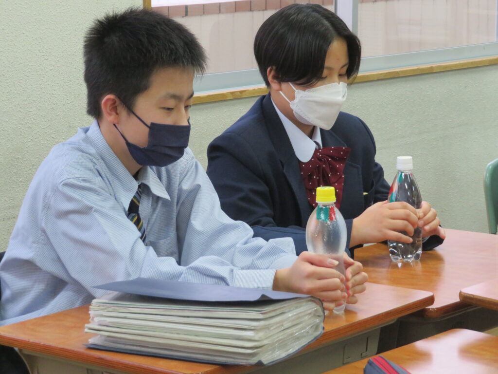 本日J2-B理科の授業で、 炭酸飲料のペットボトルを使用し、浮沈子をつくり、アルキメデスの原理について学習しました。