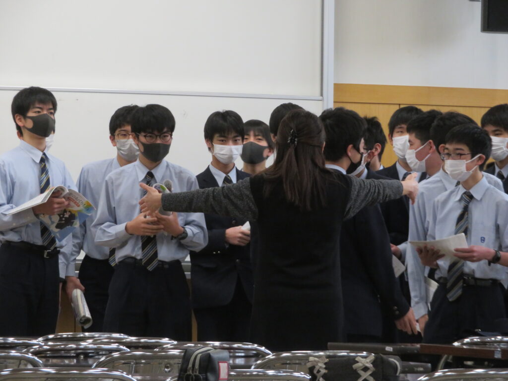 本日3・4限目、3月11日(土)に行われる修了証書授与式に向けて、歌の練習を行いました。 パートごとに分かれて友人同士で音程・リズムの確認をし、全体練習に臨みます!