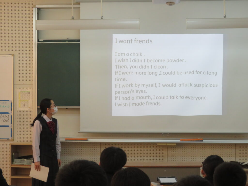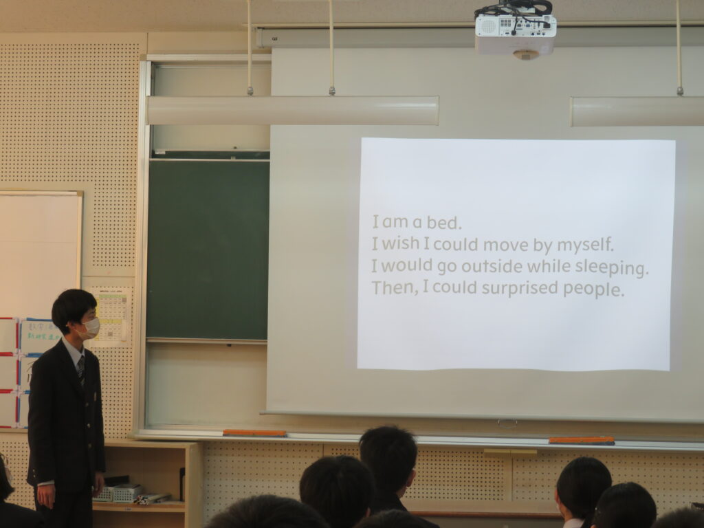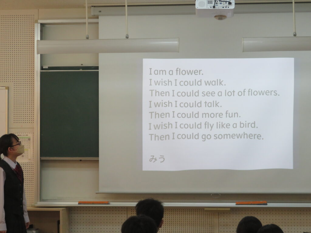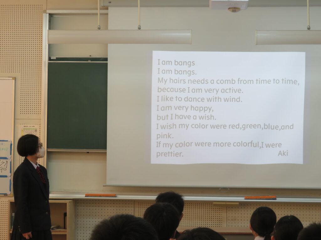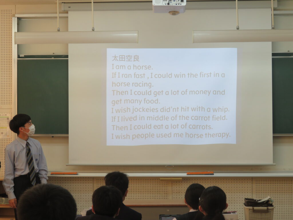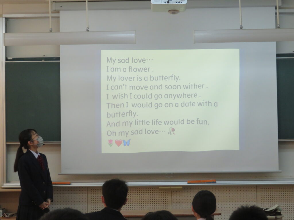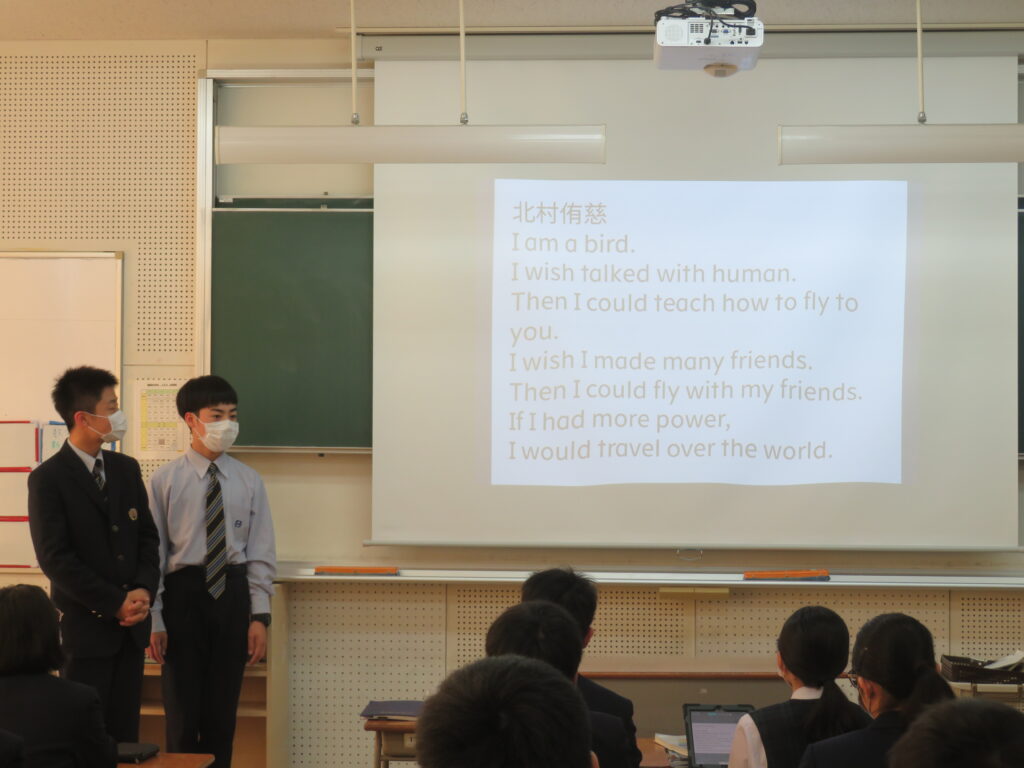 本日、J2英語発展クラスで、仮定法過去を使って英語の詩を発表しました。