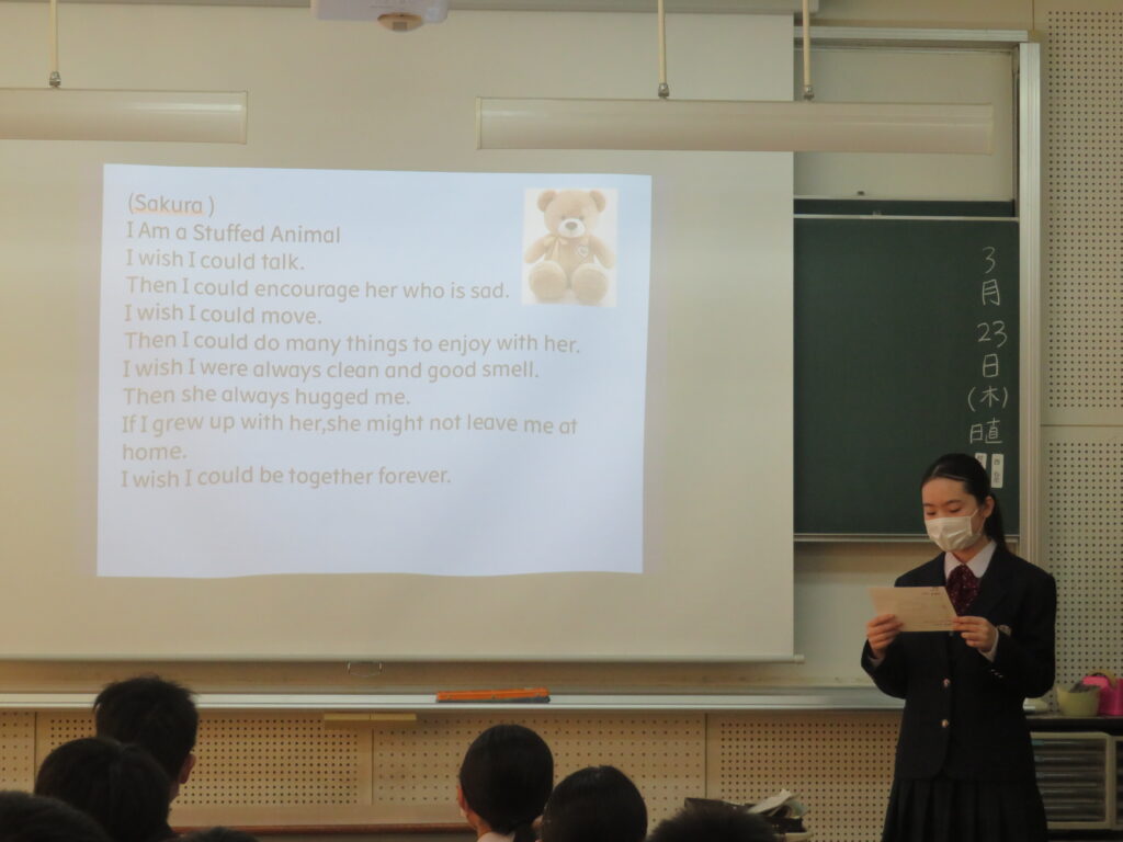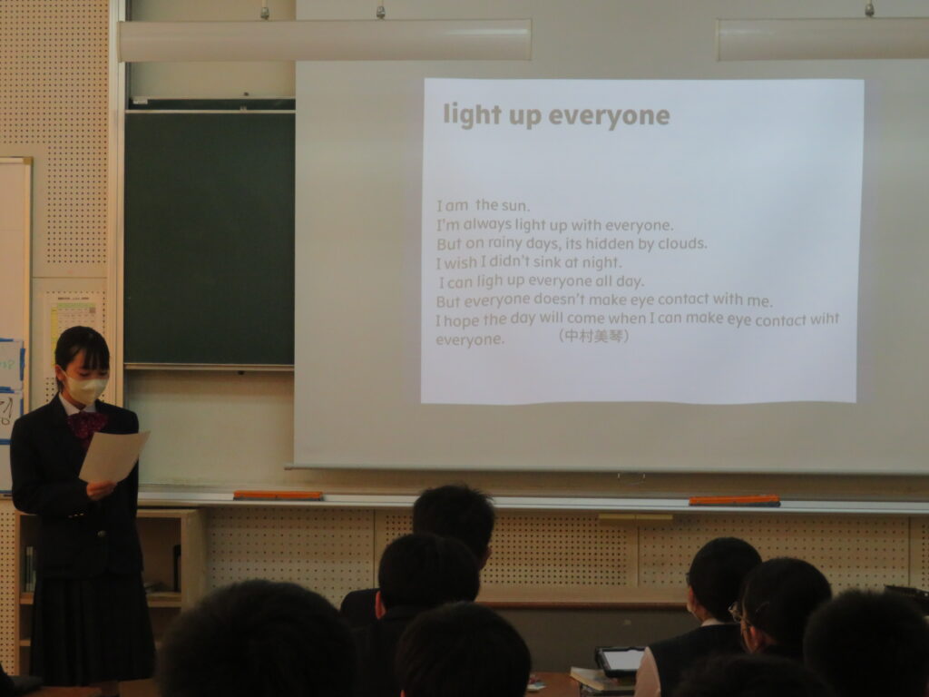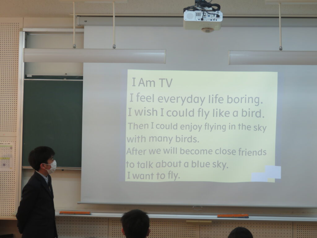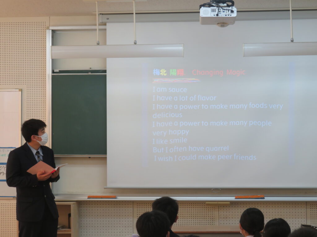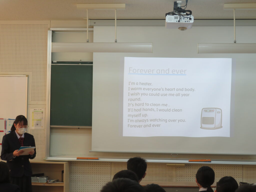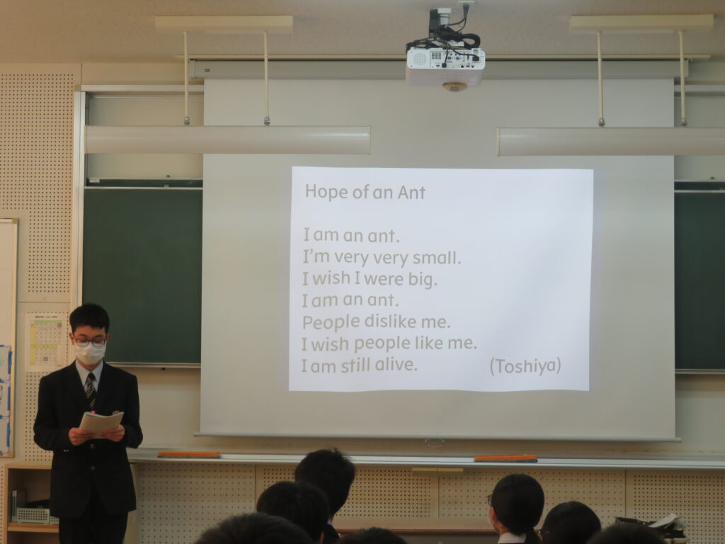 本日、J2英語発展クラスで、仮定法過去を使って英語の詩を発表しました。