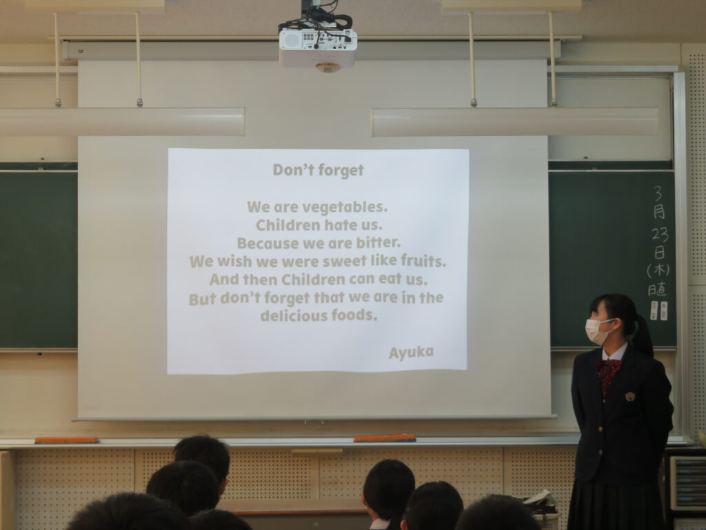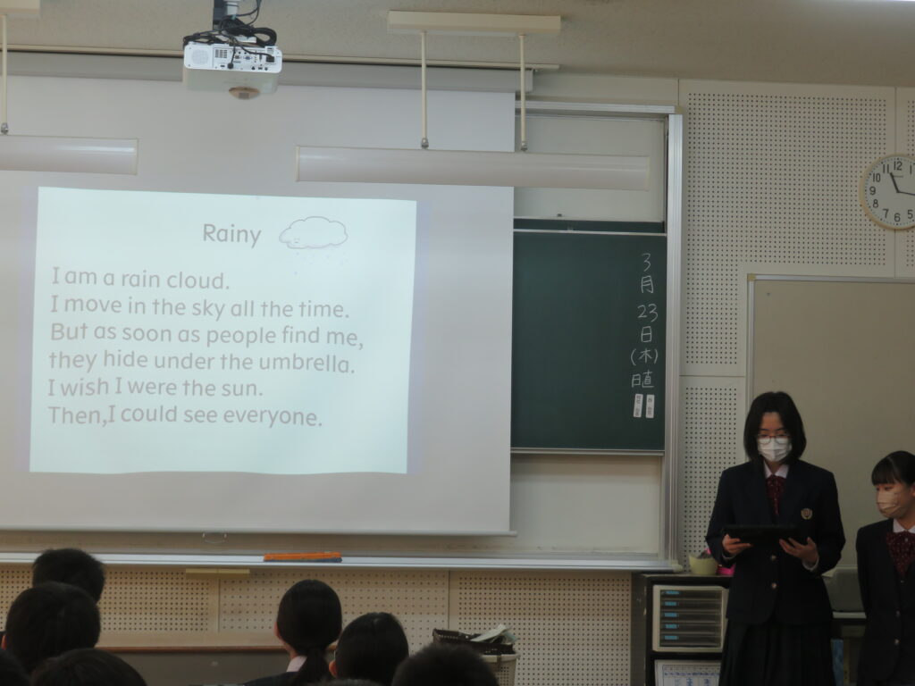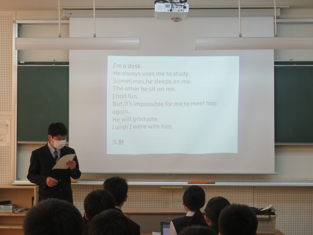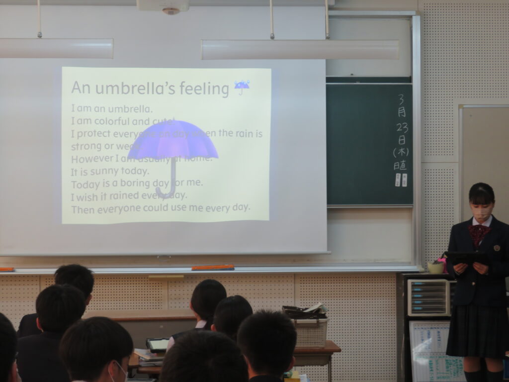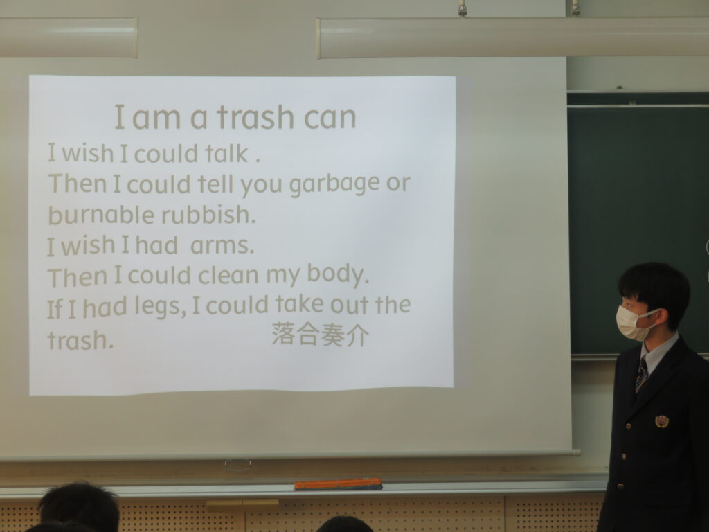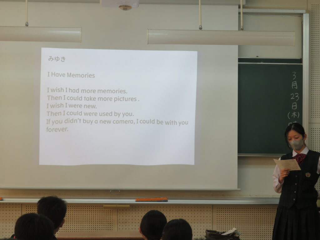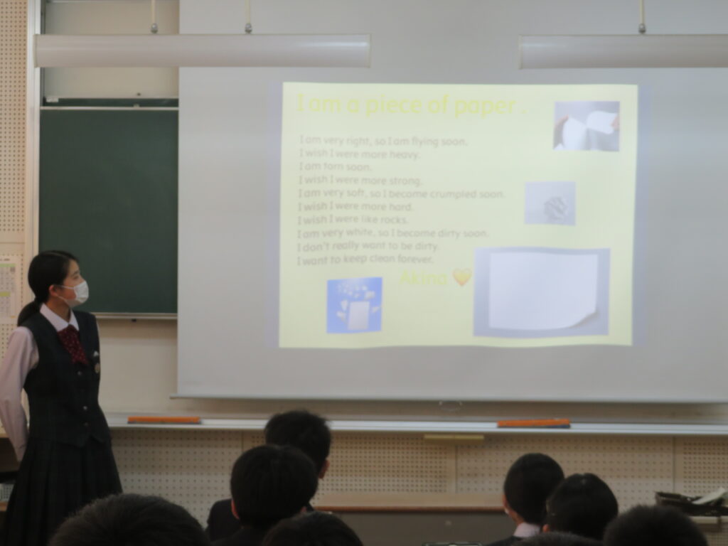 本日、J2英語発展クラスで、仮定法過去を使って英語の詩を発表しました。
