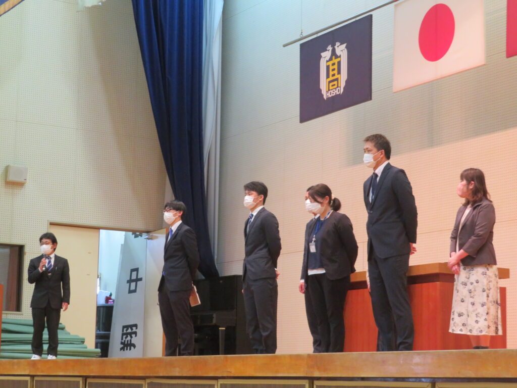鵬翔中学校の新年度がスタートしました。始業式では校長先生のお話、新担任・副担任の紹介が行われました。校長先生からは「大変」は大きく変われるチャンスをもらったと考えて一歩踏み出してみましょうとお話がありました。