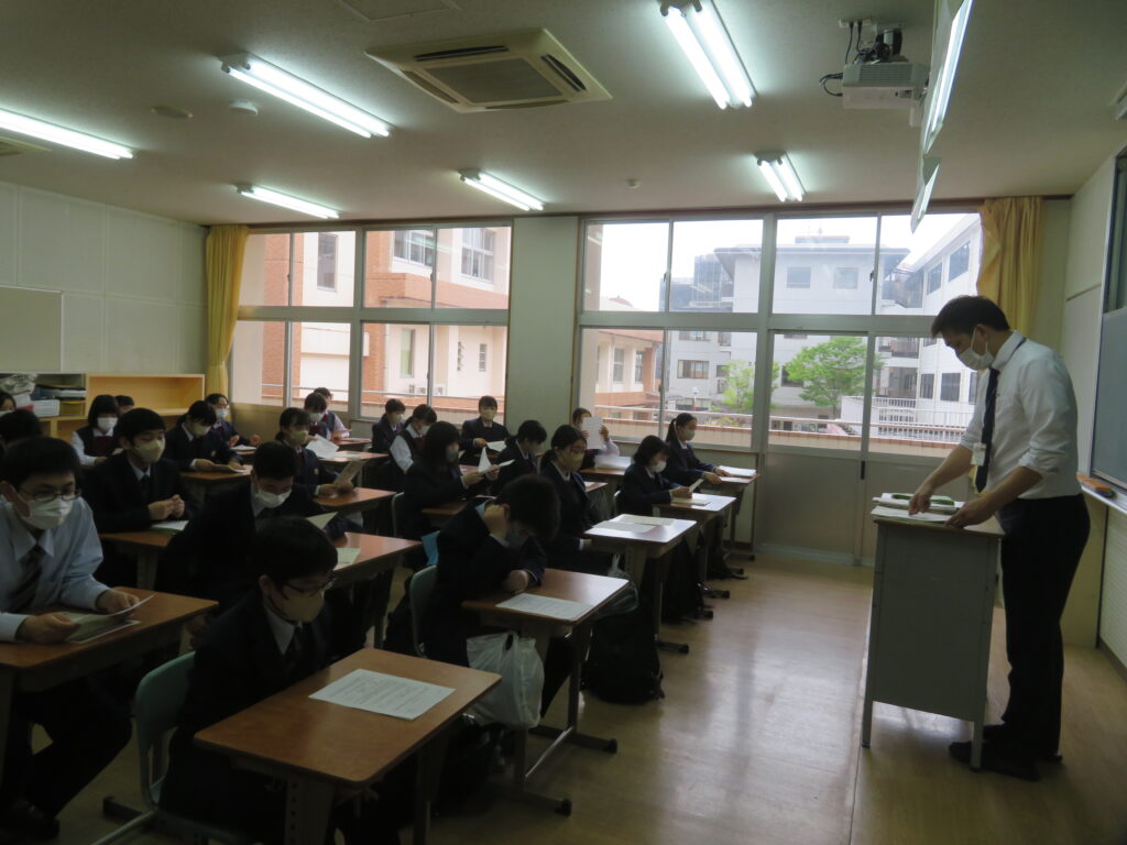集会後は、新クラス発表が行われ、新学級で初めてのHRが行われました。新担任の先生の事項紹介や、今後の日程の確認が行われました。新たなクラスメートと共に1年間頑張ってほしいなと思います。