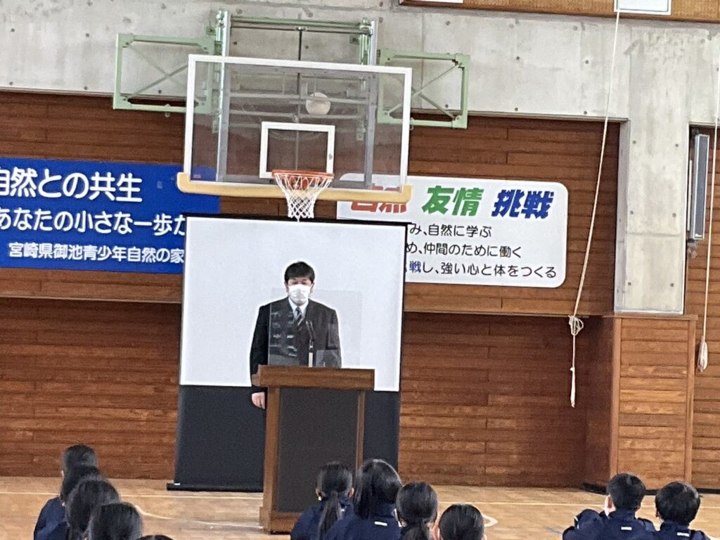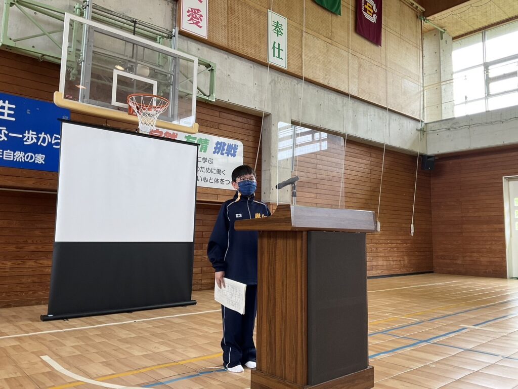 生徒を代表して水早結人さん(清武小出身)が生徒代表挨拶を行いました。