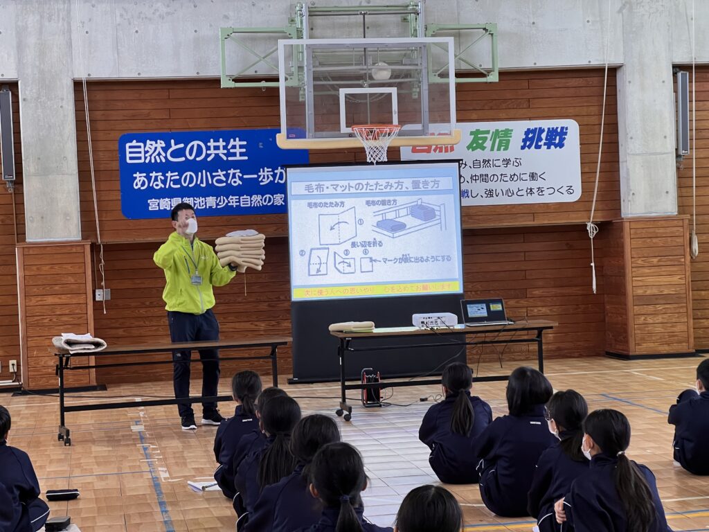 次に所長の永山先生から規律・協同・友愛・奉仕の4つを学んでください。少し不便な生活をしながら友人たちと協力し3日間過ごしてくださいとお話しをしていただきました。