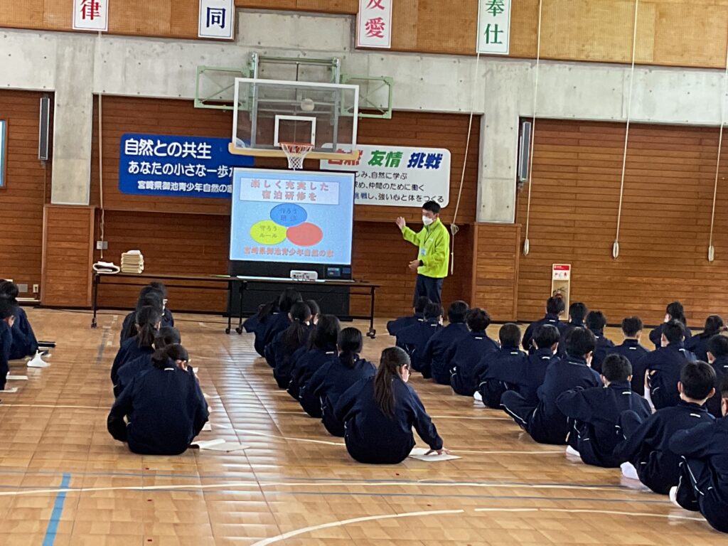 本日よりJ1生の新入生宿泊研修が始まりました。朝学校を出発し、全員元気に御池青少年自然の家に到着しています。2泊3日J1生全員で協力をして多くのことを学んできます。