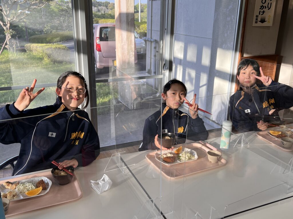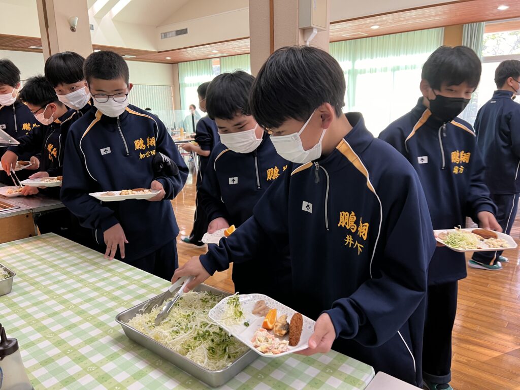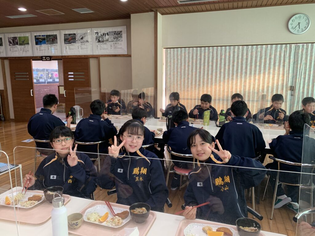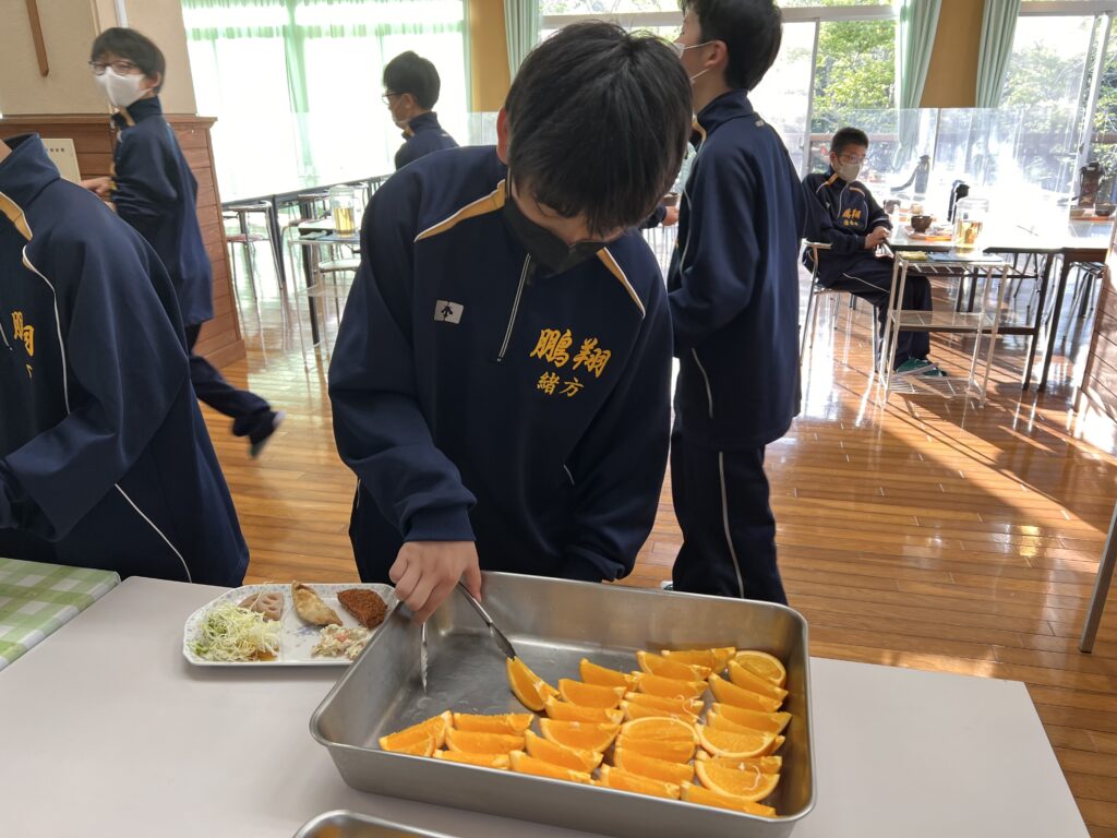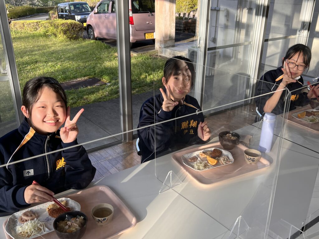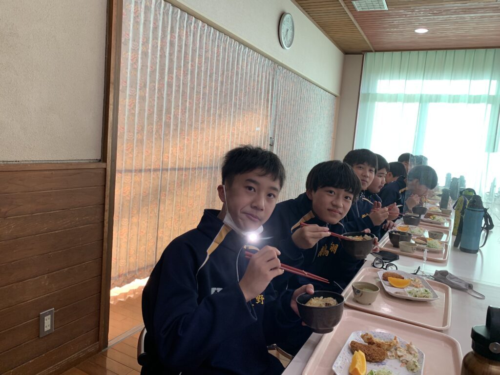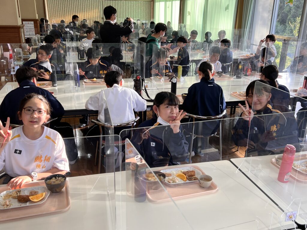 夕べの集いの後は夕食の時間です。お腹が空いていたのか,おかわりをする生徒が多かったです。