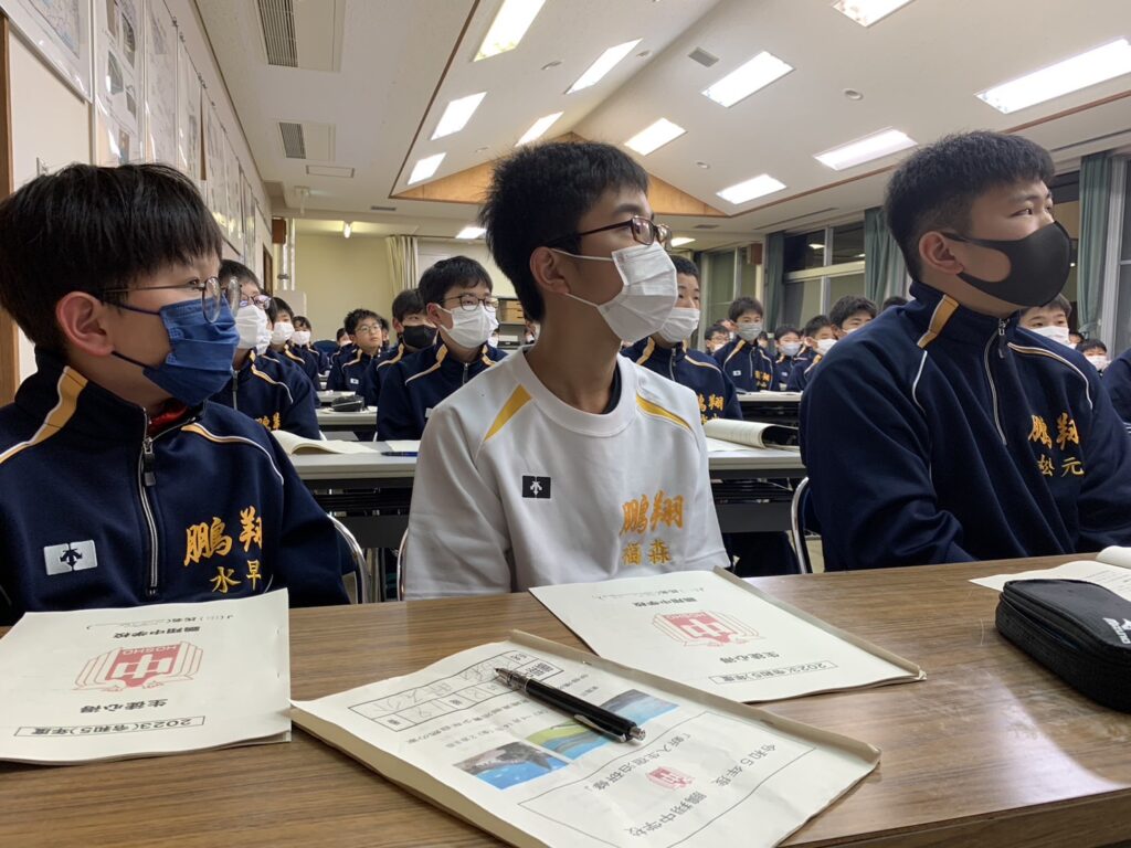 入浴を終え、1日目最後の活動生徒心得①を行いました。