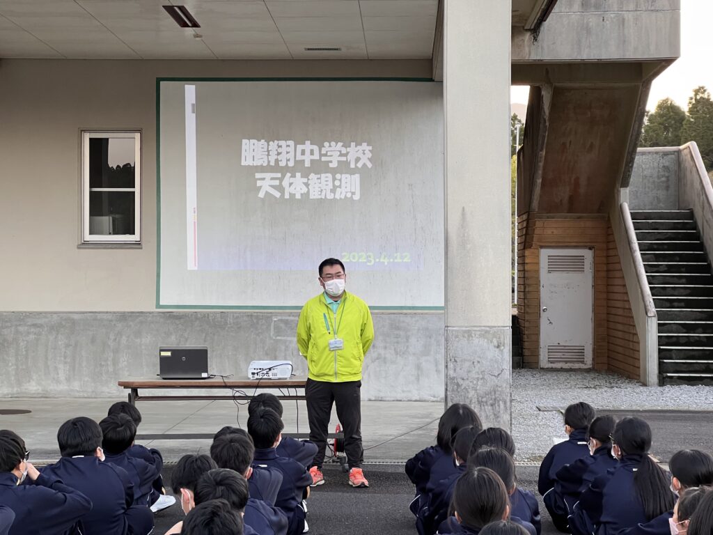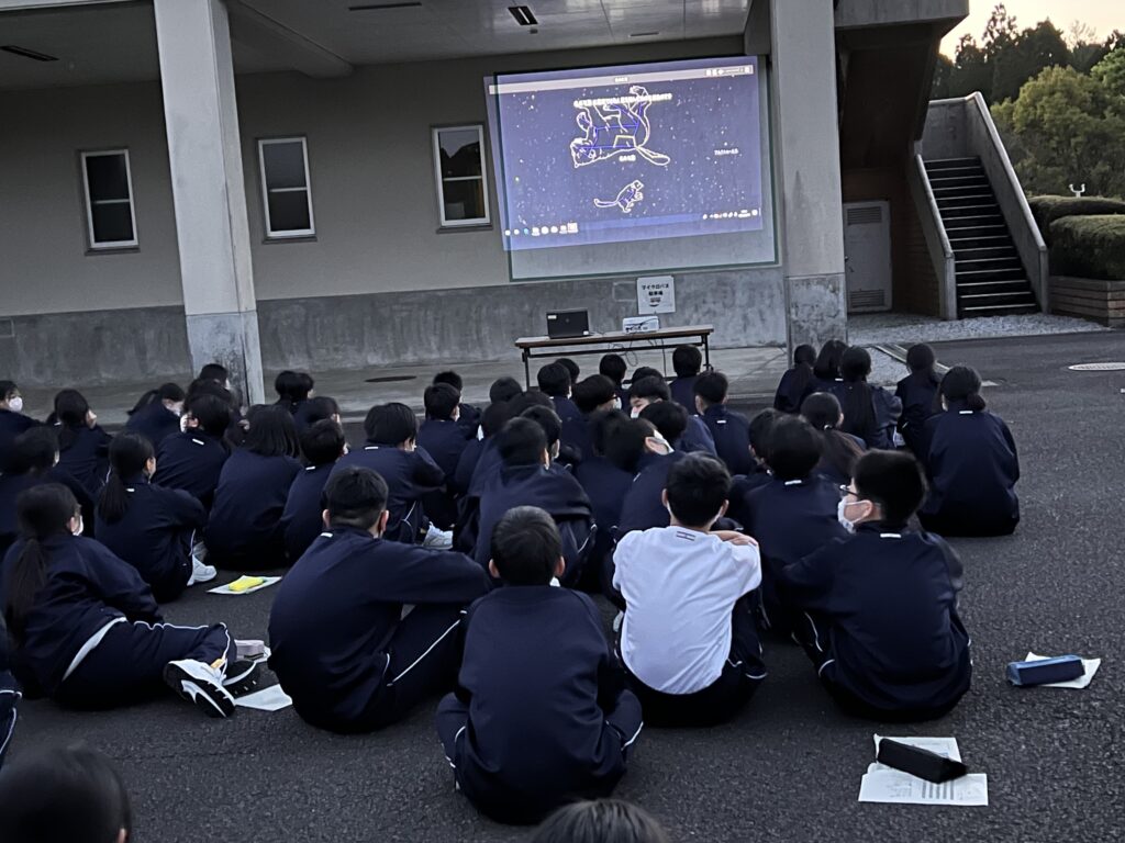 夕食後は天体観測です。曇り空で星が見えるか不安ではありましたが、星を見ることができました。実際に星を観測する前に所員の先生から御池付近の自然環境や星座について説明を受けました。