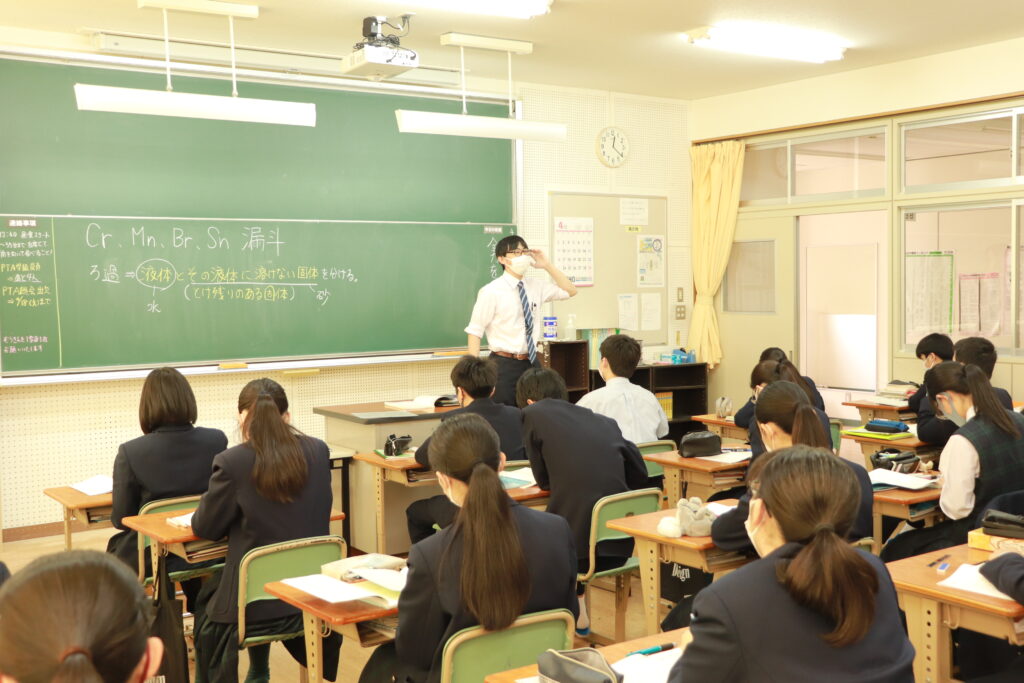 中学内容の時は【理科】だったものが、今年度から【化学基礎】【物理基礎】【生物基礎】と3つの分野に分かれて授業を行っていきます。そのため、内容もより専門的になり難しくなっていきますが、生徒たちにとっては不安な気持ちよりも、どのようなことを学ぶことが出来るのかといった好奇心の方が強いみたいです。大学受験に向けた授業に一気に近づきましたが、生徒達には切磋琢磨しながら頑張ってほしいです。