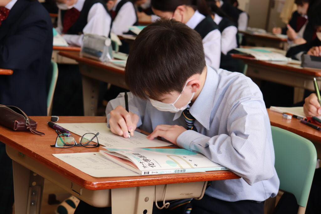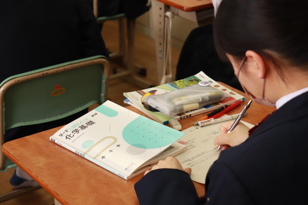 本日、J3生の授業ではいよいよ高校の内容【化学基礎】の授業が本格的にスタートしました。