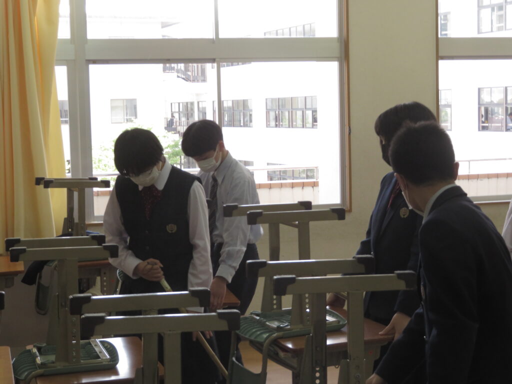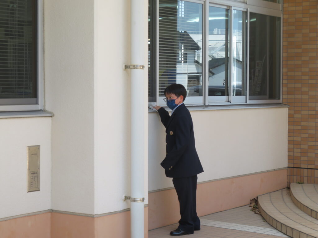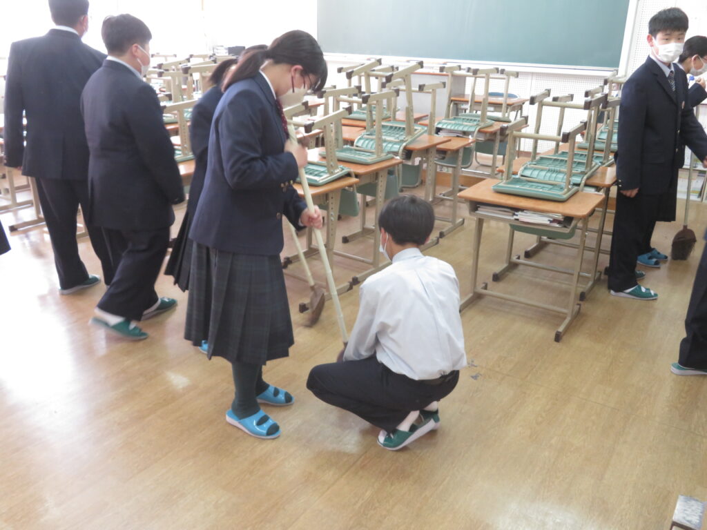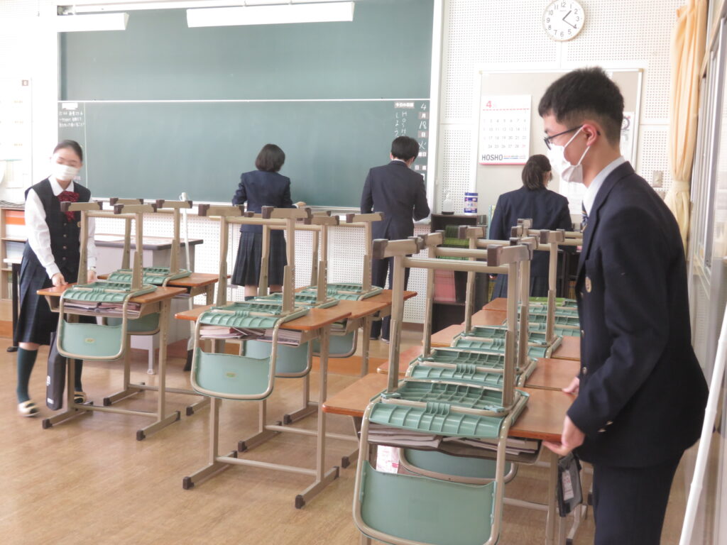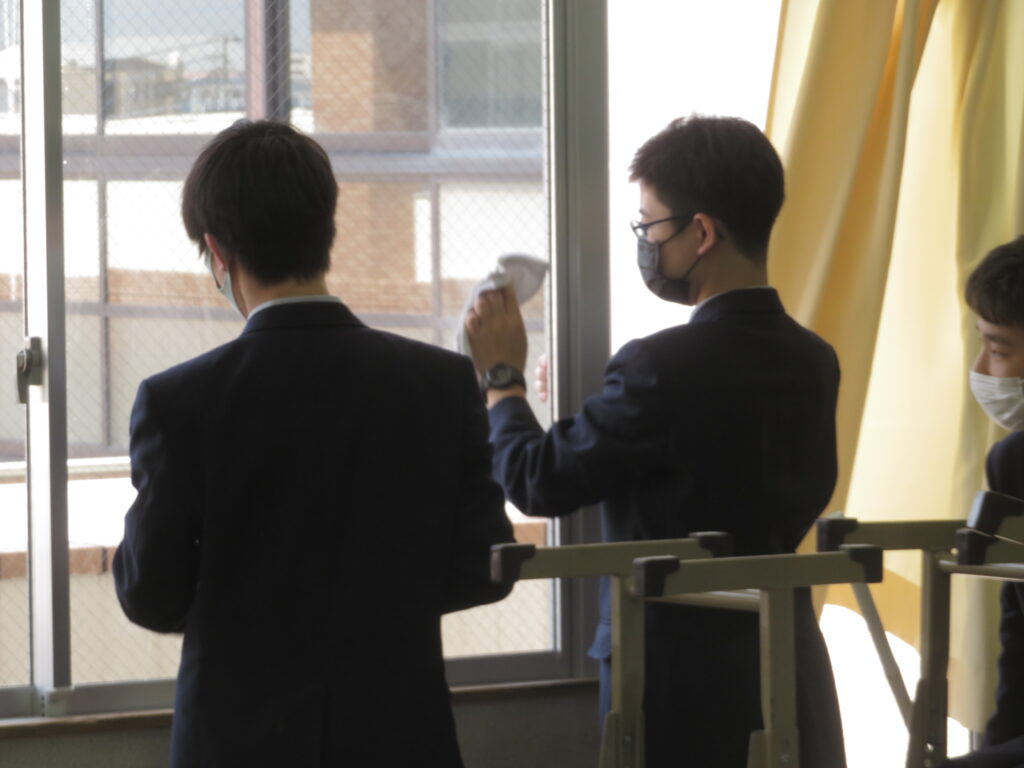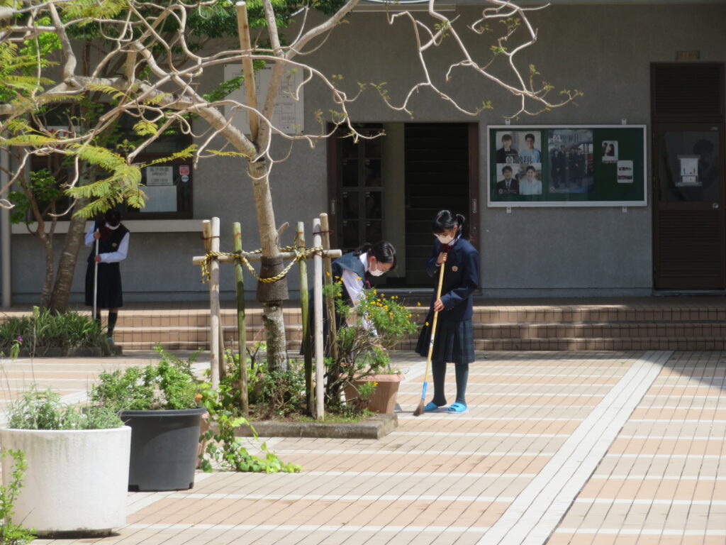 毎日お昼休みのあとは、15分間の清掃を行います。静かに黙々と清掃に取り組みます。 各教室はもちろん、事務室前や中庭、多目的ホール等も中学生が担当しています。 鵬翔生全員で清掃に取り組み、きれいな学び舎で勉学や部活動に全力で励みましょう!