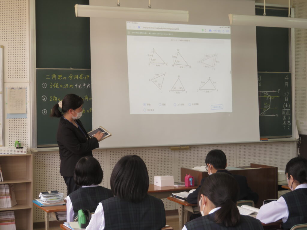 PTA総会後、授業参観を行いました。J1生は英語、J2生は数学、J3生は理科を実施しました。