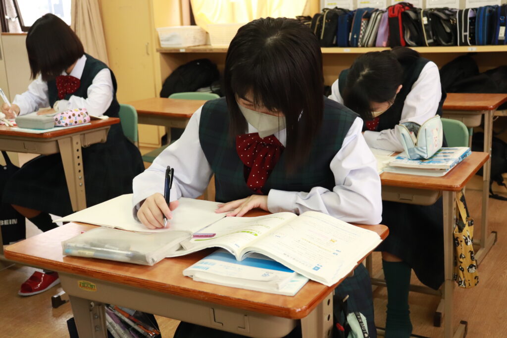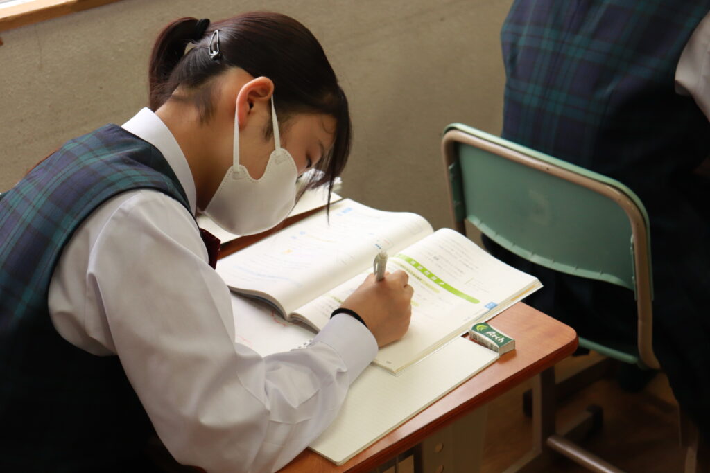 土曜日の授業は、国語・数学・英語の授業が行われ、1週間の疲れが溜まっている中ではありますが、生徒たちはいつでも全力投球で頑張っています。