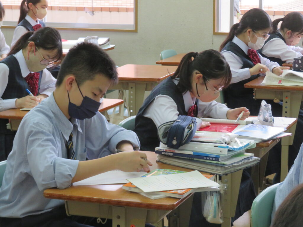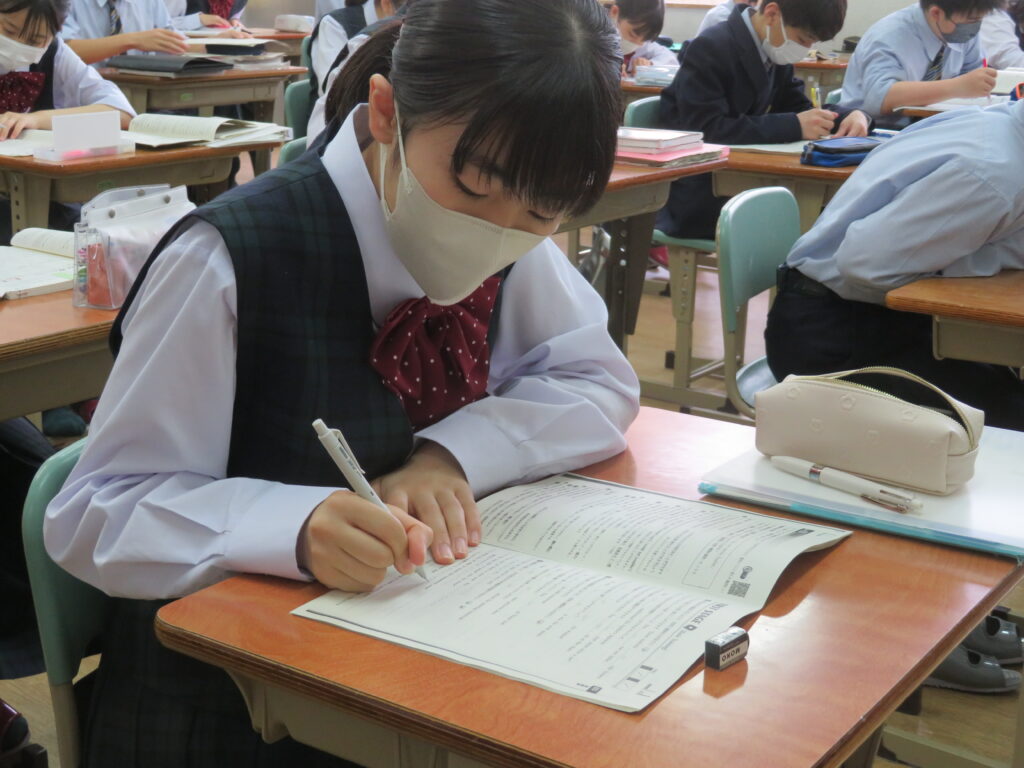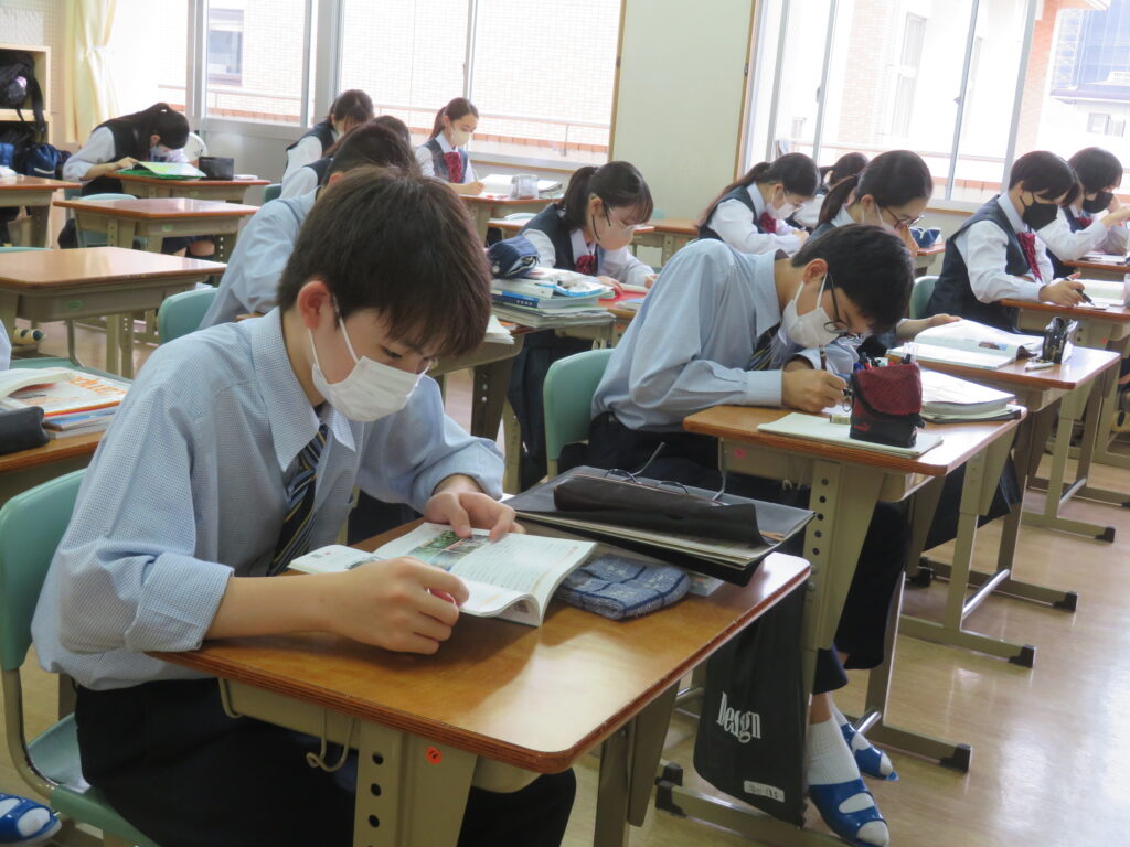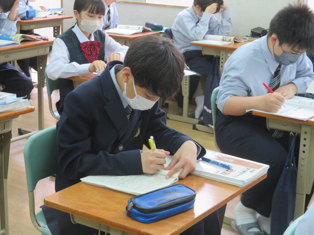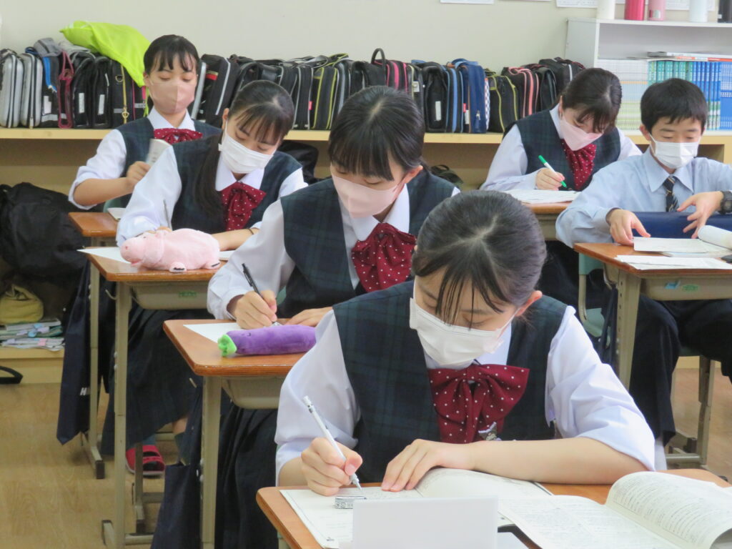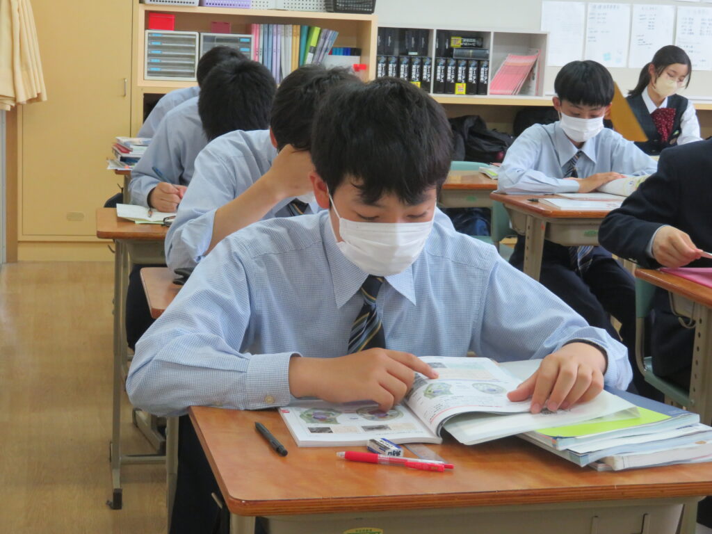 明日行われる教科の対策を黙々と行っていました。授業で「教えてもらう」だけが勉強ではなく、自分から学んでいくことも大切です。分からないところや疑問に思ったことを自分から進んで調べ、学んでいく姿勢を身に付けてほしいなと思います。