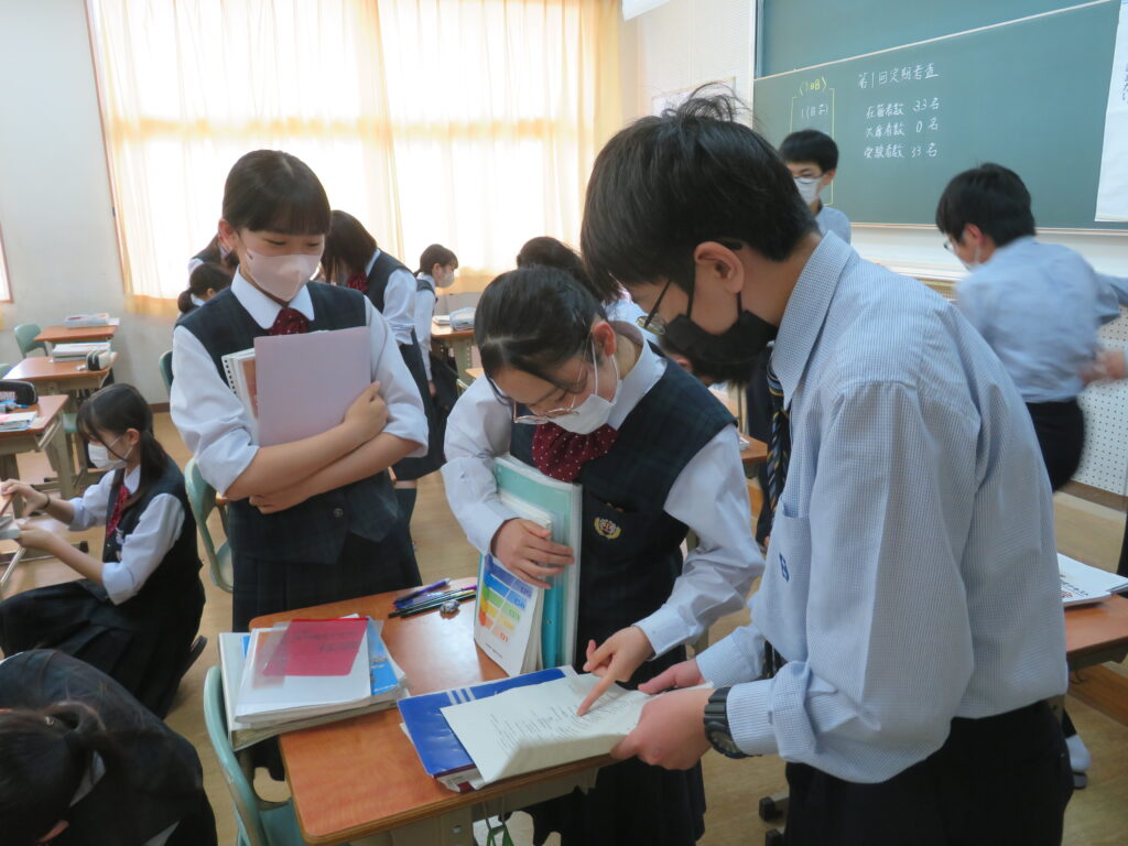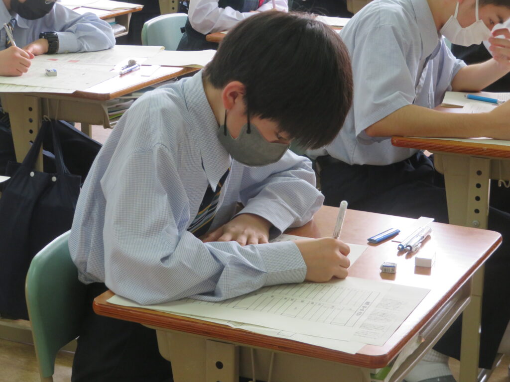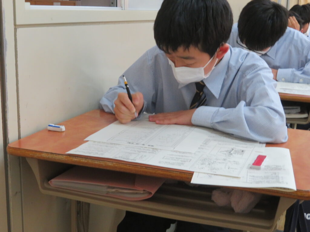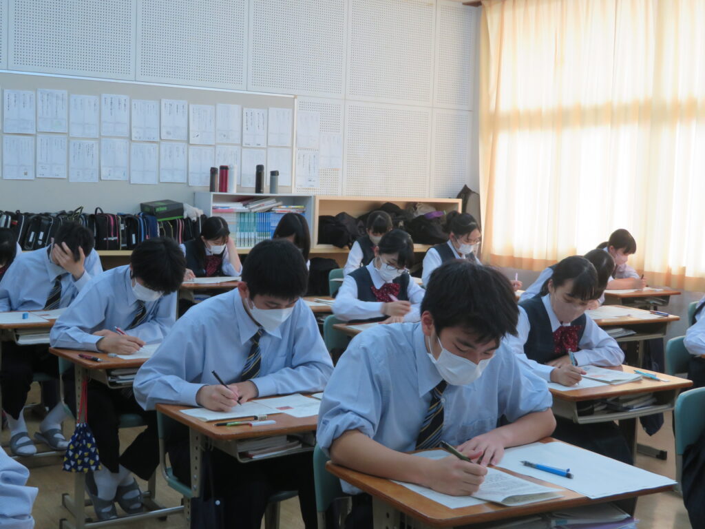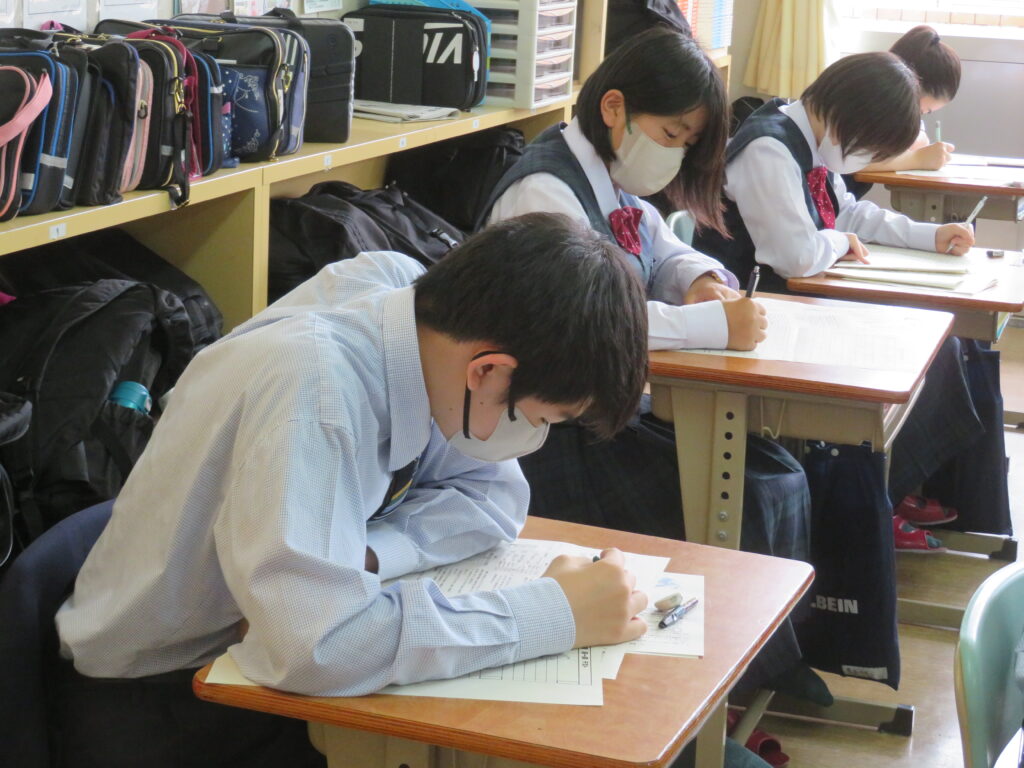 休み時間は、黙々と自分でまとめたノートとにらめっこをする姿や友人同士で問題を出し合い時間ぎりぎりまで確認する姿が見られます。