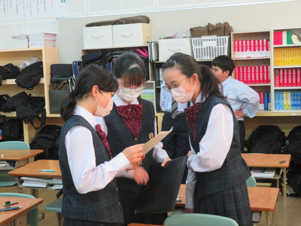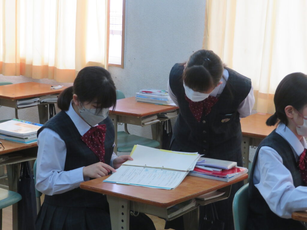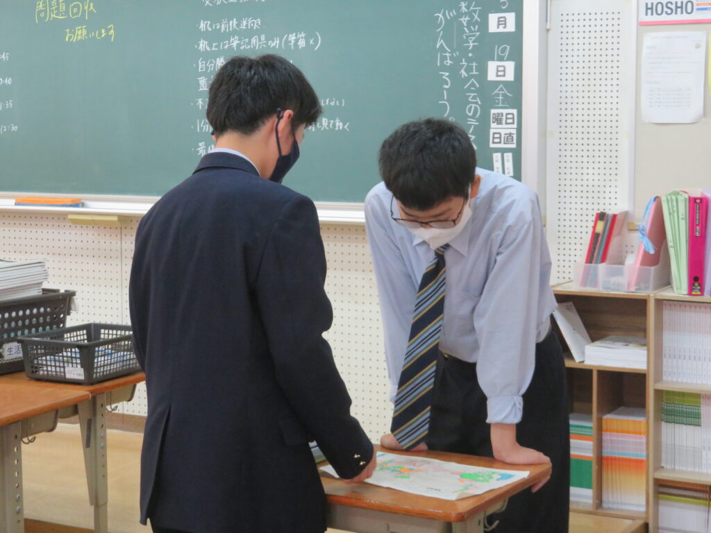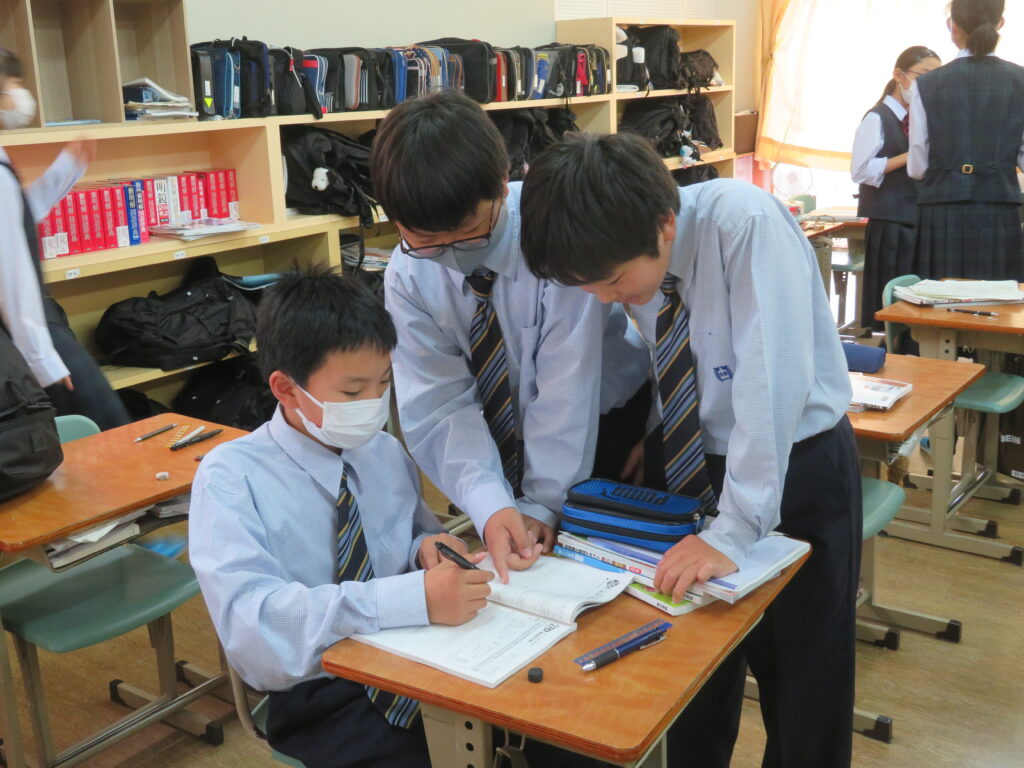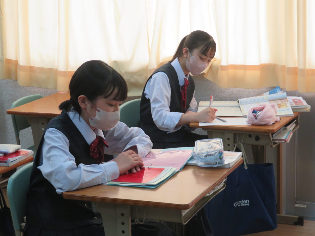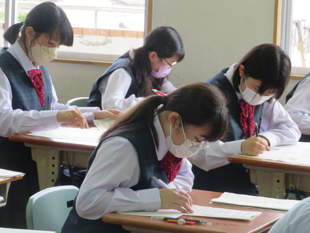 休み時間は、黙々と自分でまとめたノートとにらめっこをする姿や友人同士で問題を出し合い時間ぎりぎりまで確認する姿が見られます。