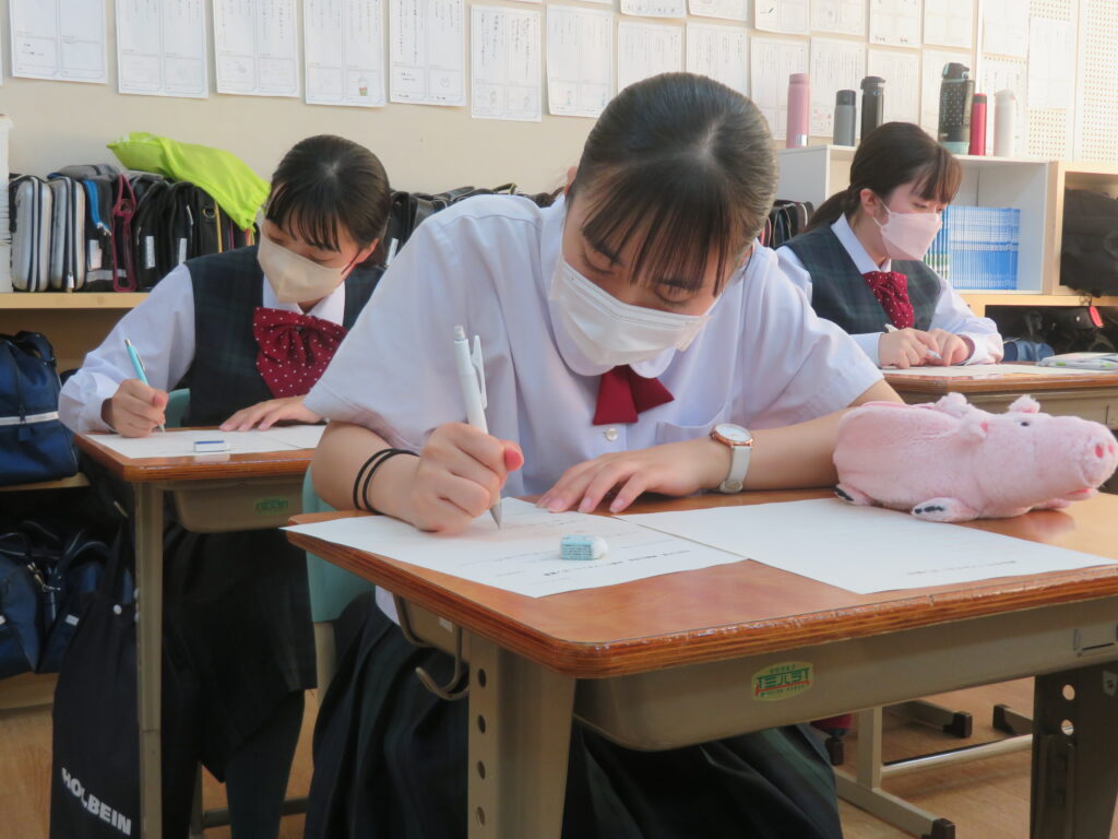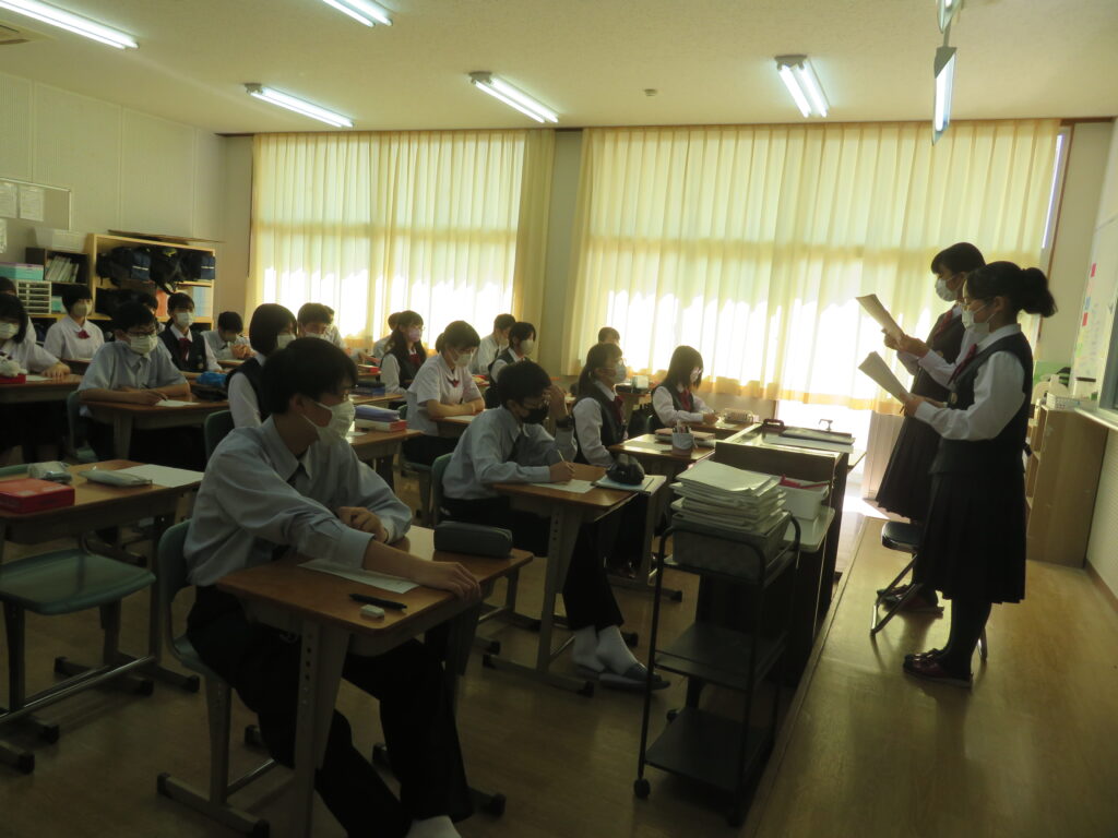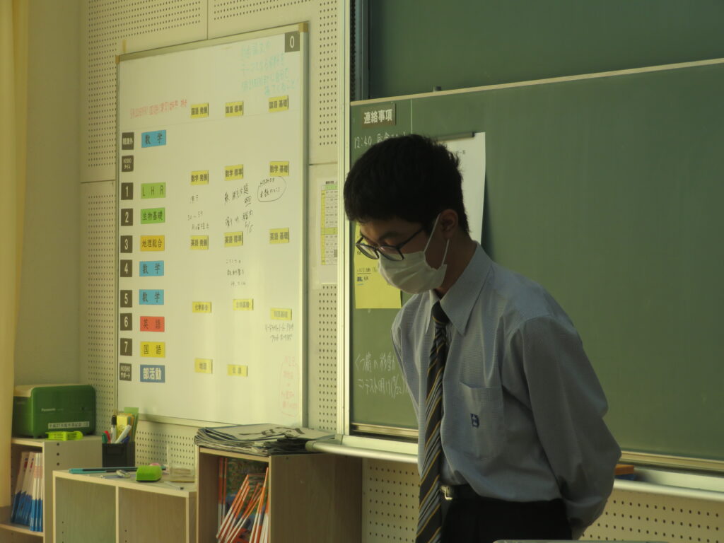 毎年、全校生徒がそれぞれ考えたものを集約し、生徒会役員がその年の年間スローガンを決定します。