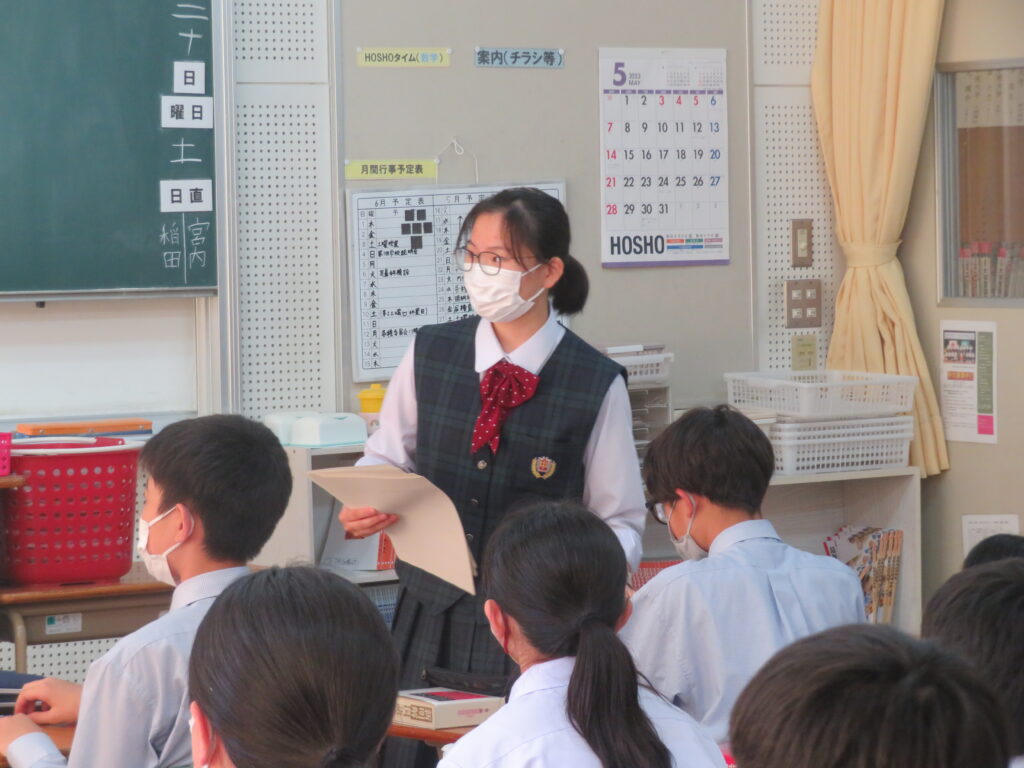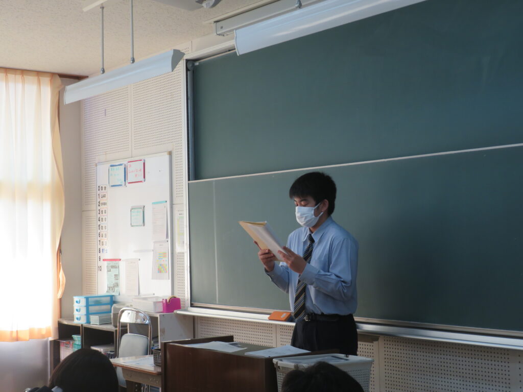 生徒会役員が年間テーマを決める意義や注意事項の説明を各学級で行ってくれました。