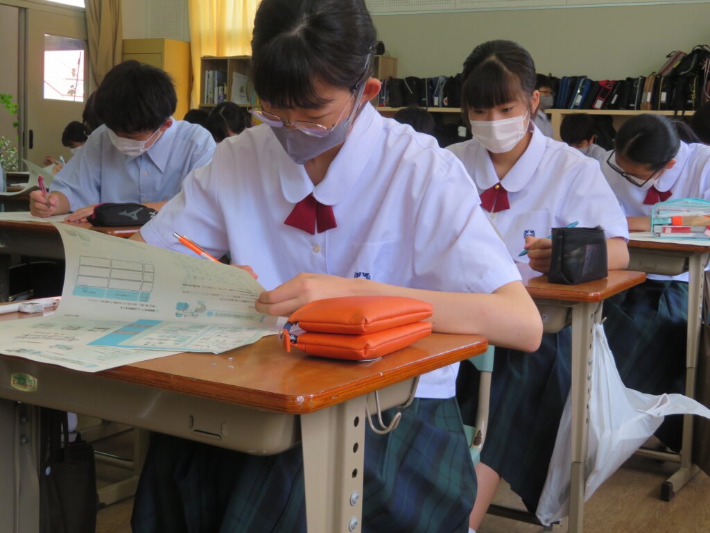 J1Aでは職業について考えました。適職診断を行ったり、グループで職業に対する考え方を意見交換しました。今後の職業調べ・学部学科調べに繋げていきます。