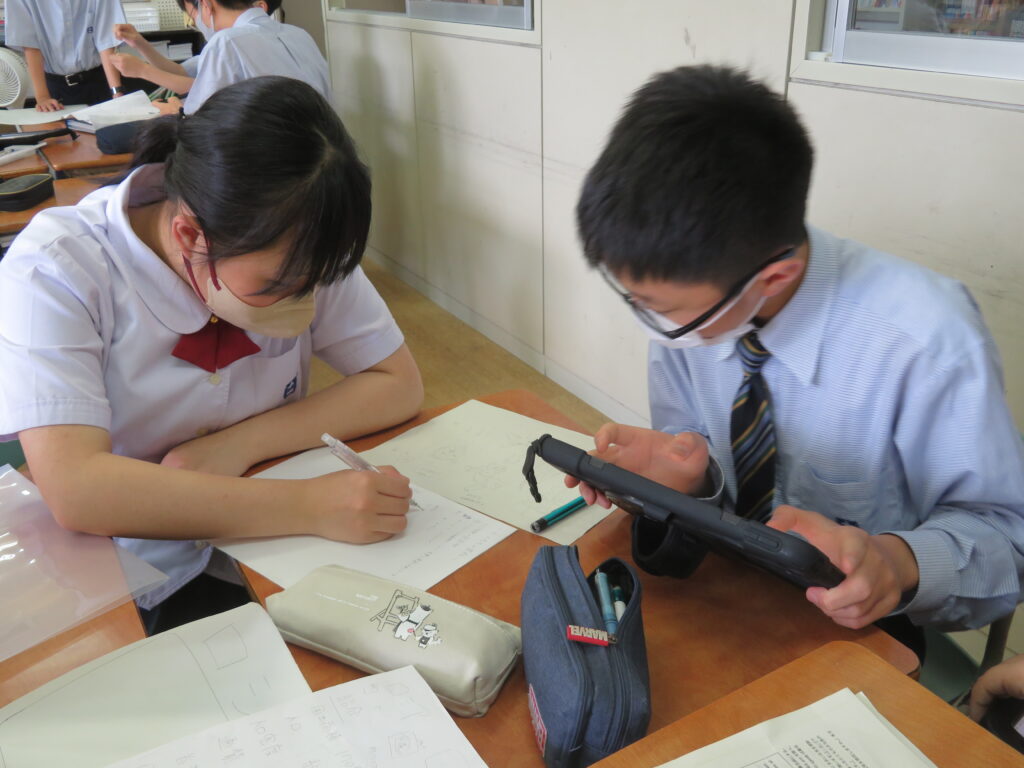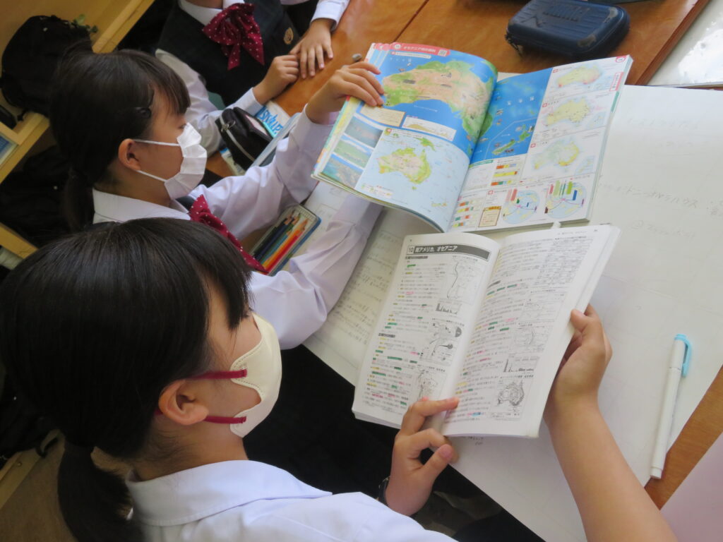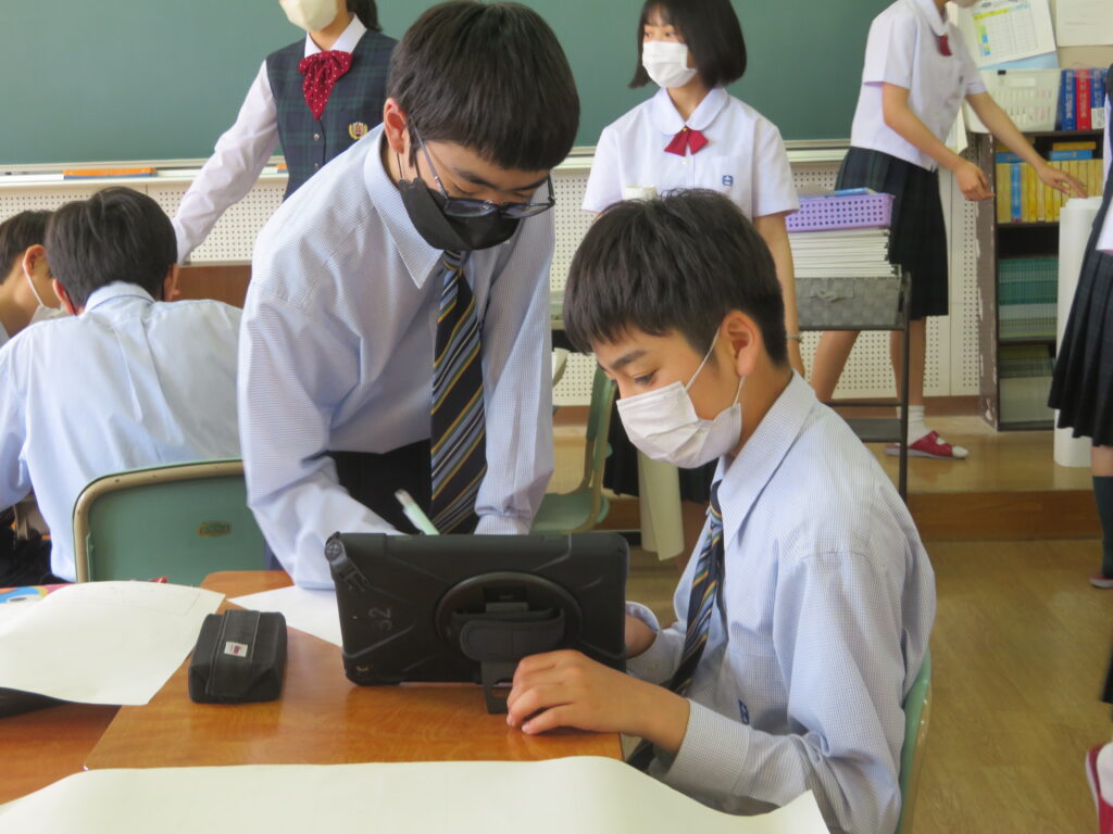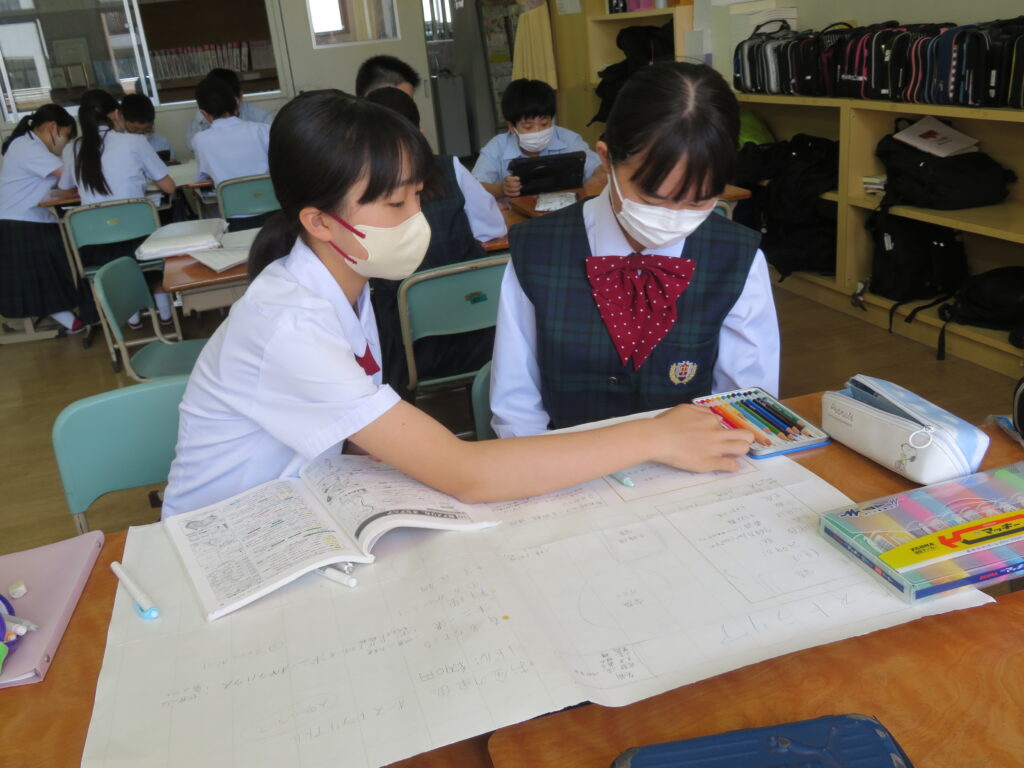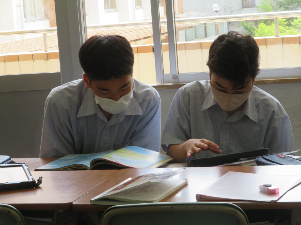 J2A・Bは先週に引き続き、海外調べを行っていました。グループごとに役割分担をし、調べ学習を進めています。調べ学習を進めていくにつれ、初めて知ったこともあったことでしょう。「さらに知りたい!」と思ったことはどんどん調べ学びを深めていってほしいと思います。