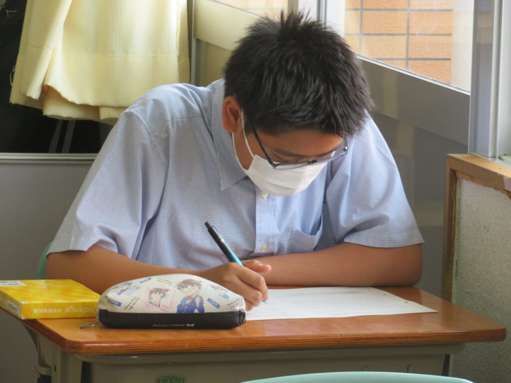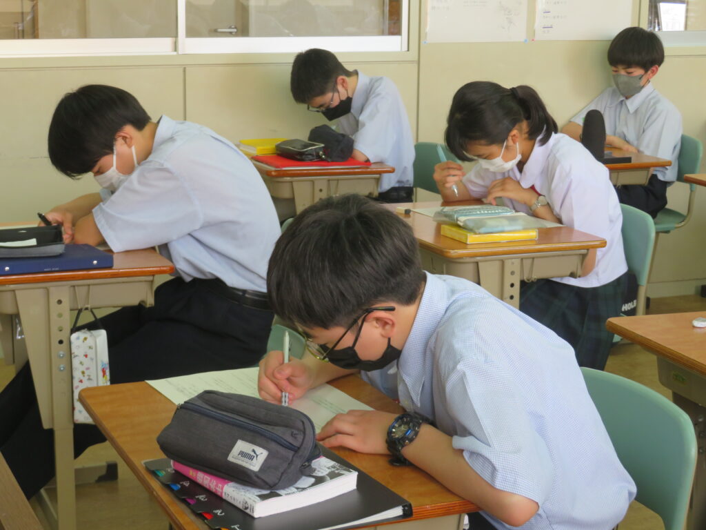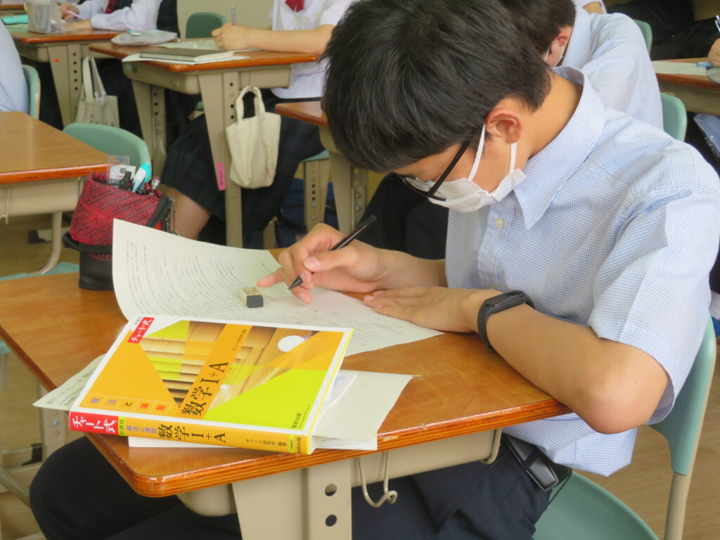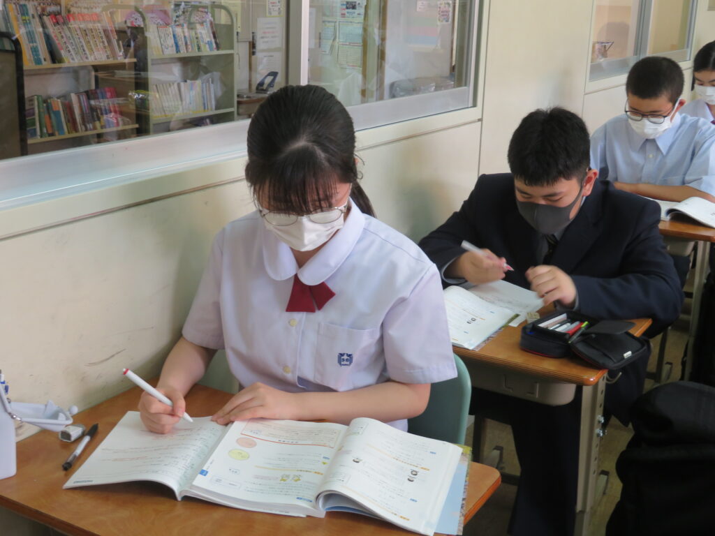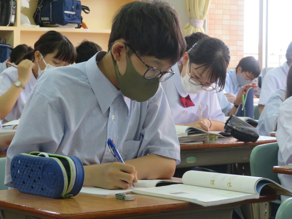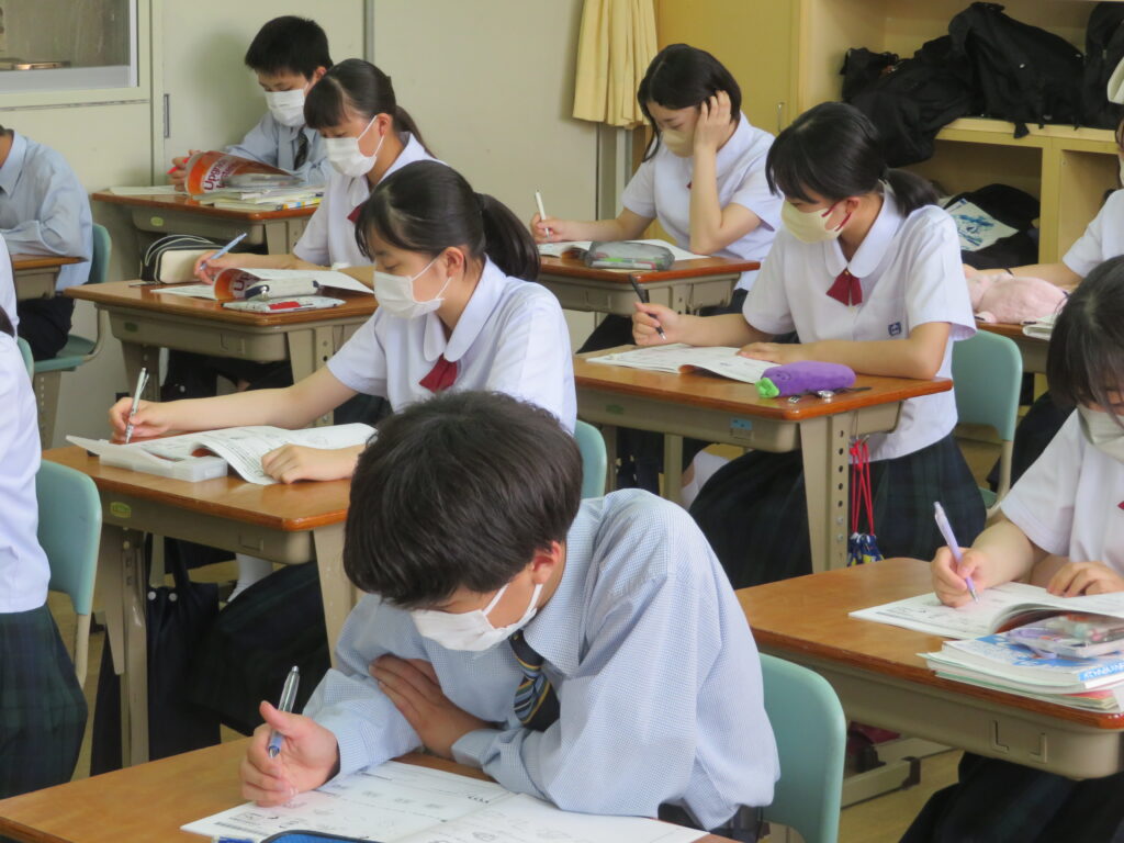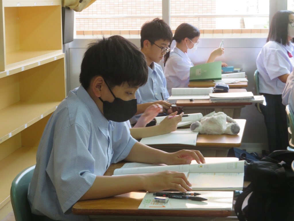 本日は、HOSHOサポートの様子を紹介します。火曜日と金曜日の16:30~17:10の40分間、授業とは違い演習問題を中心に取り組みます。今日は、J1生・J3-Bは数学。J2生・J3-Aは英語です。