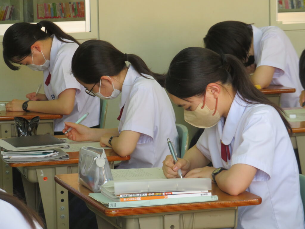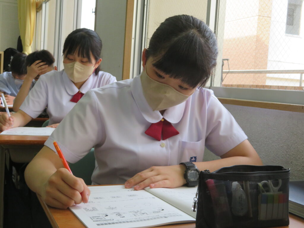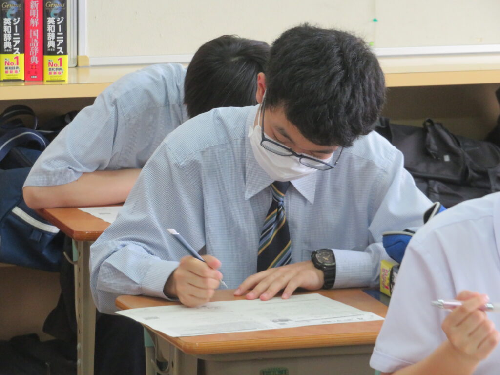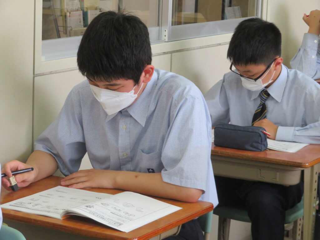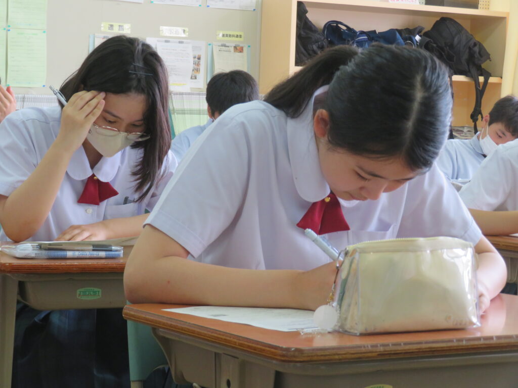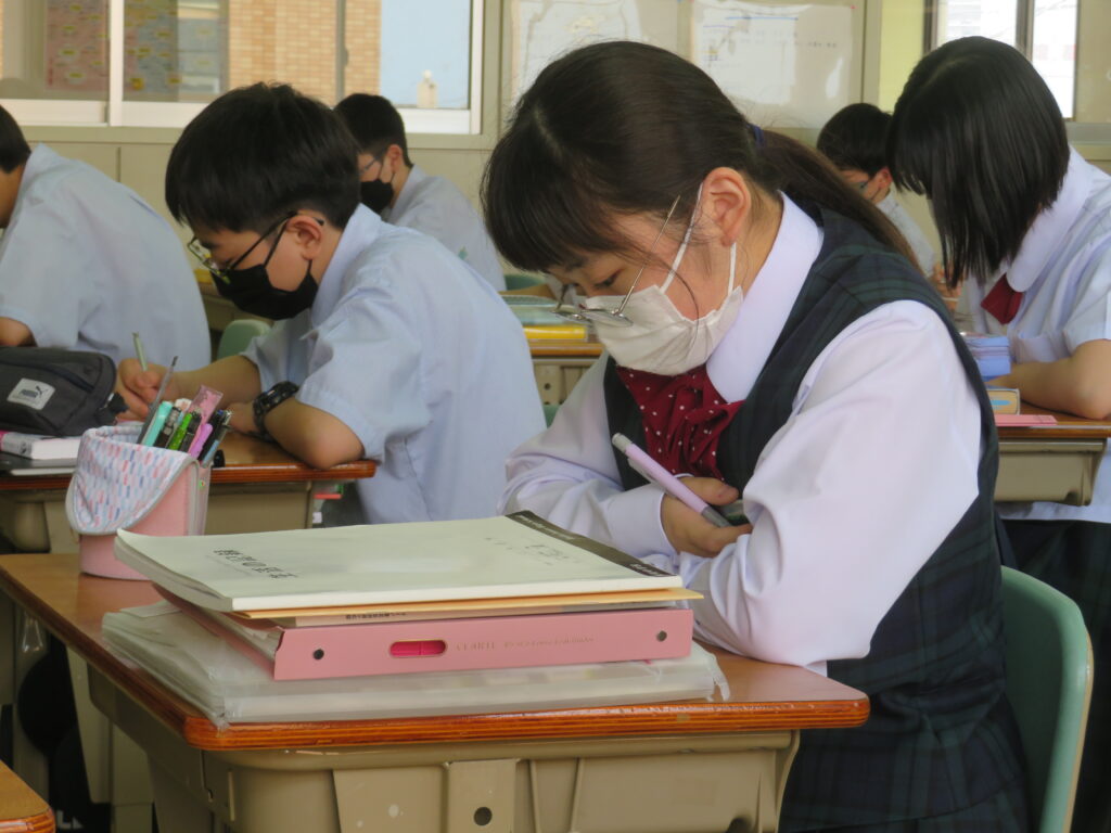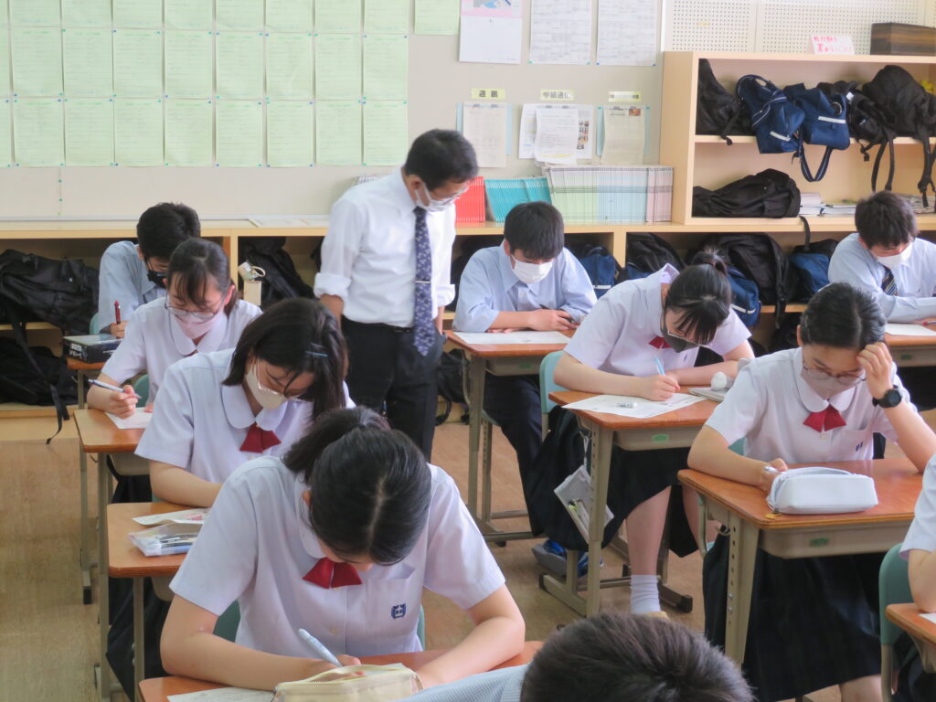 本日は、HOSHOサポートの様子を紹介します。火曜日と金曜日の16:30~17:10の40分間、授業とは違い演習問題を中心に取り組みます。今日は、J1生・J3-Bは数学。J2生・J3-Aは英語です。