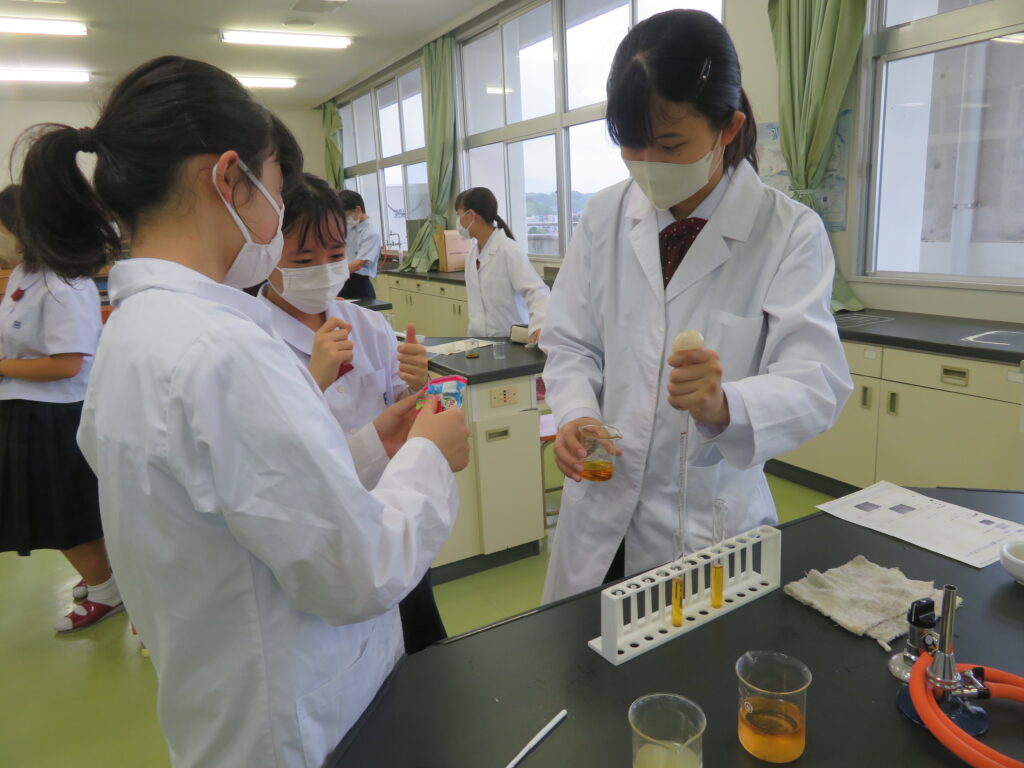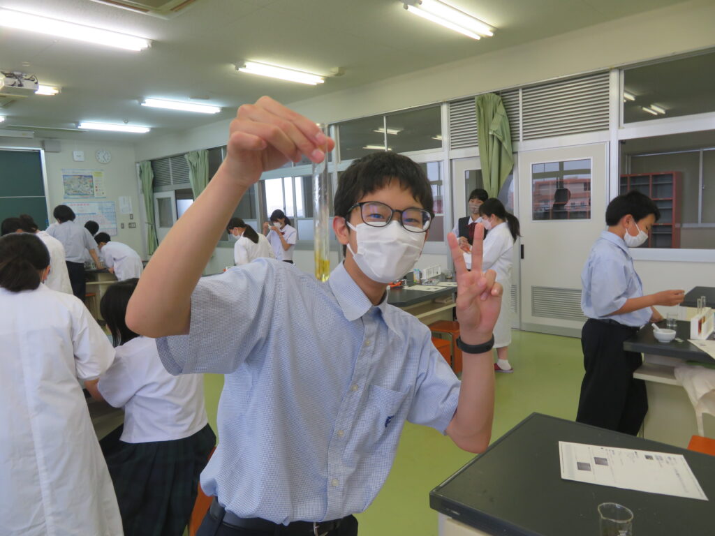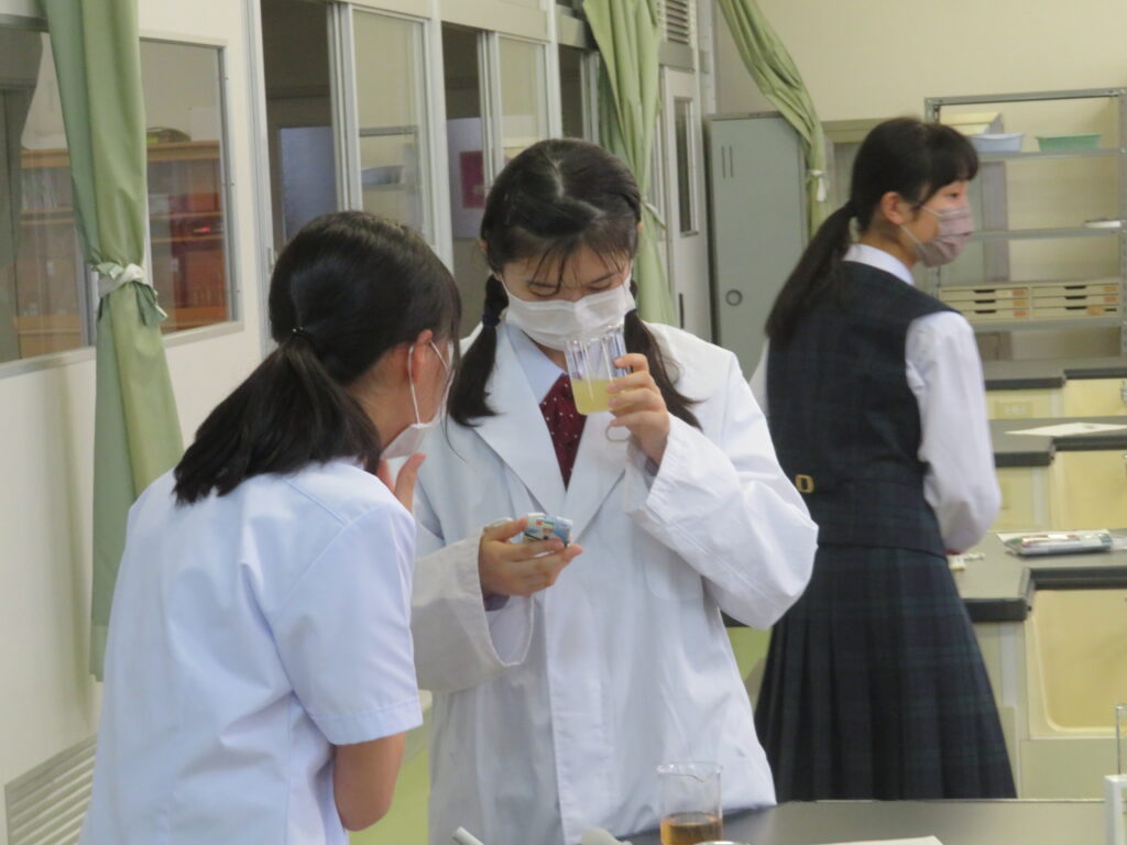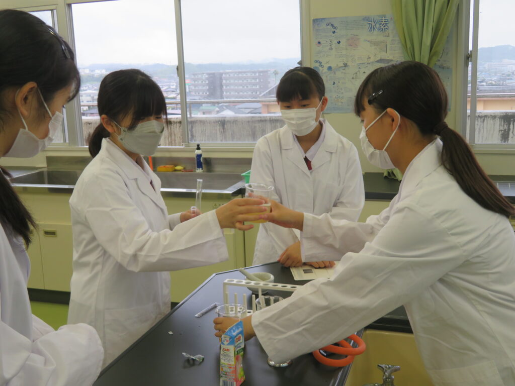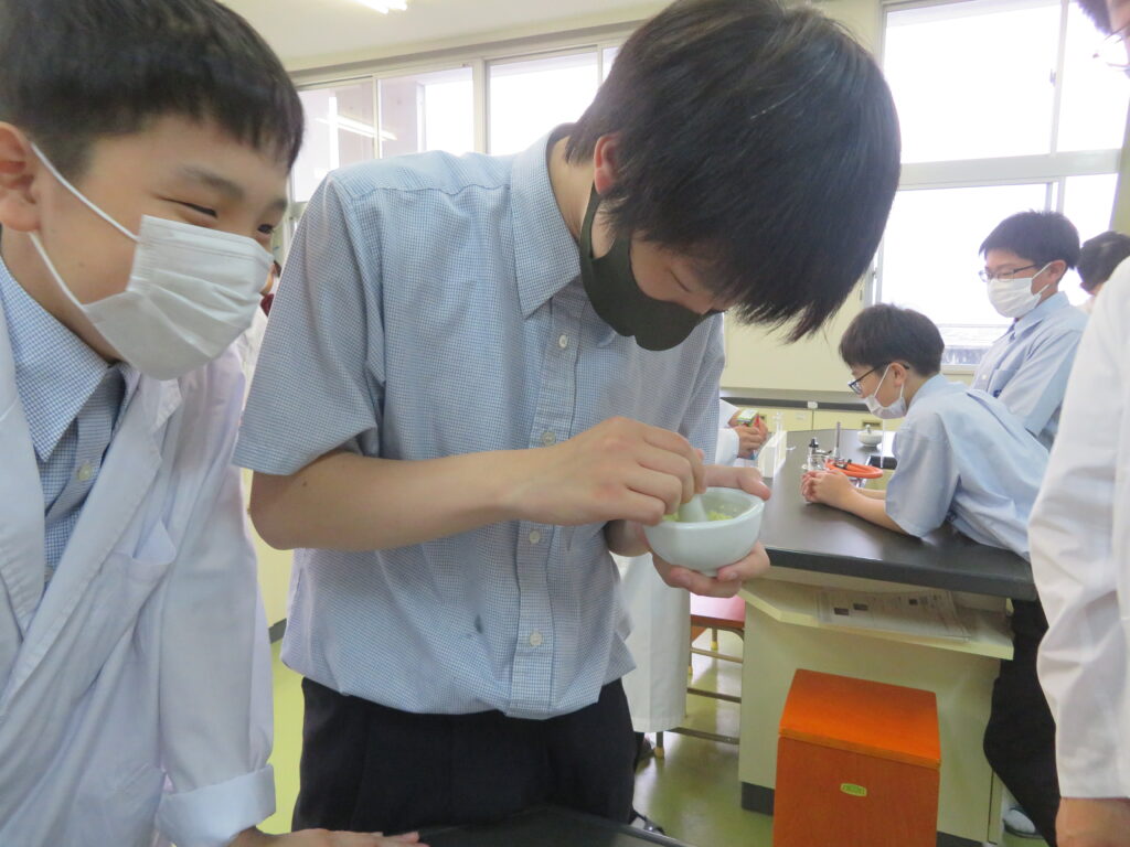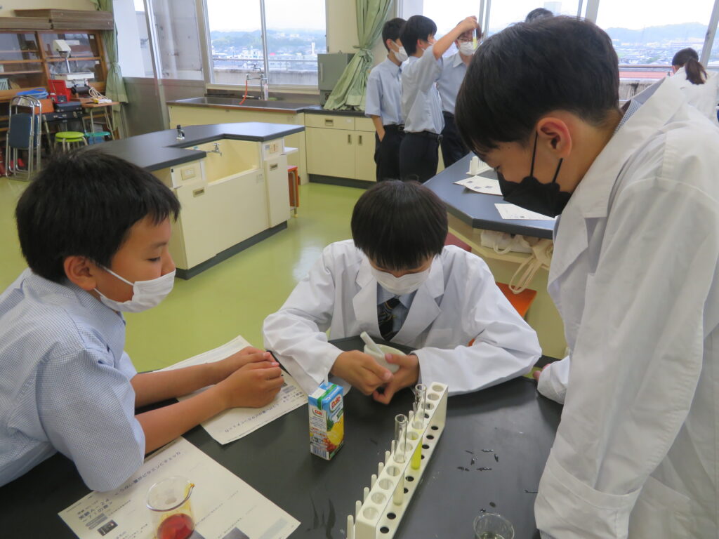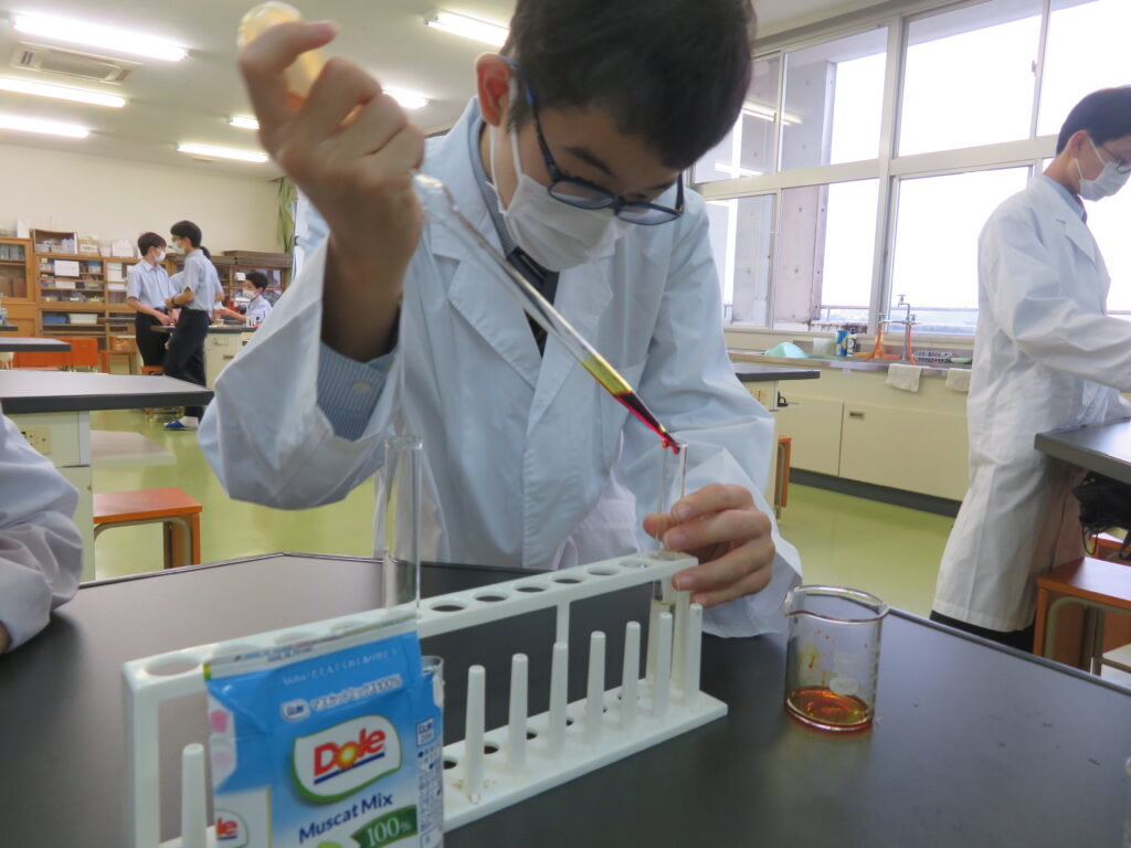 イチゴ、グレープフルーツ、巨峰、桃、マスカット。どうやら、イチゴがビタミンCを多く含んでいたようです。次はどんな実験をするのか毎回の部活動が楽しみですね!