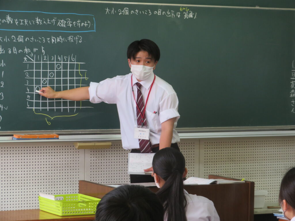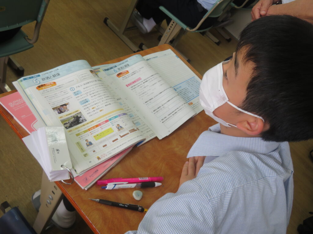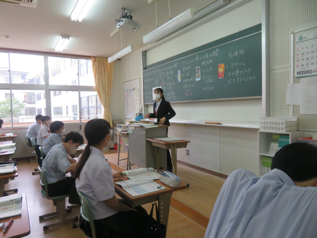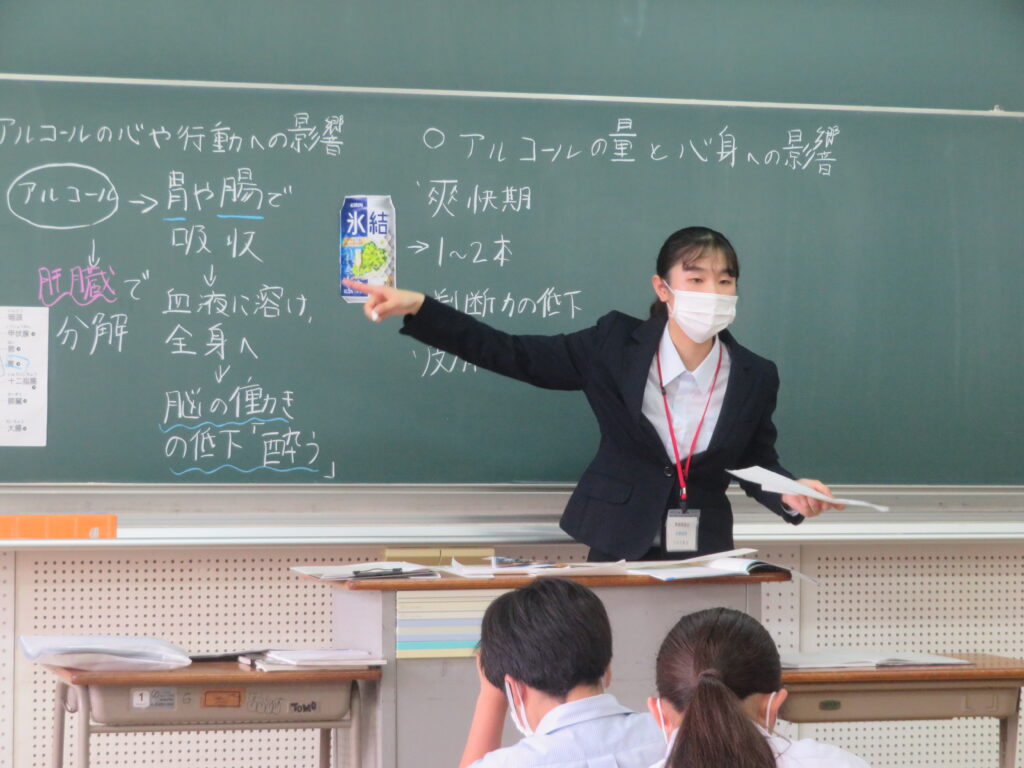 髙橋先生は、J2数学標準クラスで「確率」の単元。大田川先生は、J2-A保健の授業「飲酒と健康」の単元の授業を行いました。