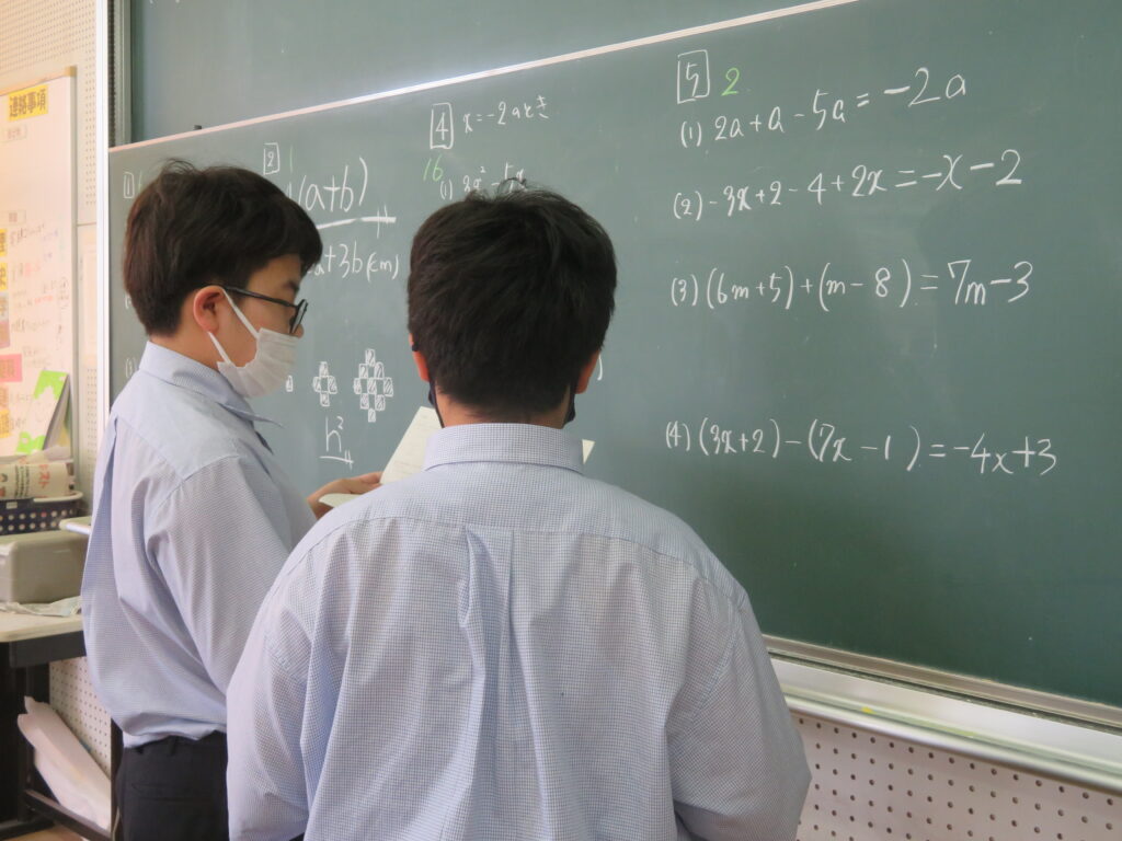 来週20日(火)より、第2回定期考査が始まります。現在J1生数学は、文字と式の単元を学習しています。