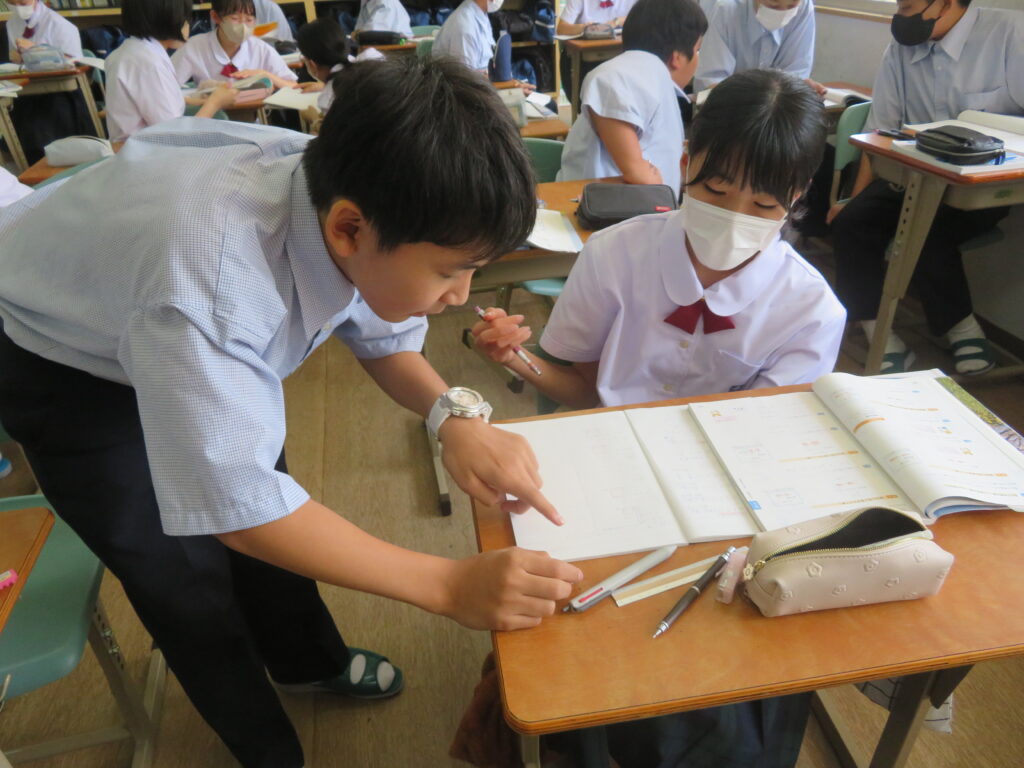 J1-Bでは、まず自分で問題を解き、その後近くの友人と答えはもちろん解き方があっているか確認をしていました。
