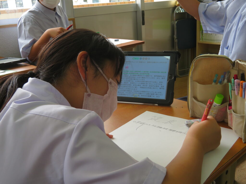 J1生は職業・大学について学習していました。