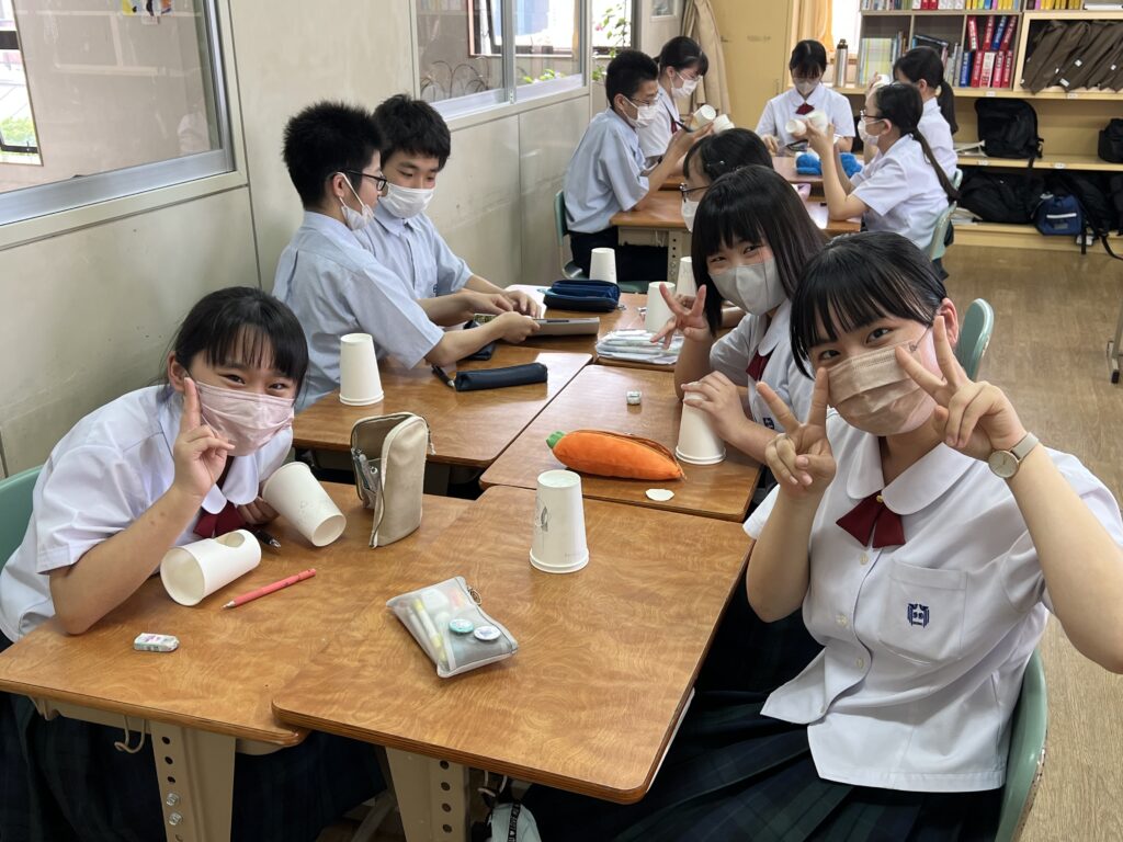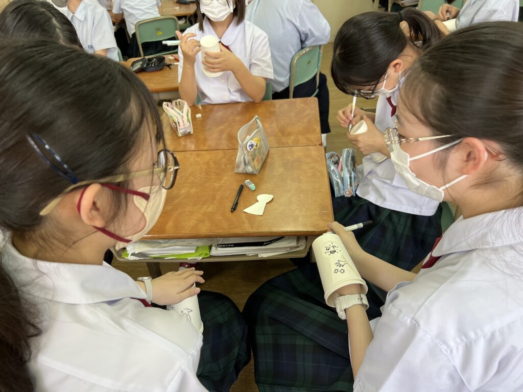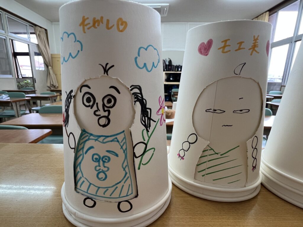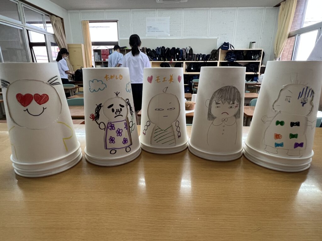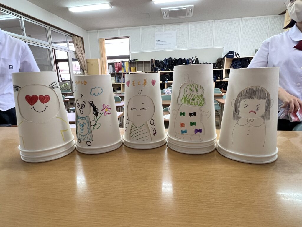 まず 紙コップに人の形をくりぬいて、色々な感情の顔を描きました。その後、グループで紙コップに描いた表情のときはどんな気持ちなのかをお互いに当てるゲームをしました。いろんな顔をみて、楽しそうに盛り上がっていました。