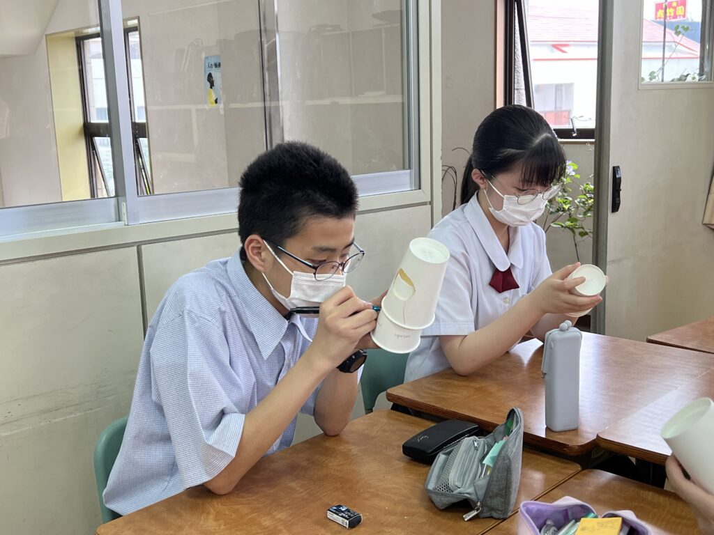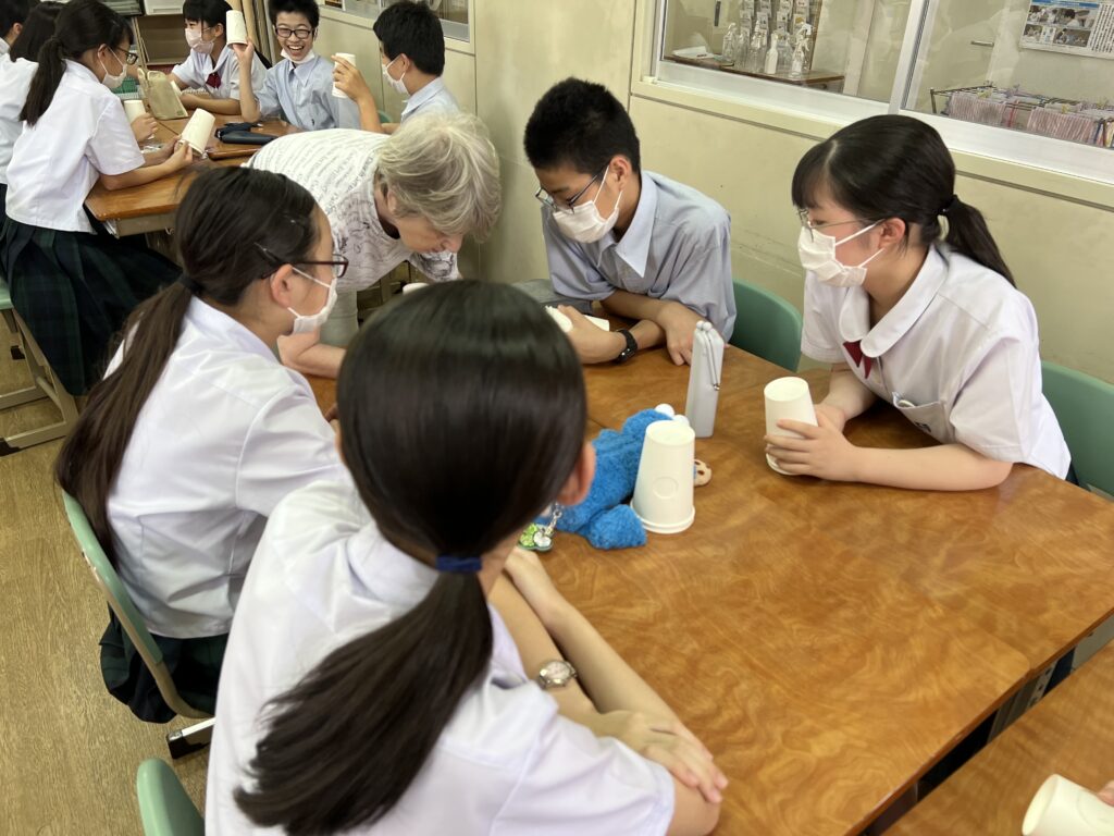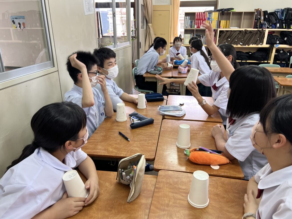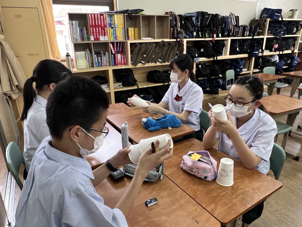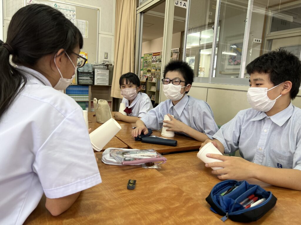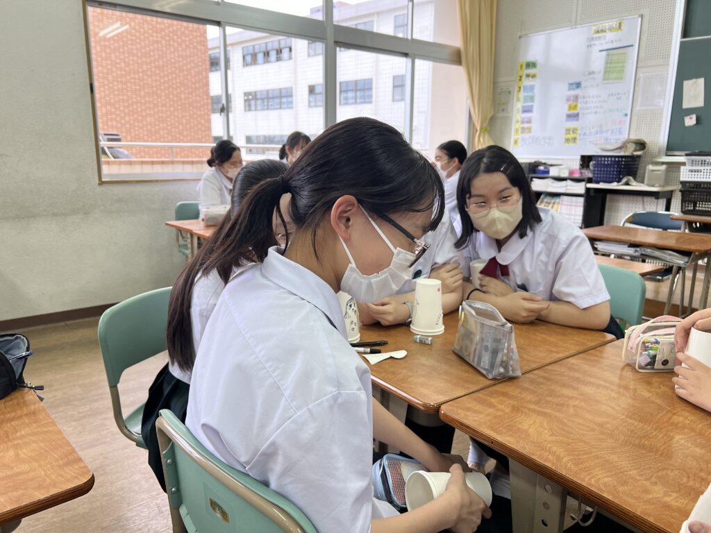まず 紙コップに人の形をくりぬいて、色々な感情の顔を描きました。その後、グループで紙コップに描いた表情のときはどんな気持ちなのかをお互いに当てるゲームをしました。いろんな顔をみて、楽しそうに盛り上がっていました。