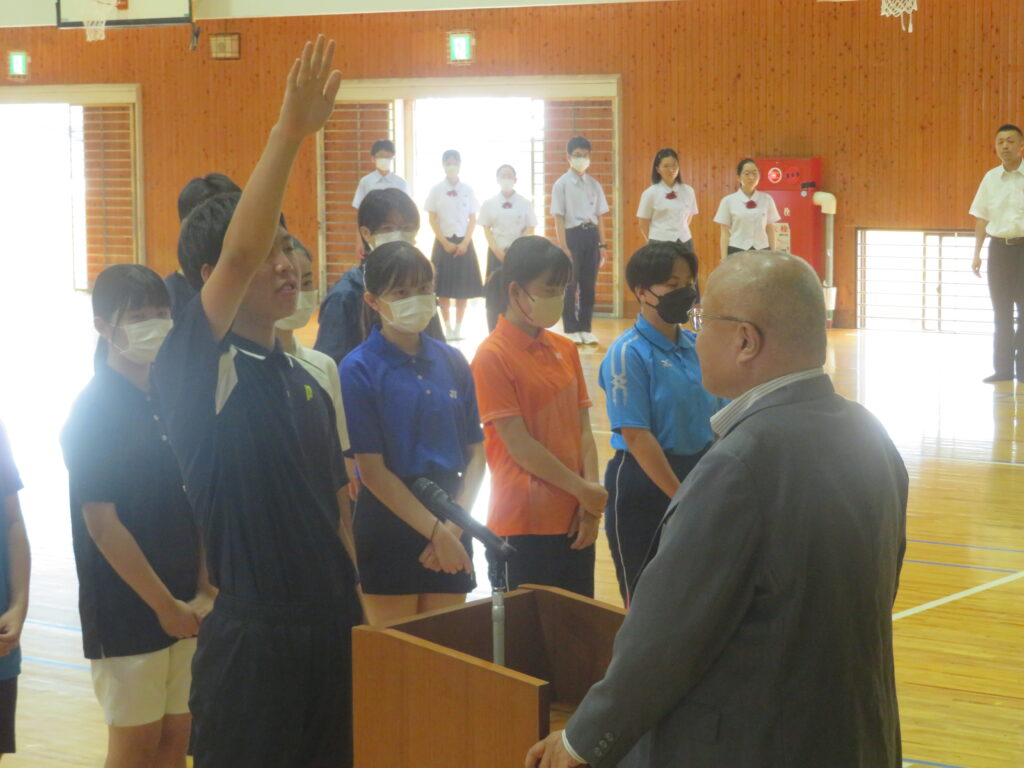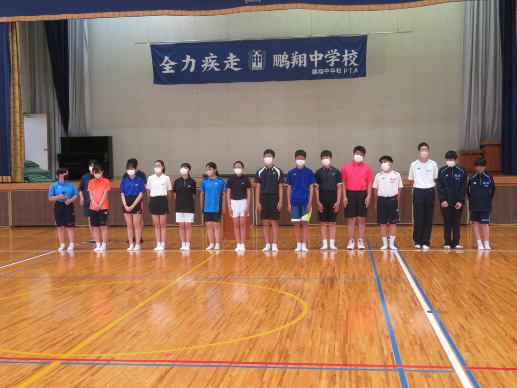 本日、県中体連に出場する部活動の壮行式を行いました。