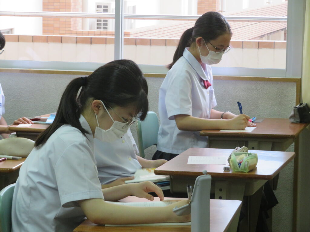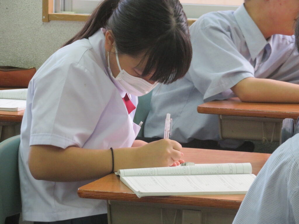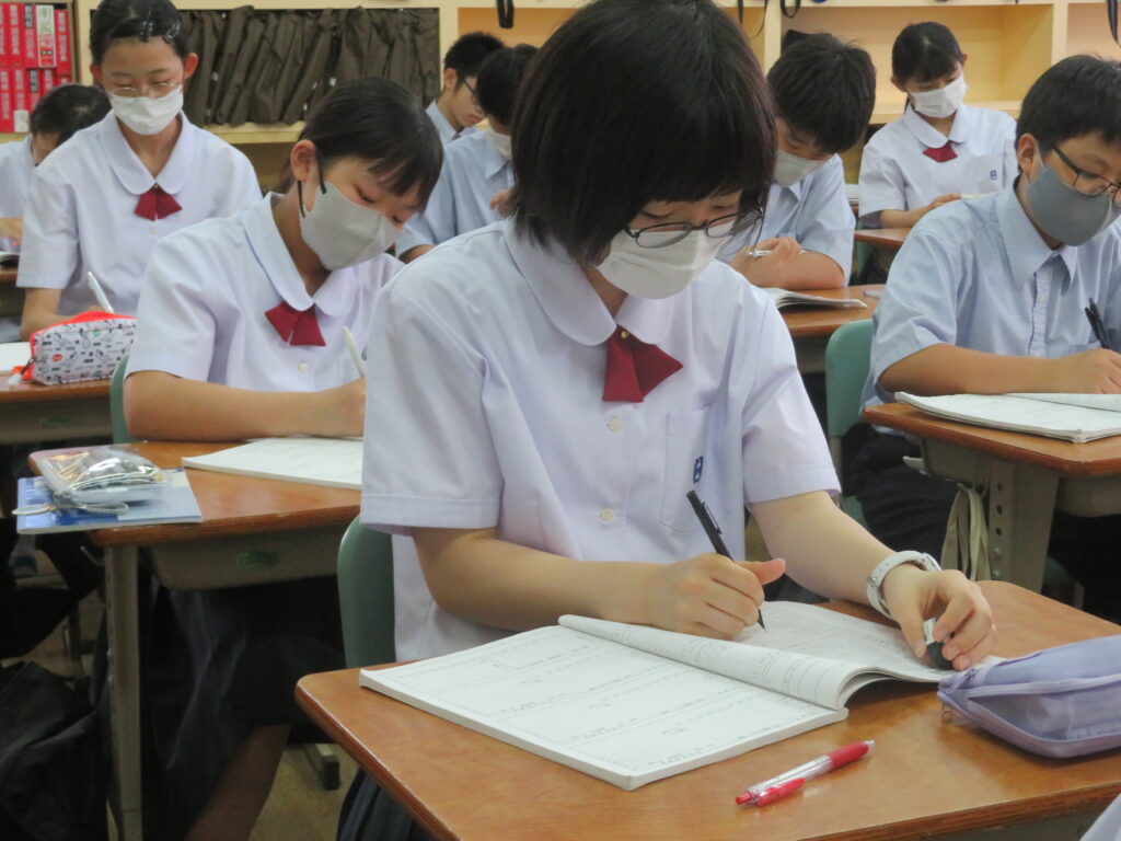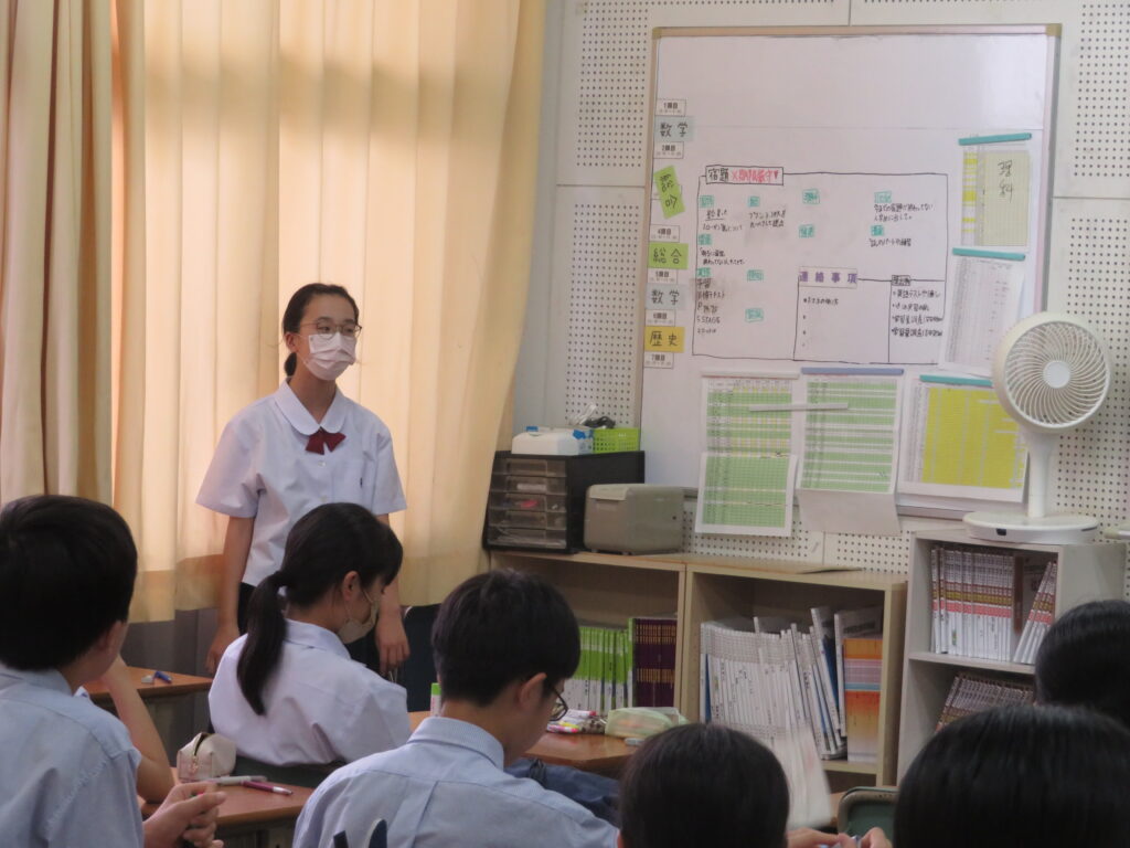 各クラス、毎日目標をたてています。J1-Bでは、本日の目標達成の確認がありました。「本日の目標は達成できましたか?」の問いかけに対して、ほとんどの生徒が手を挙げていました。素晴らしいですね!本日の目標は、「休み時間の1分前黙想を徹底しよう」だったようです。