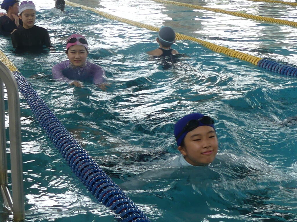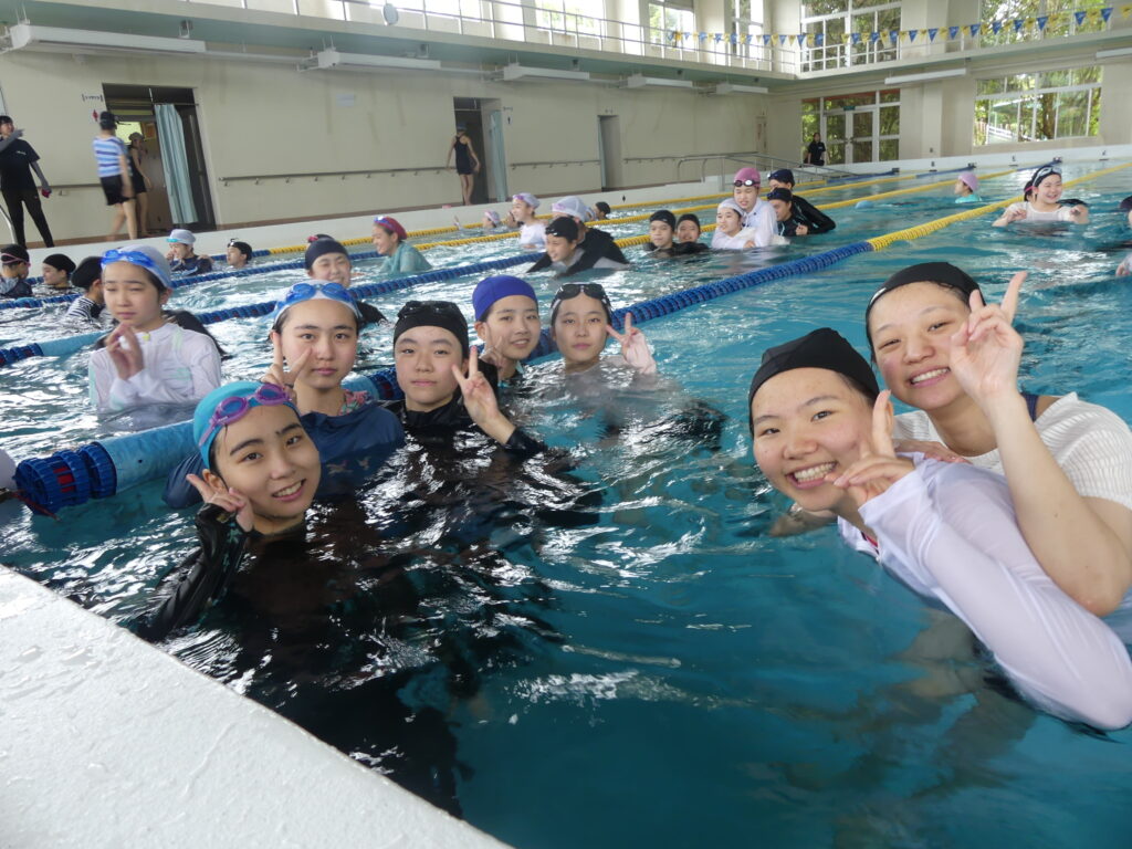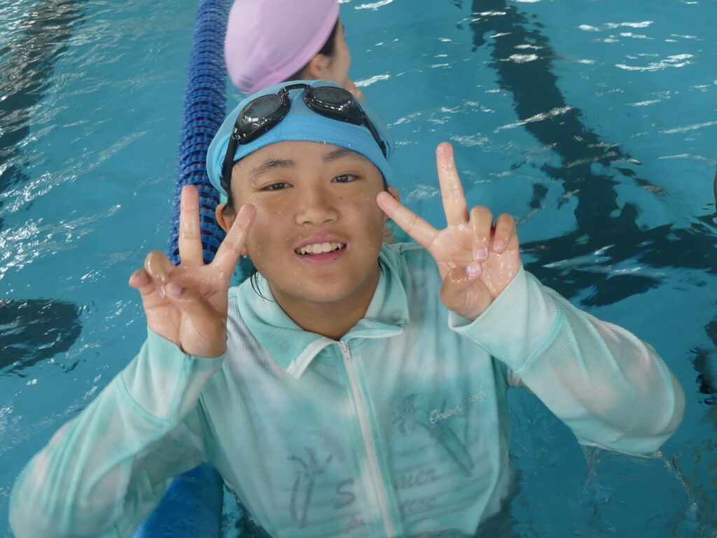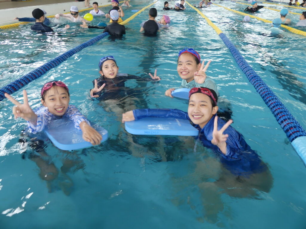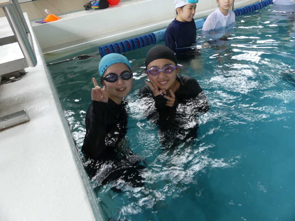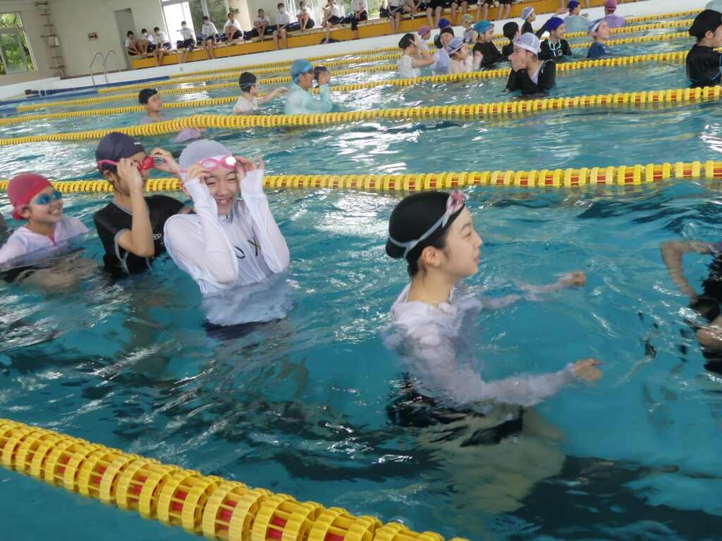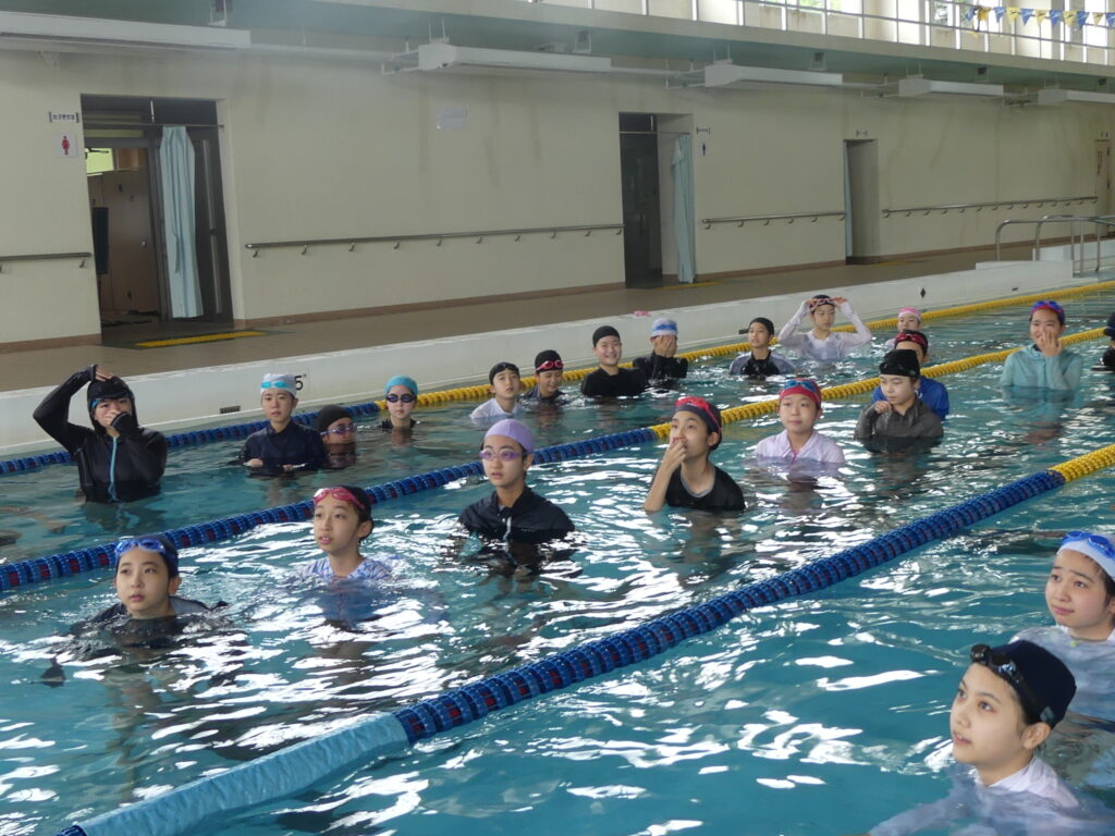 水に慣れることから始まり、ビート板を使って練習したり、おぼれた時の対処の仕方などを学習していました。暑い日だったこともあり、水の中は気持ちよさそうでした。